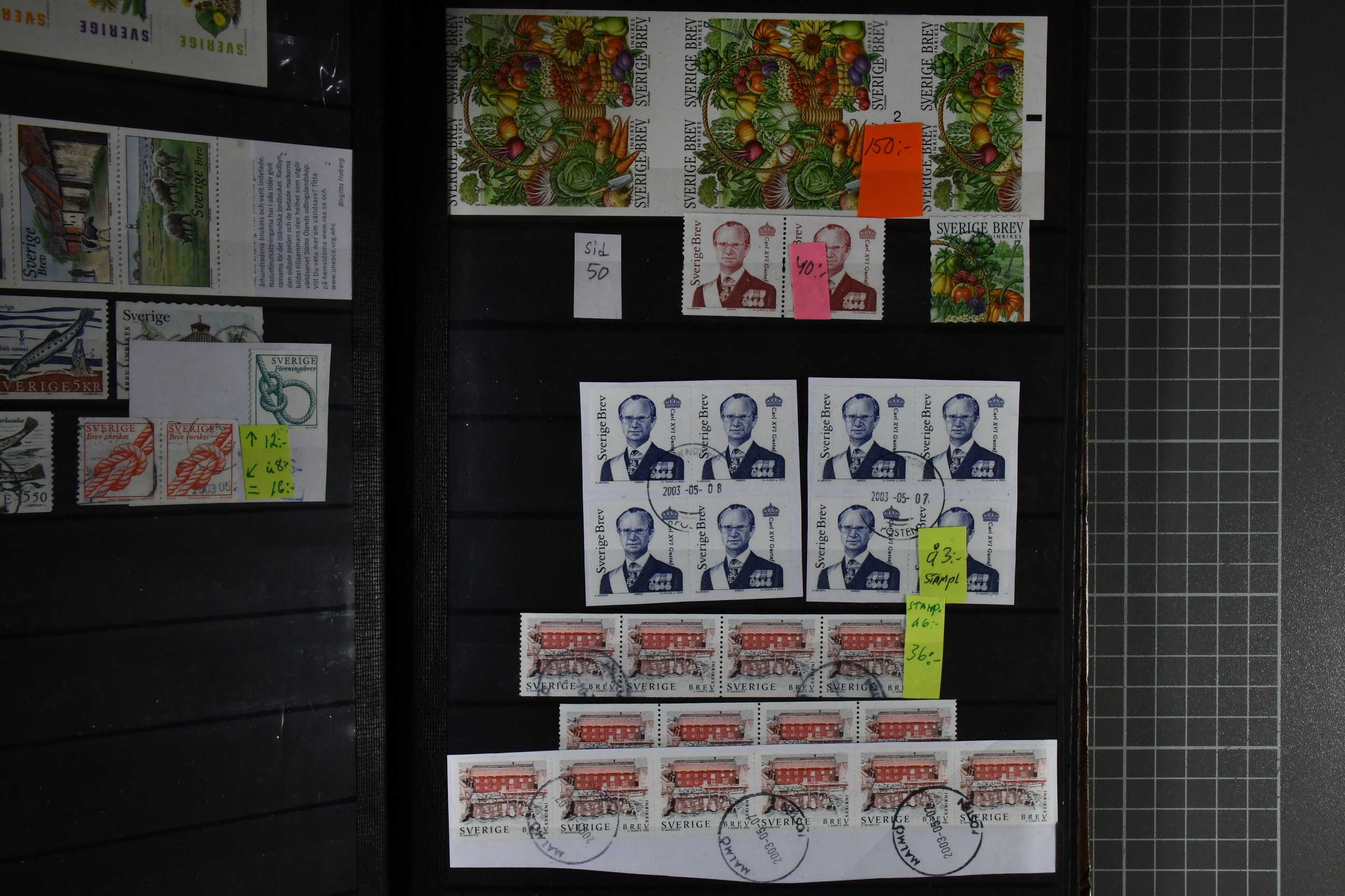 Sweden. Collection/accumulation ★★/★/⊙ 1891–2015 in large stockbook. A mix of older, used stamps and modern MNH usable for franking. Face value is more than 265 SEK. Please see a selection of scans at www.philea.se. Somewhat mixed quality.