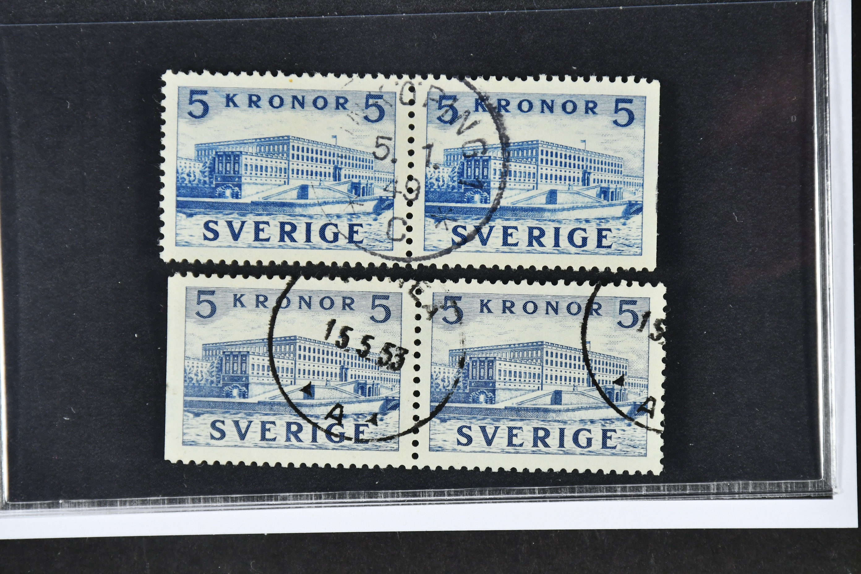 Sweden. Facit 332BC/CB used, 1941 The Royal Castle 5 Kr blue, pair 3+4 and 4+3. SEK 3200