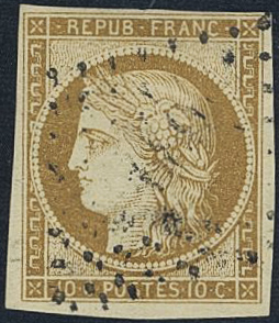France. Michel 1a used, 1849 Ceres Head 10 c yellow-brown. EUR 400