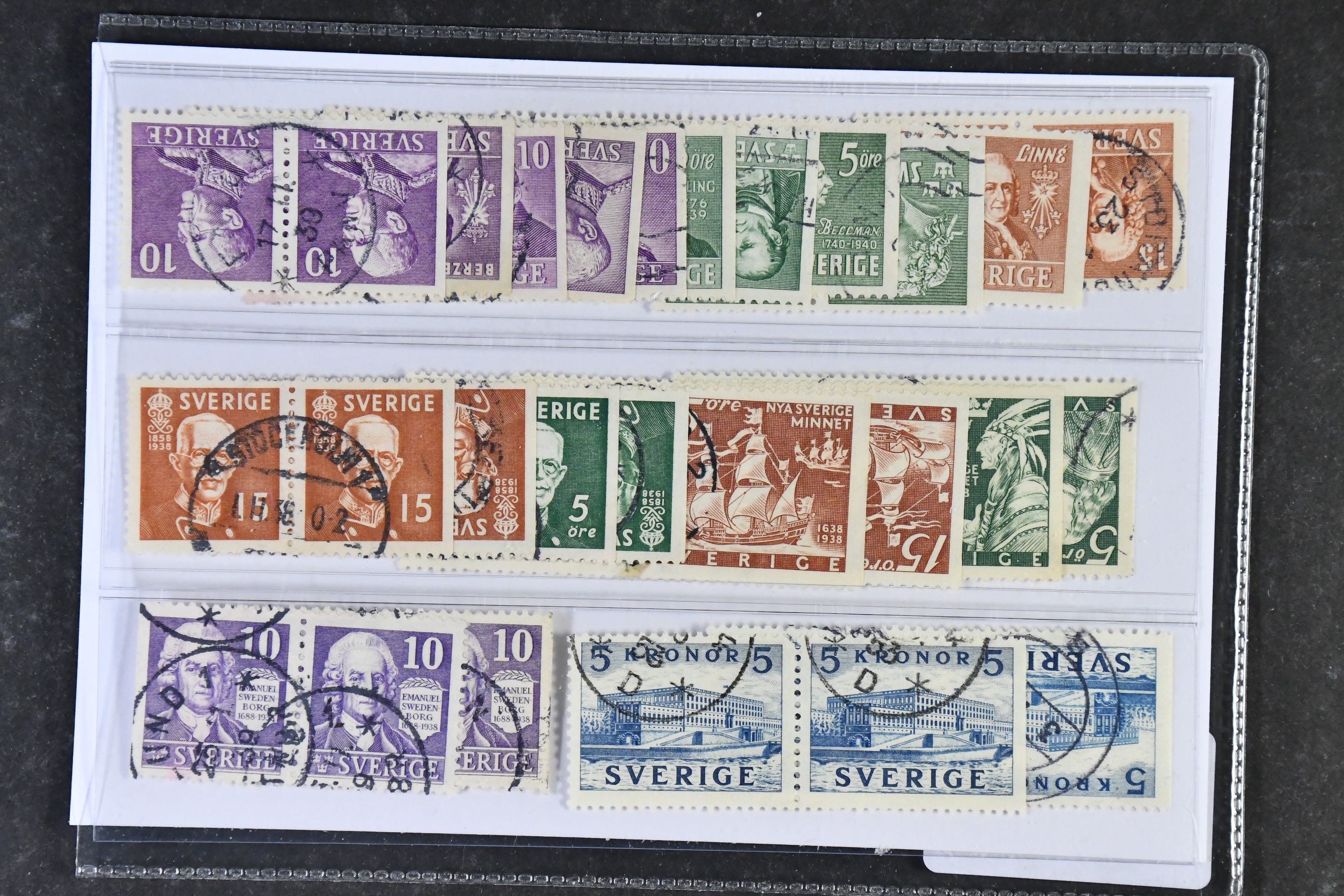 Sweden. Used. Lot BC/CB pairs, several better as 5 kr Castle. A few with minor narrow margins.