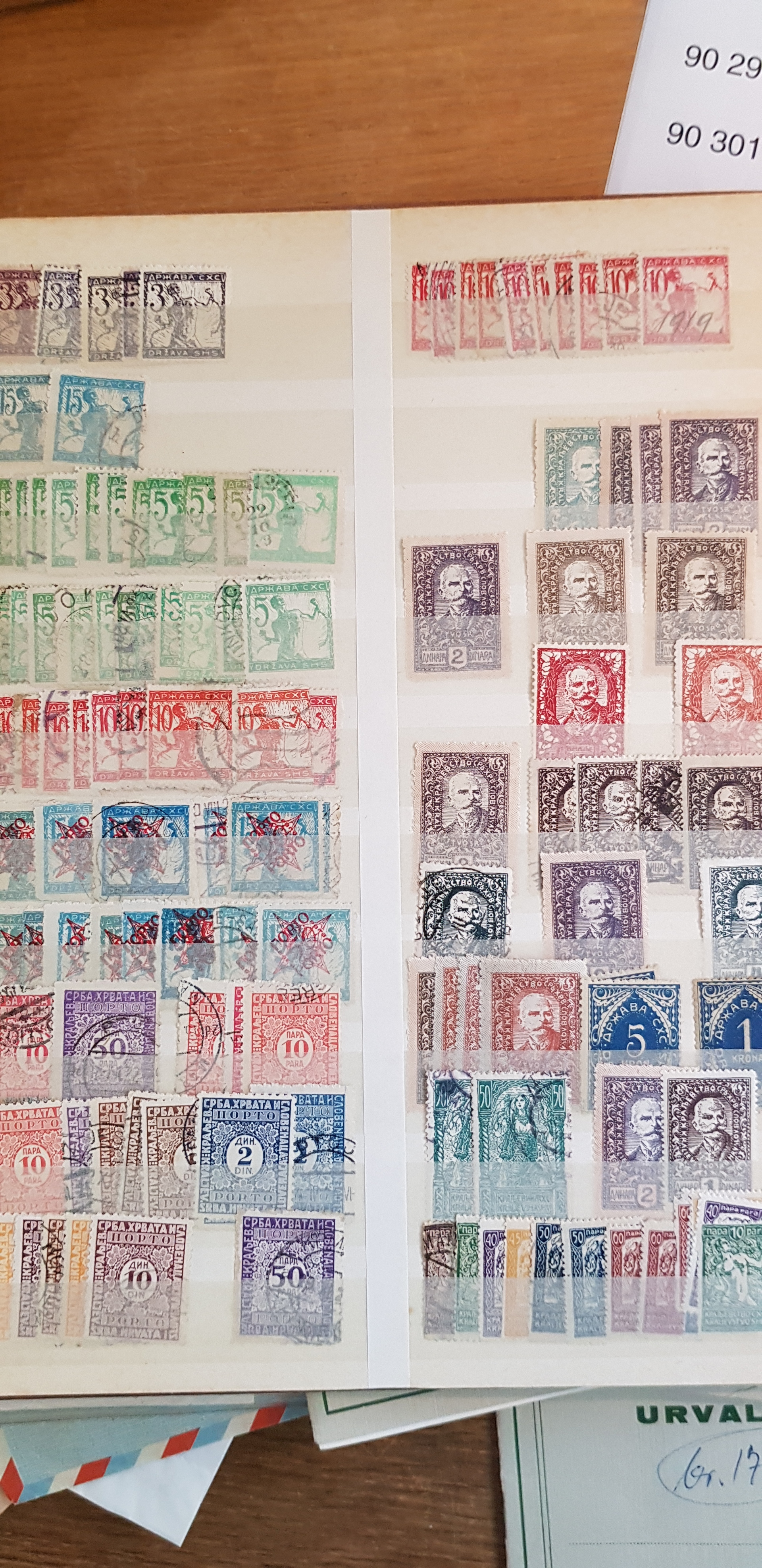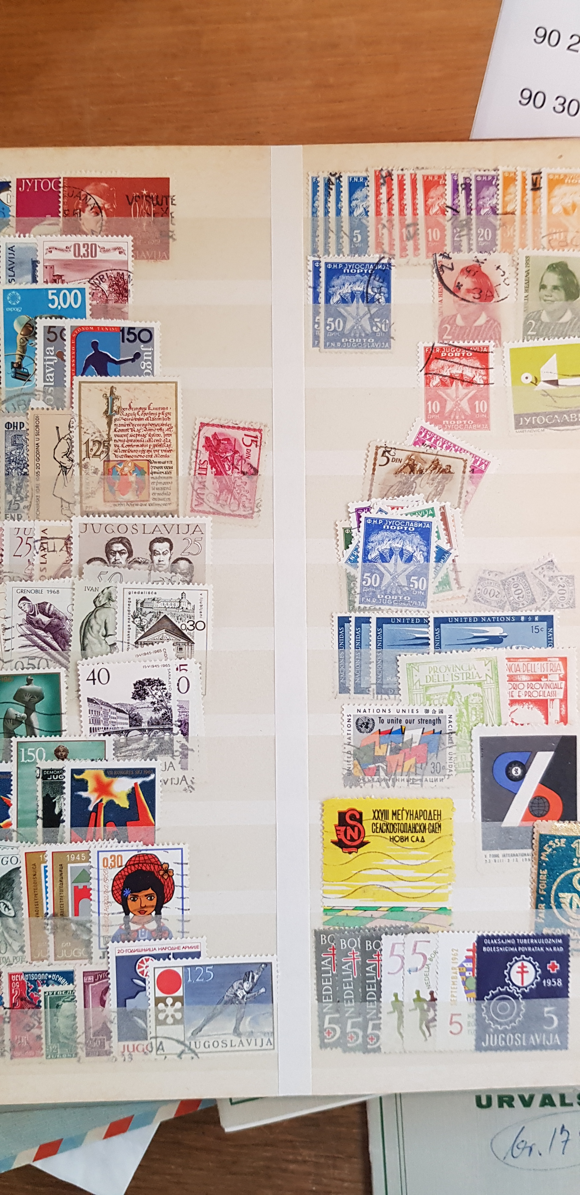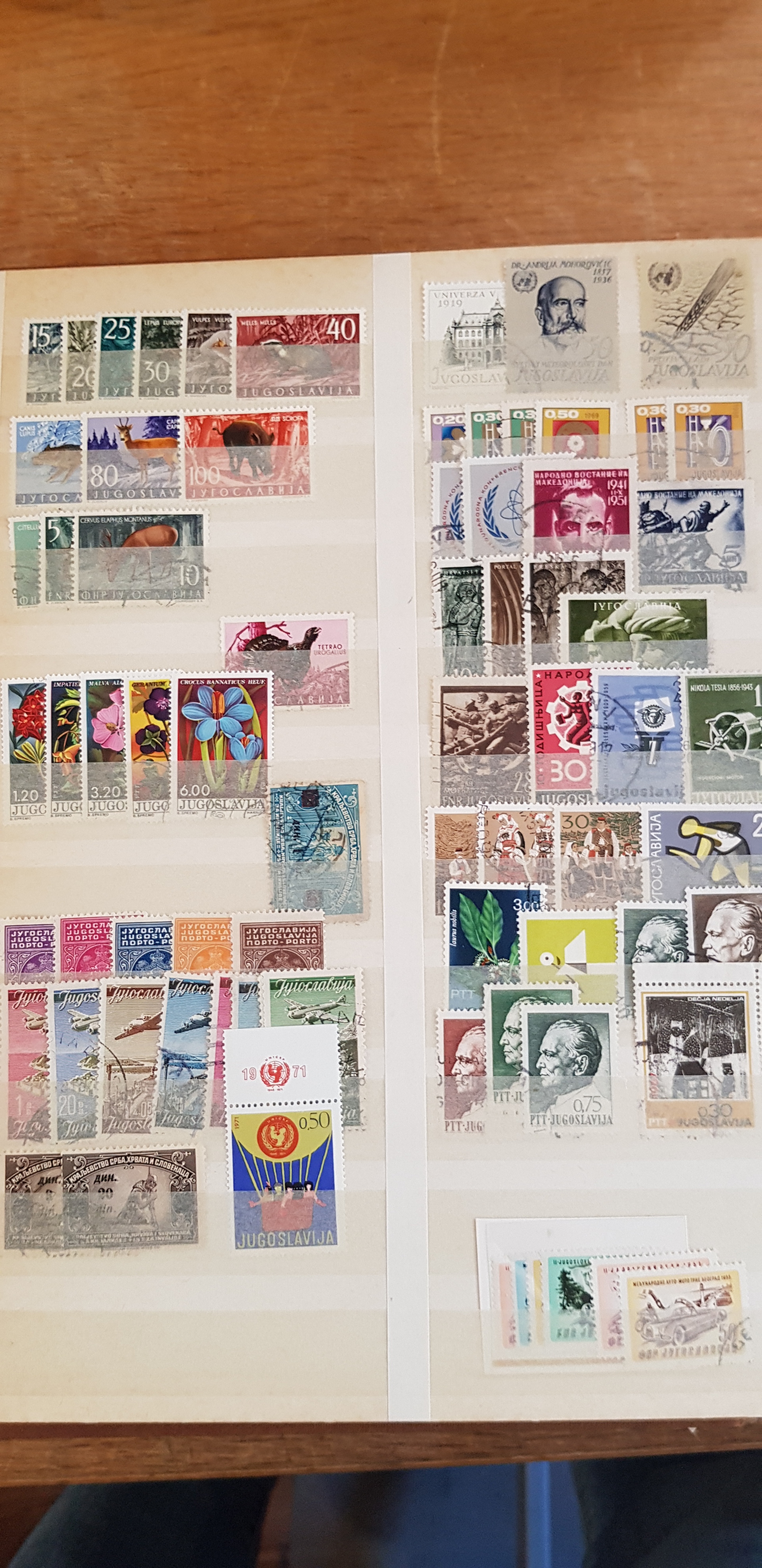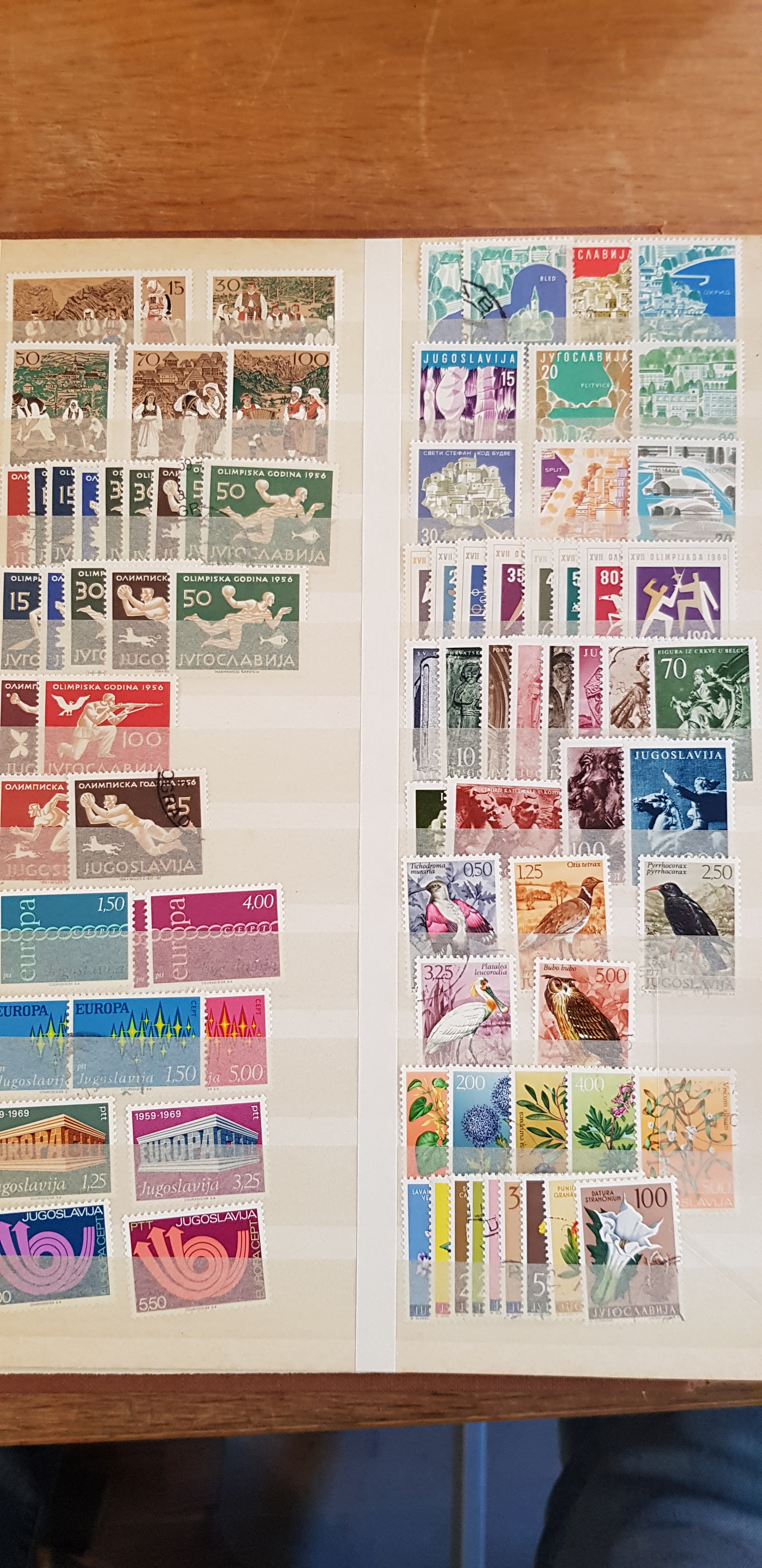 Yugoslavia. Collection/accumulation mostly used 1800s–1900s in box. In this box there are stamps from Yugoslavia in two albums and three selection booklets and some envelopes that contain souvenir sheets. Please see a selection of scans at www.philea.se. Good quality. (>2000)