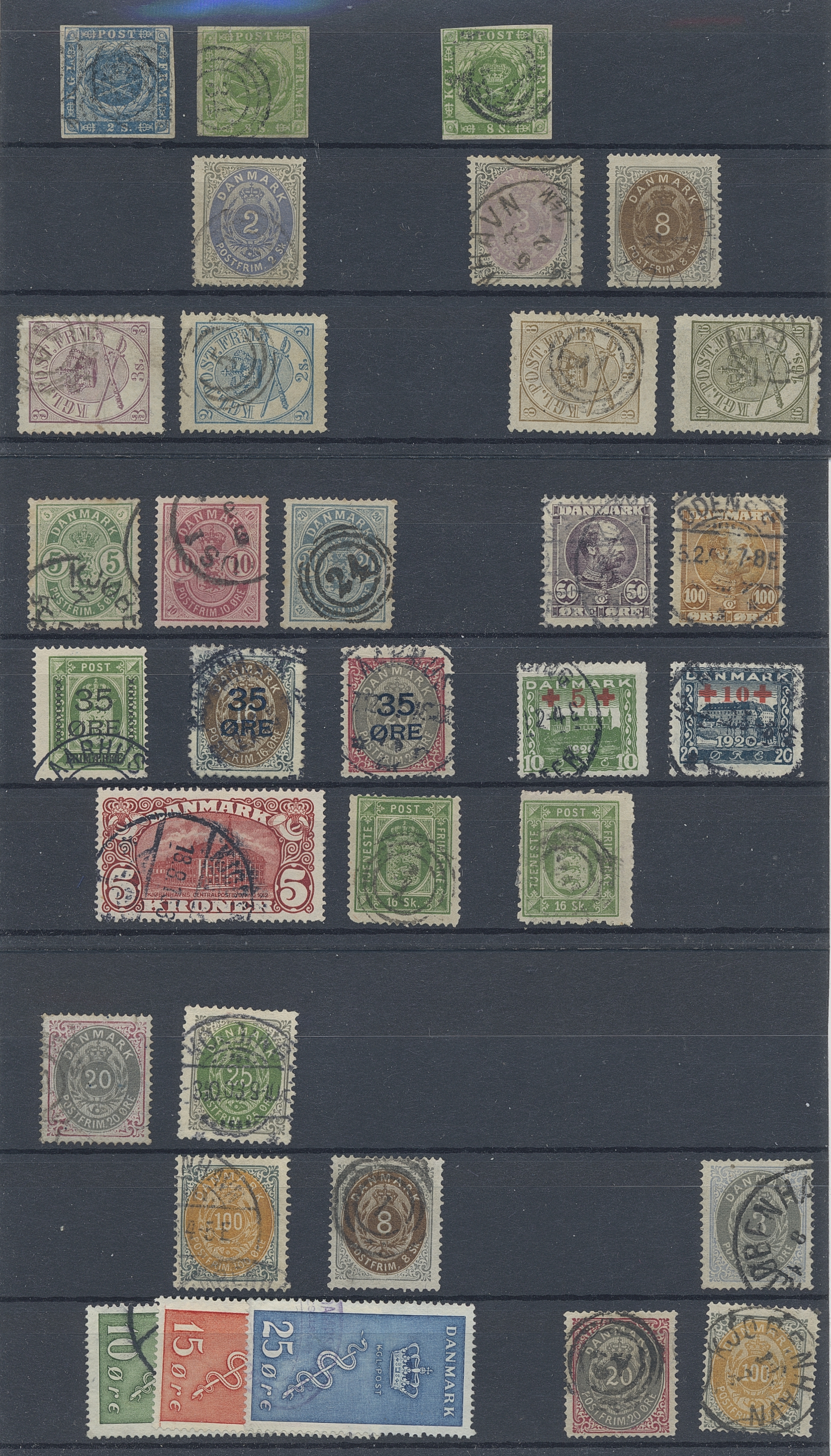 Denmark. Used. Small lot better stamps. E.g. 12 skilling values and 5 kr CPO. (33)