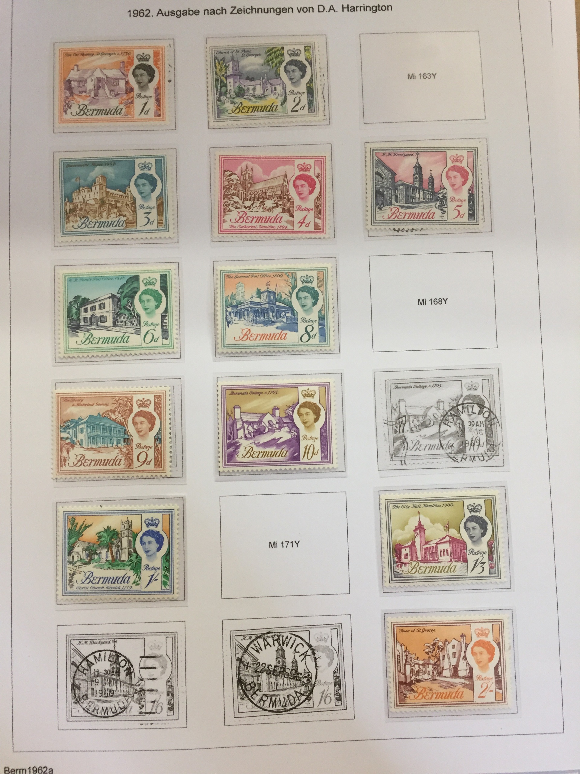 Bermuda. Collection ★★/★/⊙ 1865–1990 on leaves. Both used and mint, several high values. (ca 300)