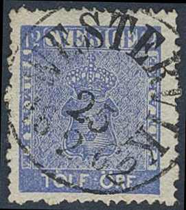 Sweden. Facit 9h1 used, 12 öre bright ultramarine. Superb copy cancelled WESTERVIK 25.2.1862.