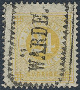 Sweden. Facit 34 used, 24 öre yellow. With an almost complete WÄRDE-pmk. Scarce.