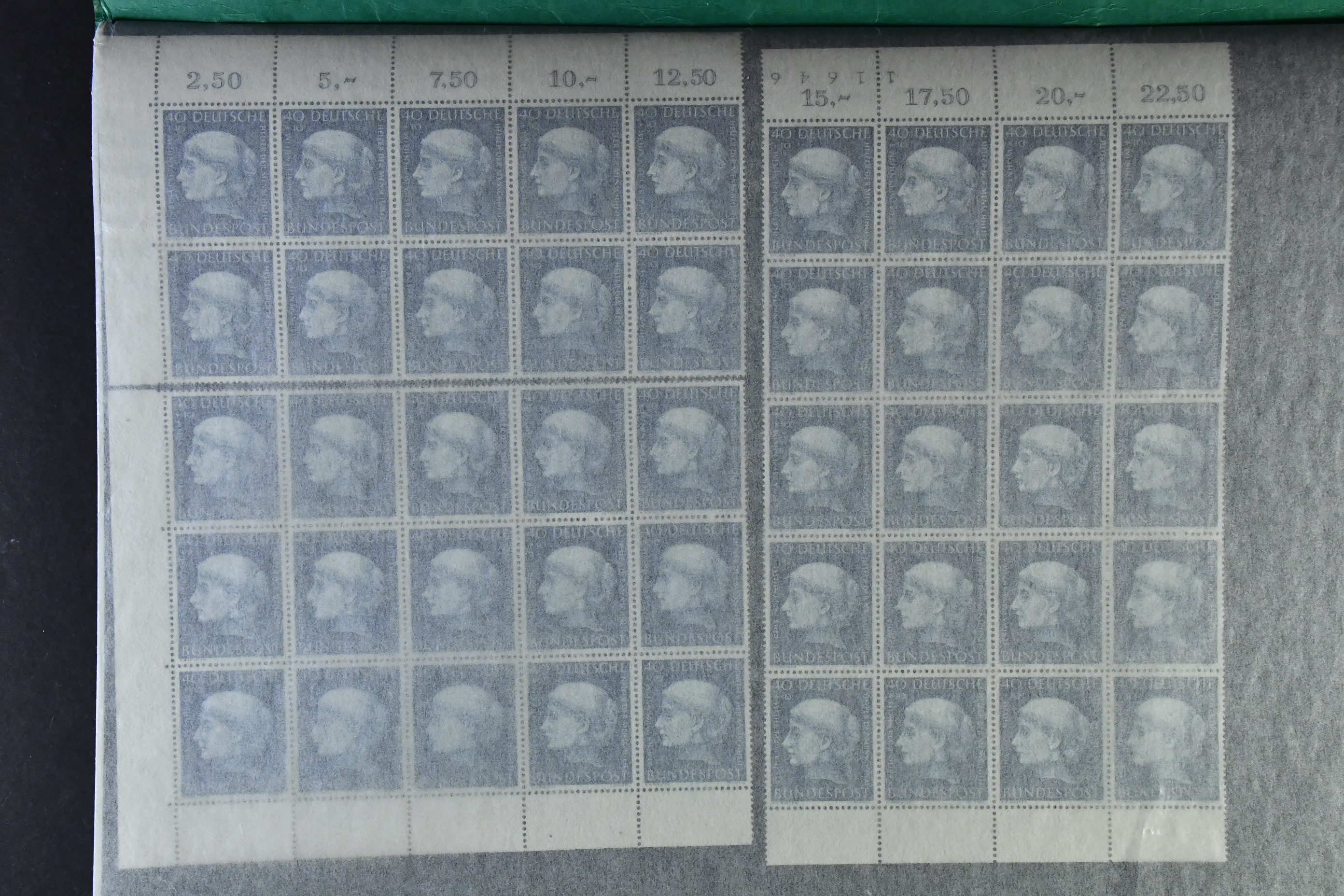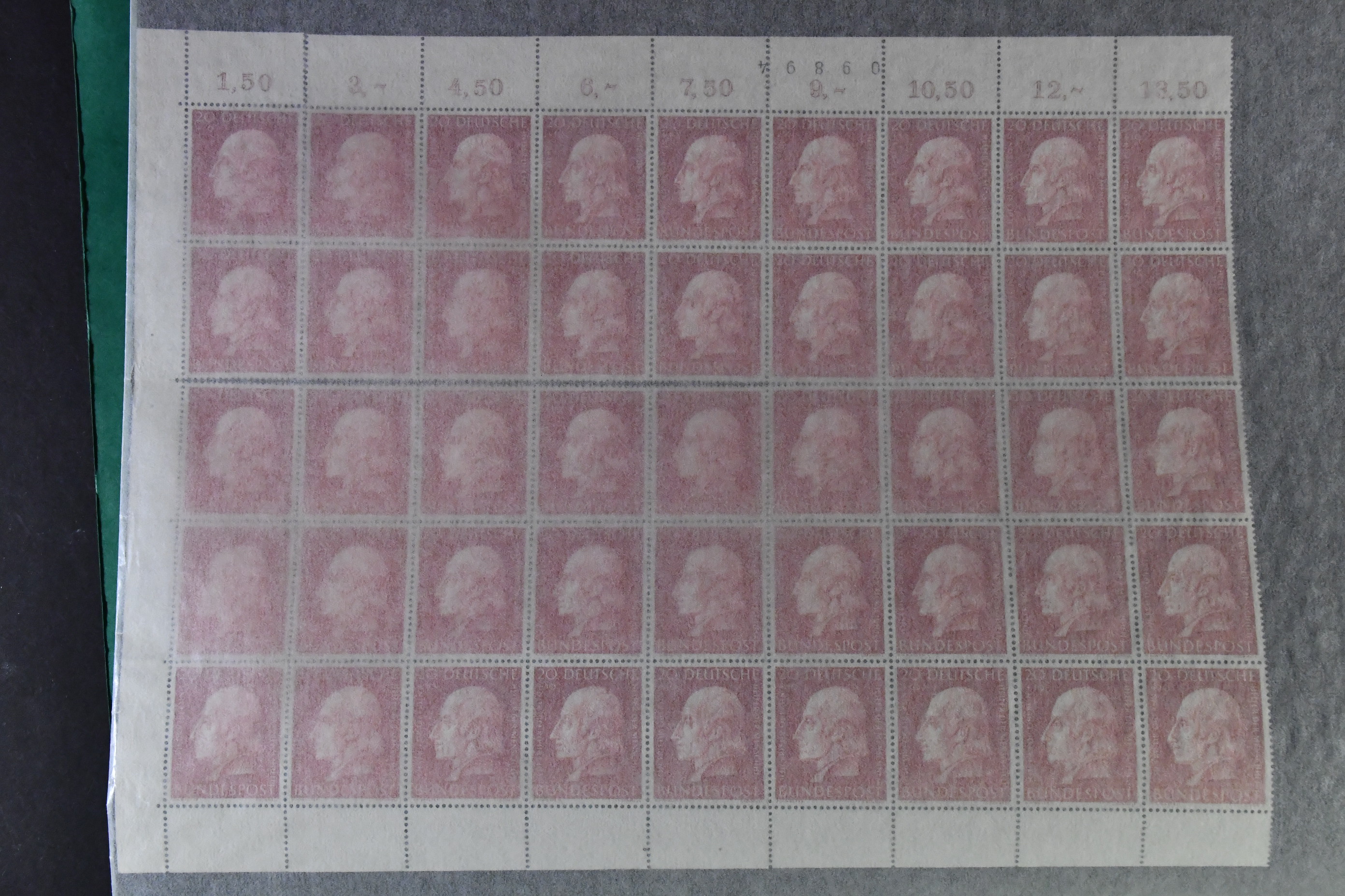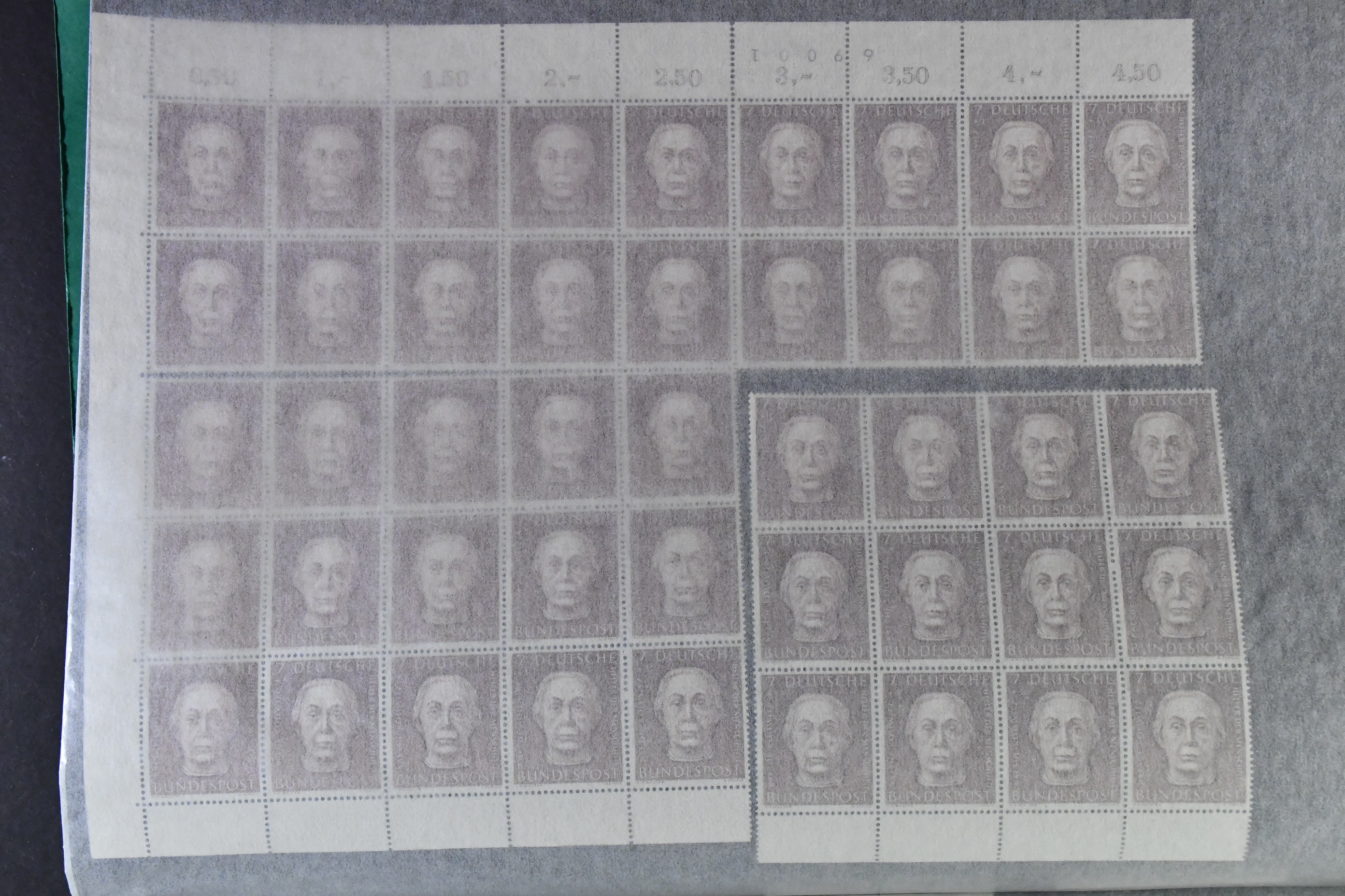 Germany, GFR (BRD). Lot (★) 1950s in sheet folder. SHEET PARTS, mainly from the "Valuable" Charity sets 1954 and 1945, the stated value for xx sets is more than EUR 5600! A small list of the content is included.