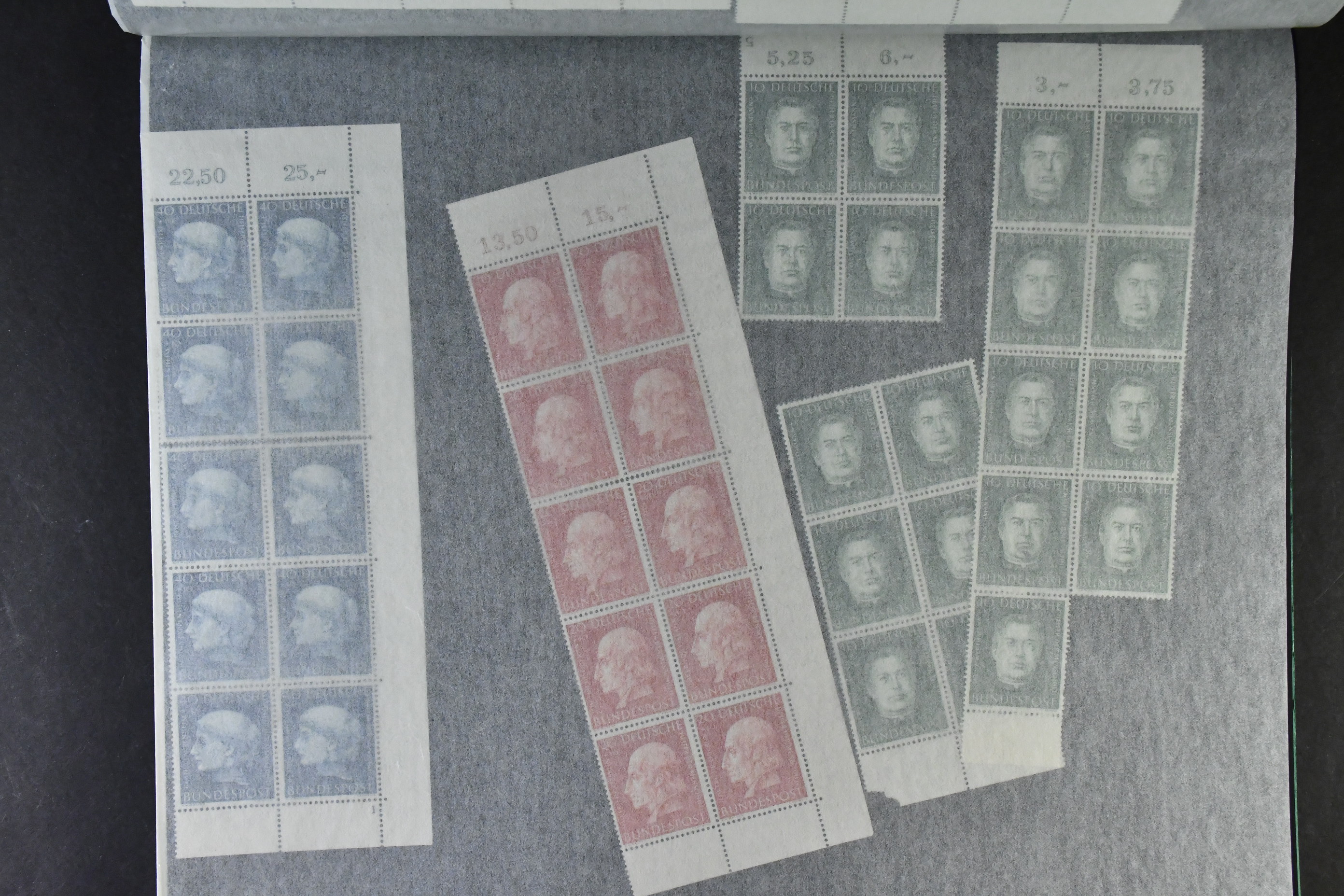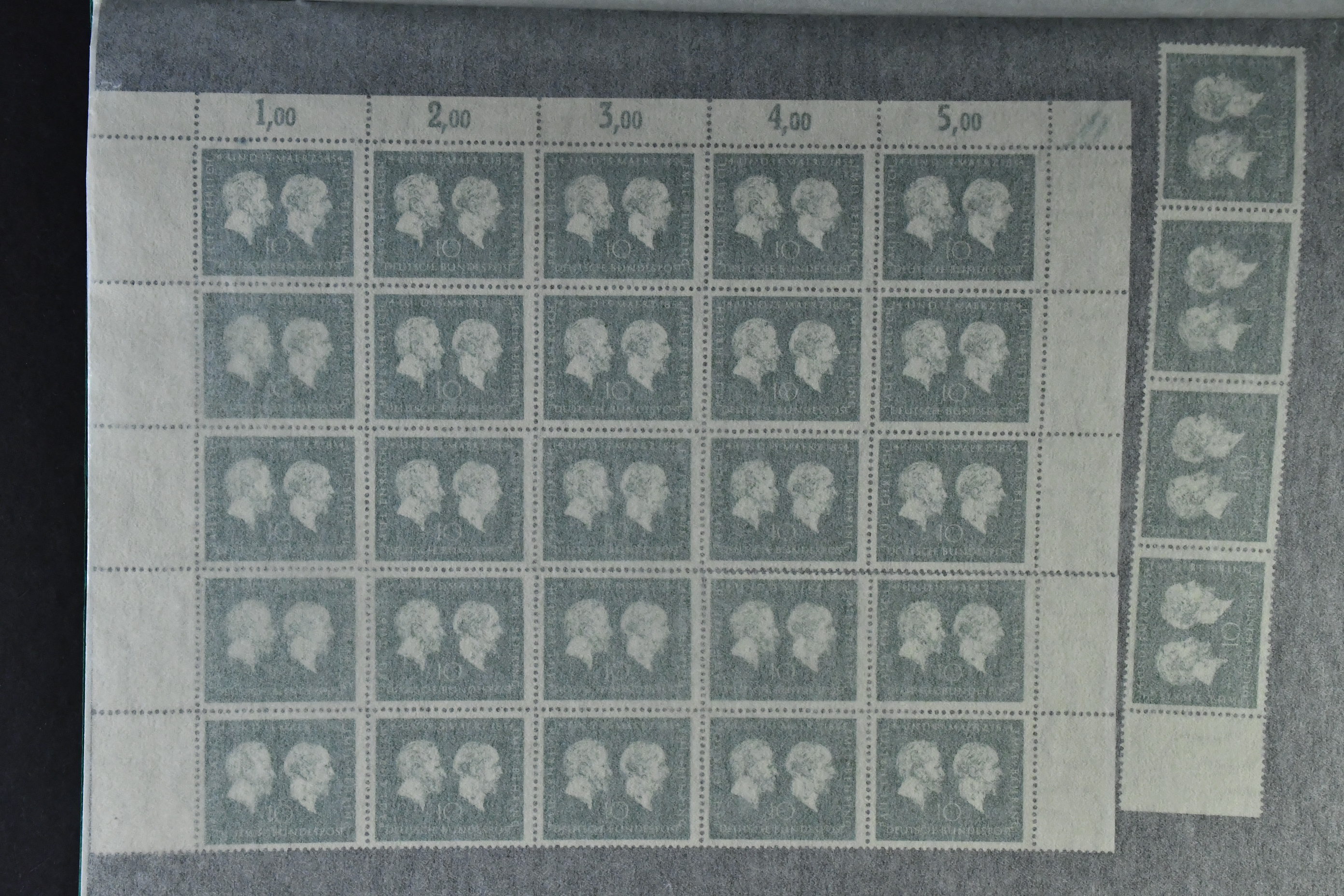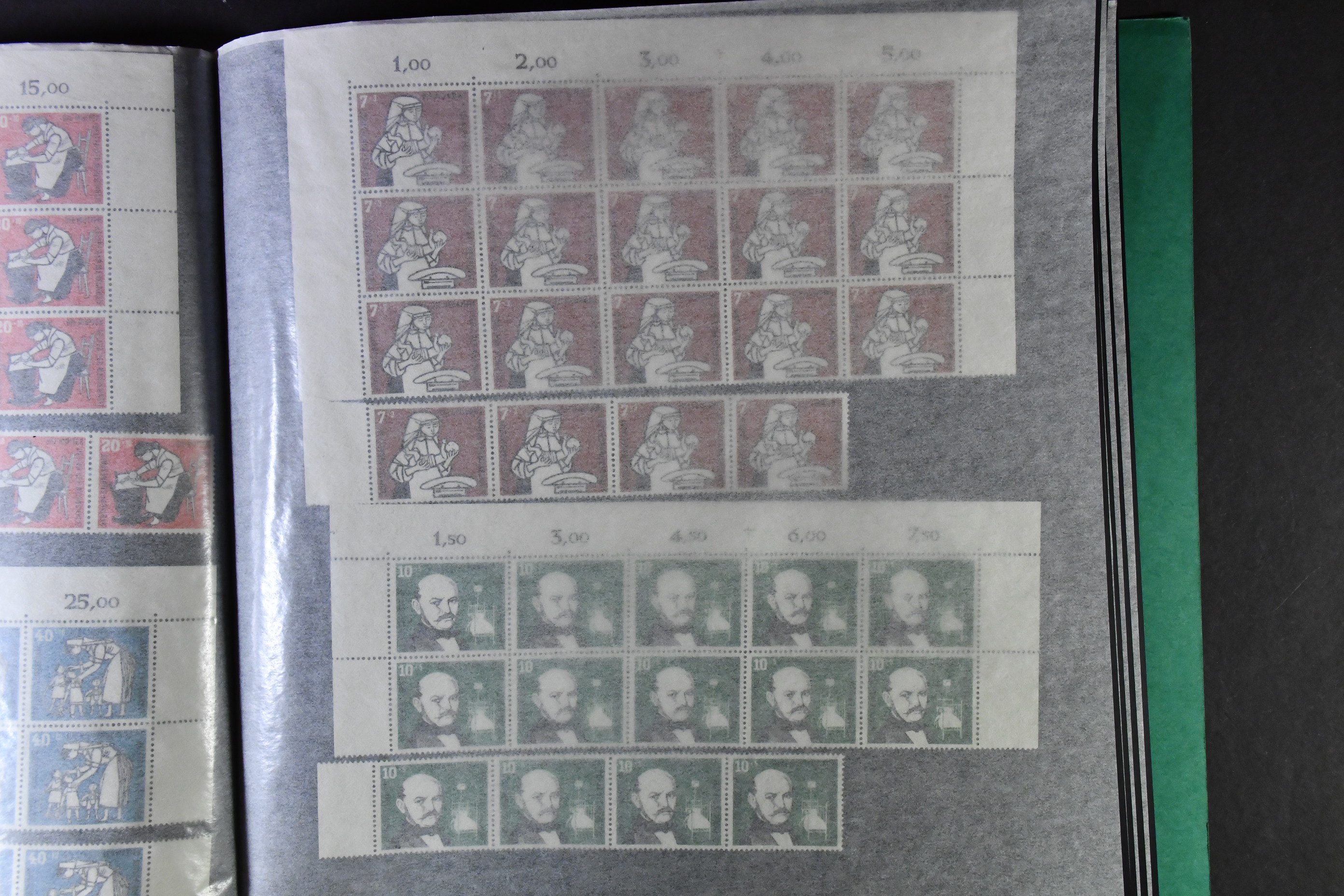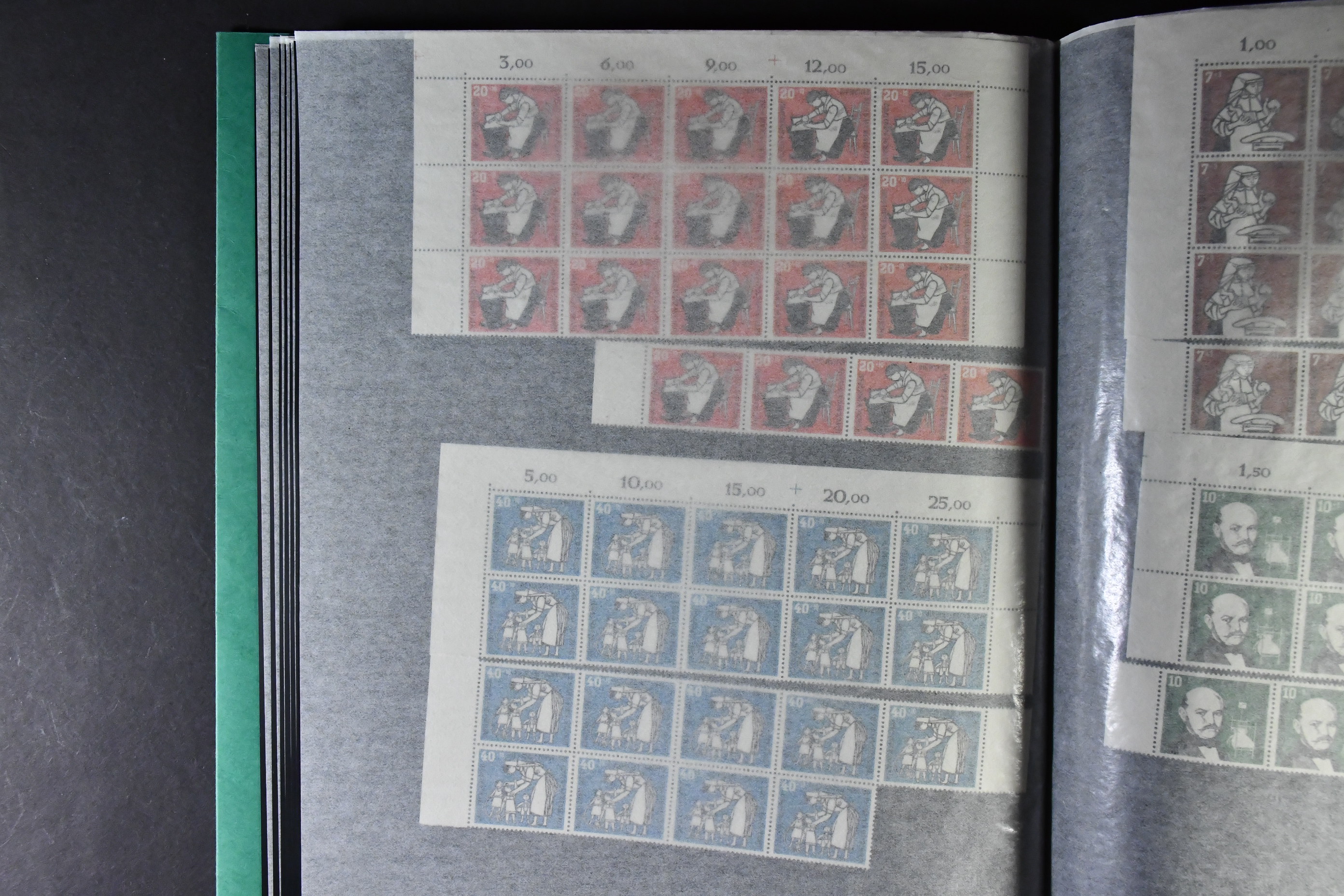 Germany, GFR (BRD). Lot (★) 1950s in sheet folder. SHEET PARTS, mainly from the "Valuable" Charity sets 1954 and 1945, the stated value for xx sets is more than EUR 5600! A small list of the content is included.