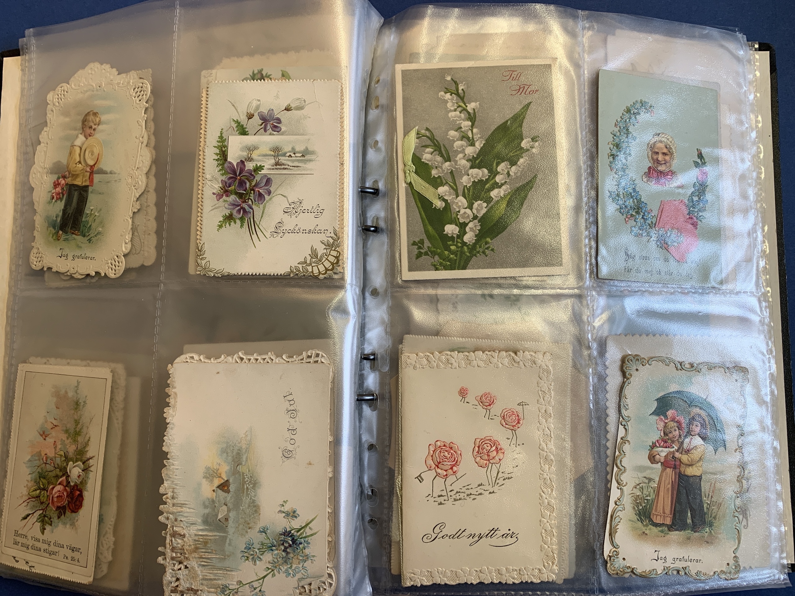 Sweden. Picture postcards. Collection with presentation cards (handräckningskort). 160 different in a binder with plastic pockets. Please see a selection of scans at www.philea.se.