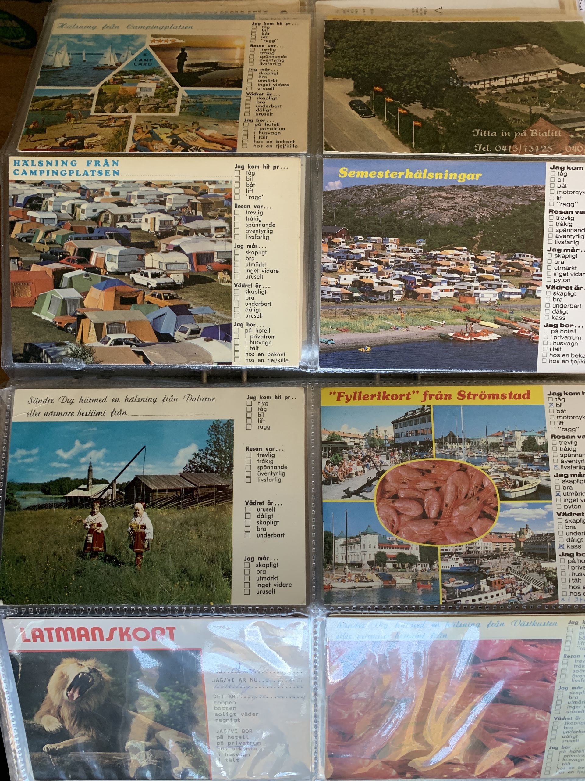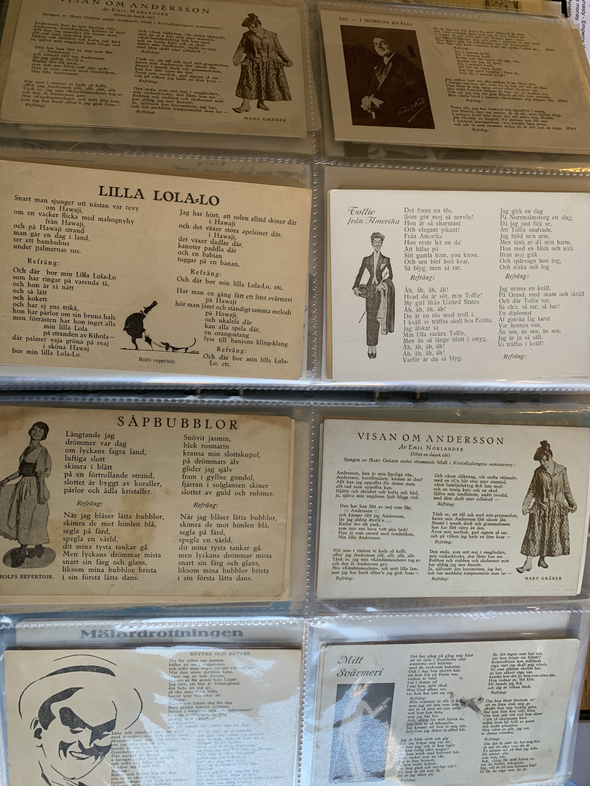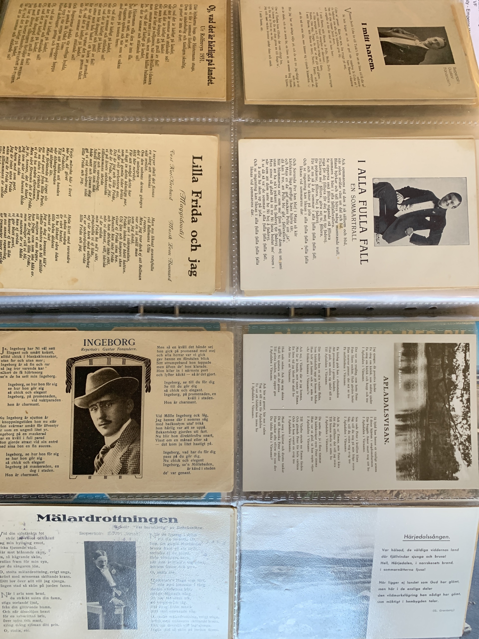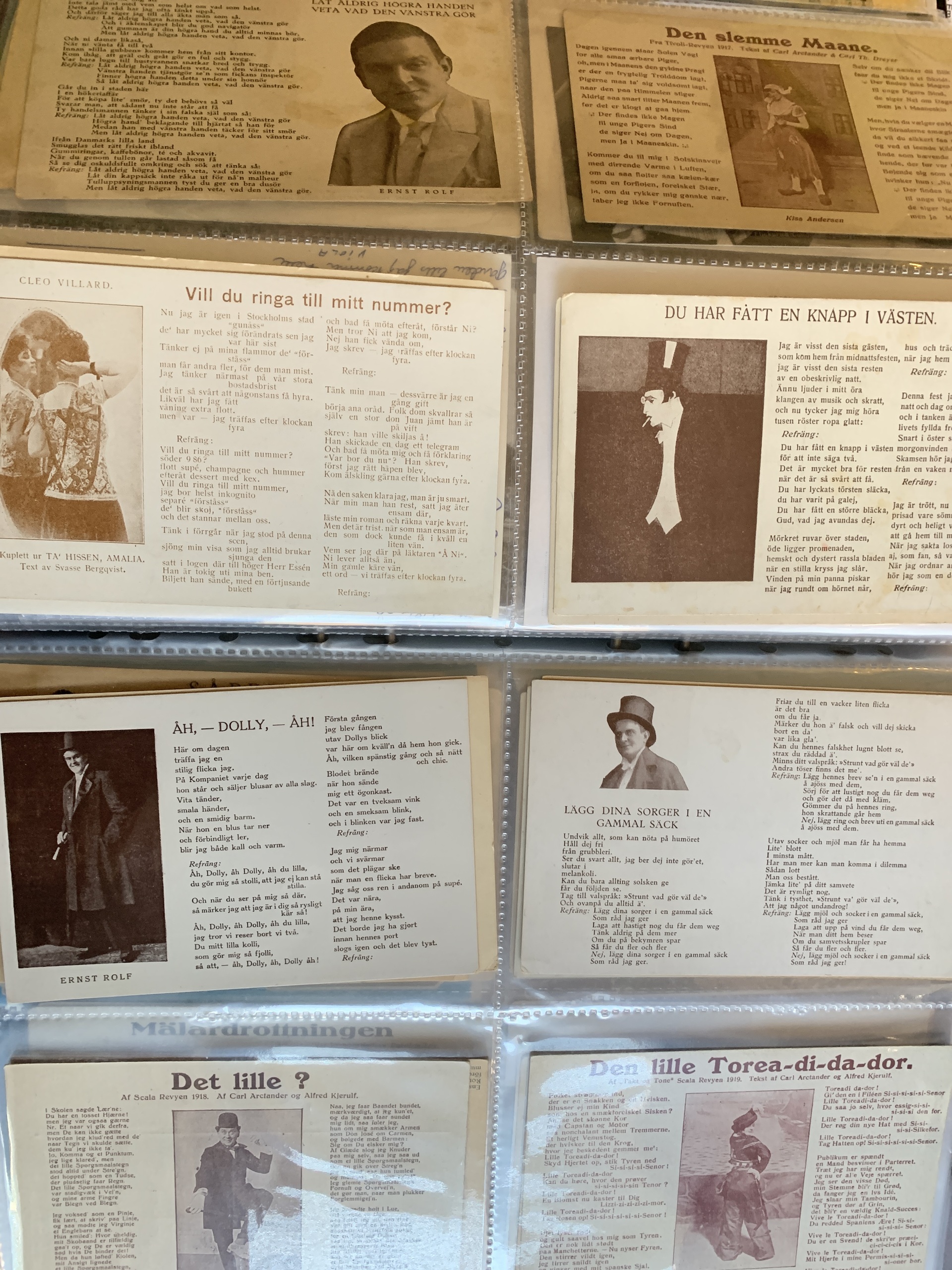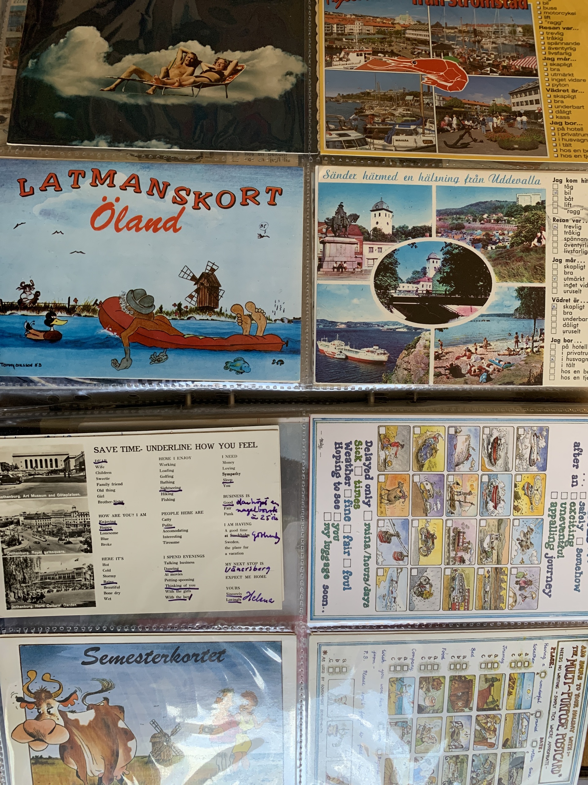 Sweden. Picture postcards. Three collections: "Flickorna Lundgren på Skäret", "Vistexter" and "Latmanskort". Approx. 150 different in a binder with plastic pockets. Please see a selection of scans at www.philea.se.