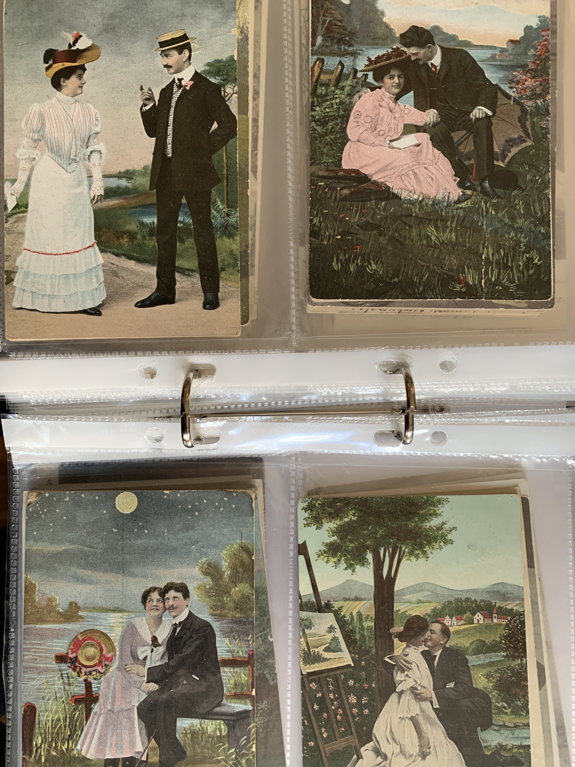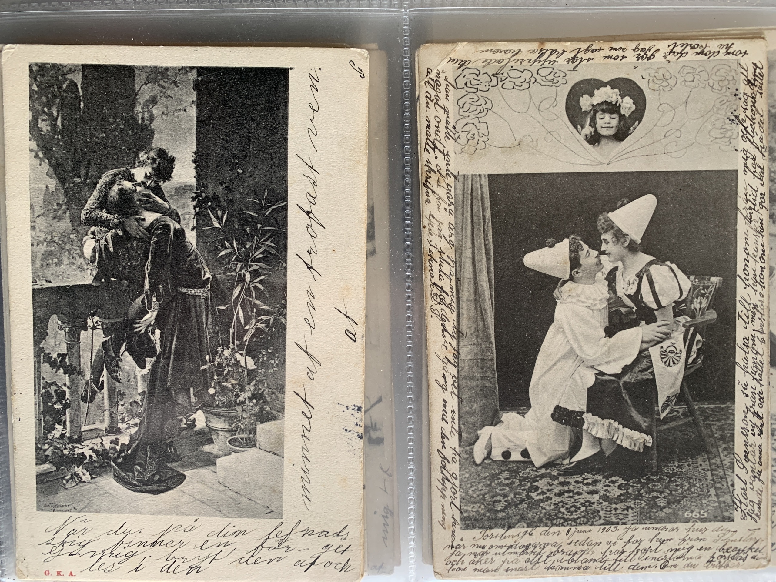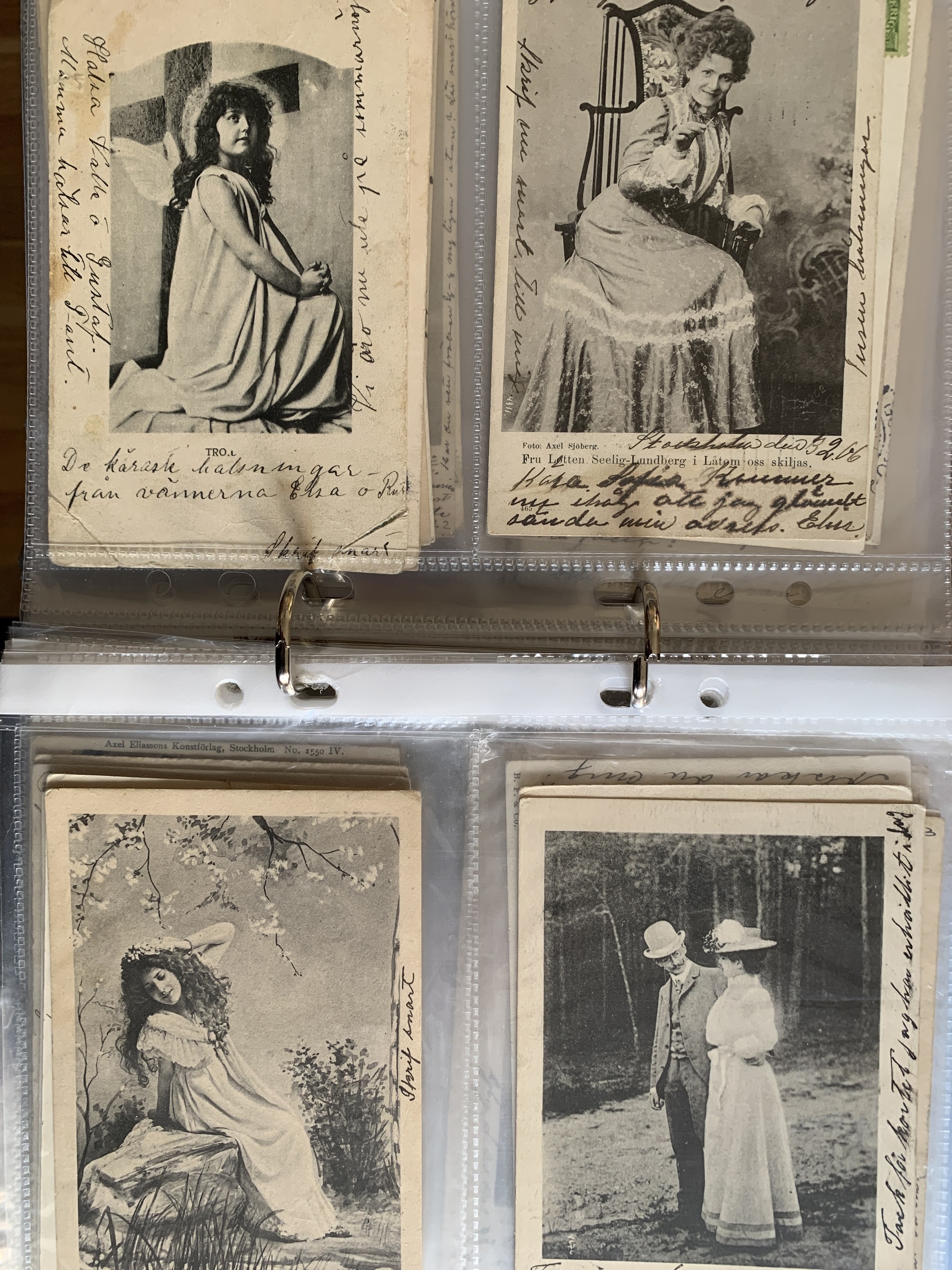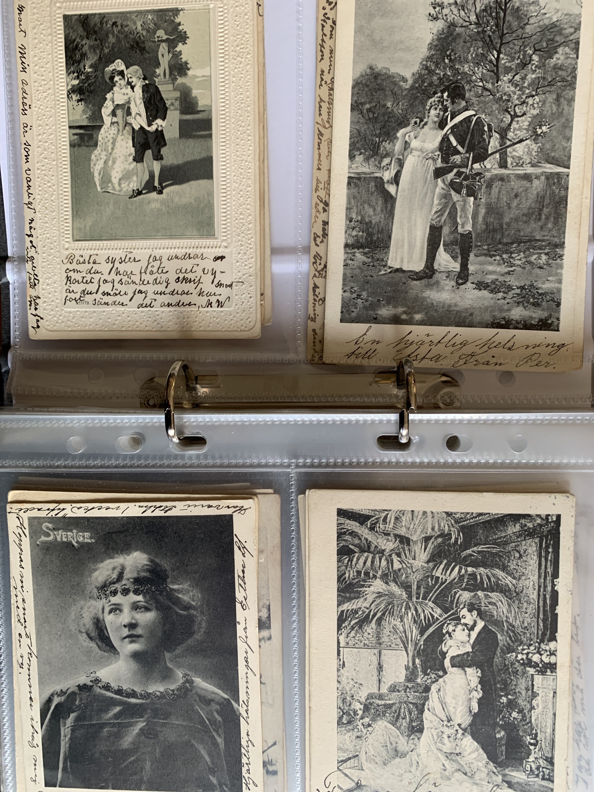 Sweden. Picture postcards. Collection Romance etc. from the beginning of the 20th century franked with 5 öre Oscar. More than 100 different in a binder with plastic pockets. Please see a selection of scans at www.philea.se.