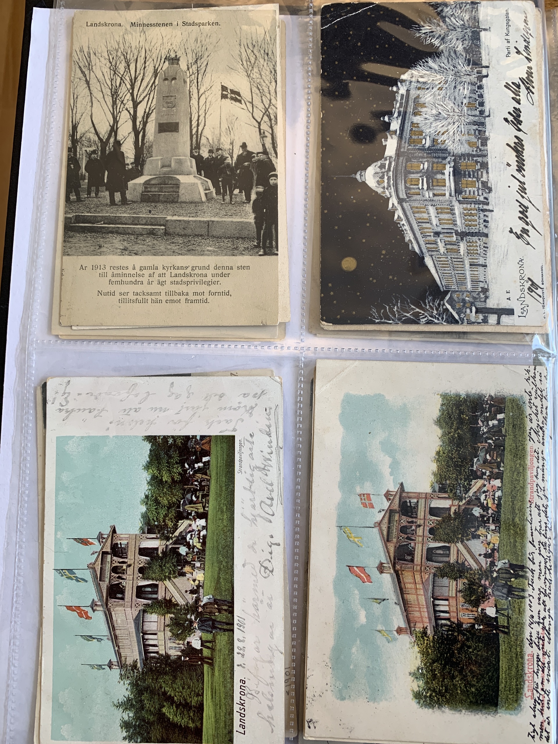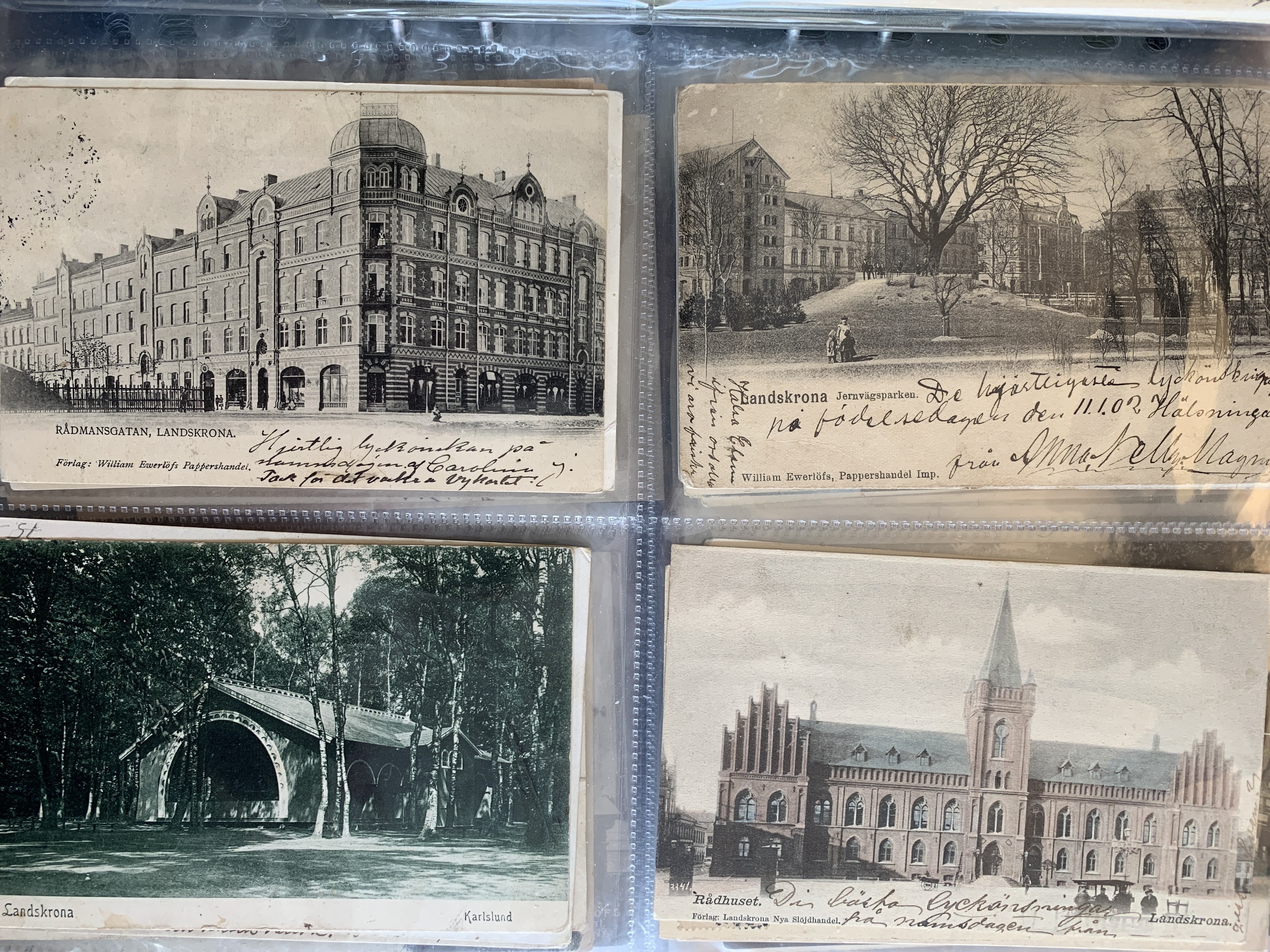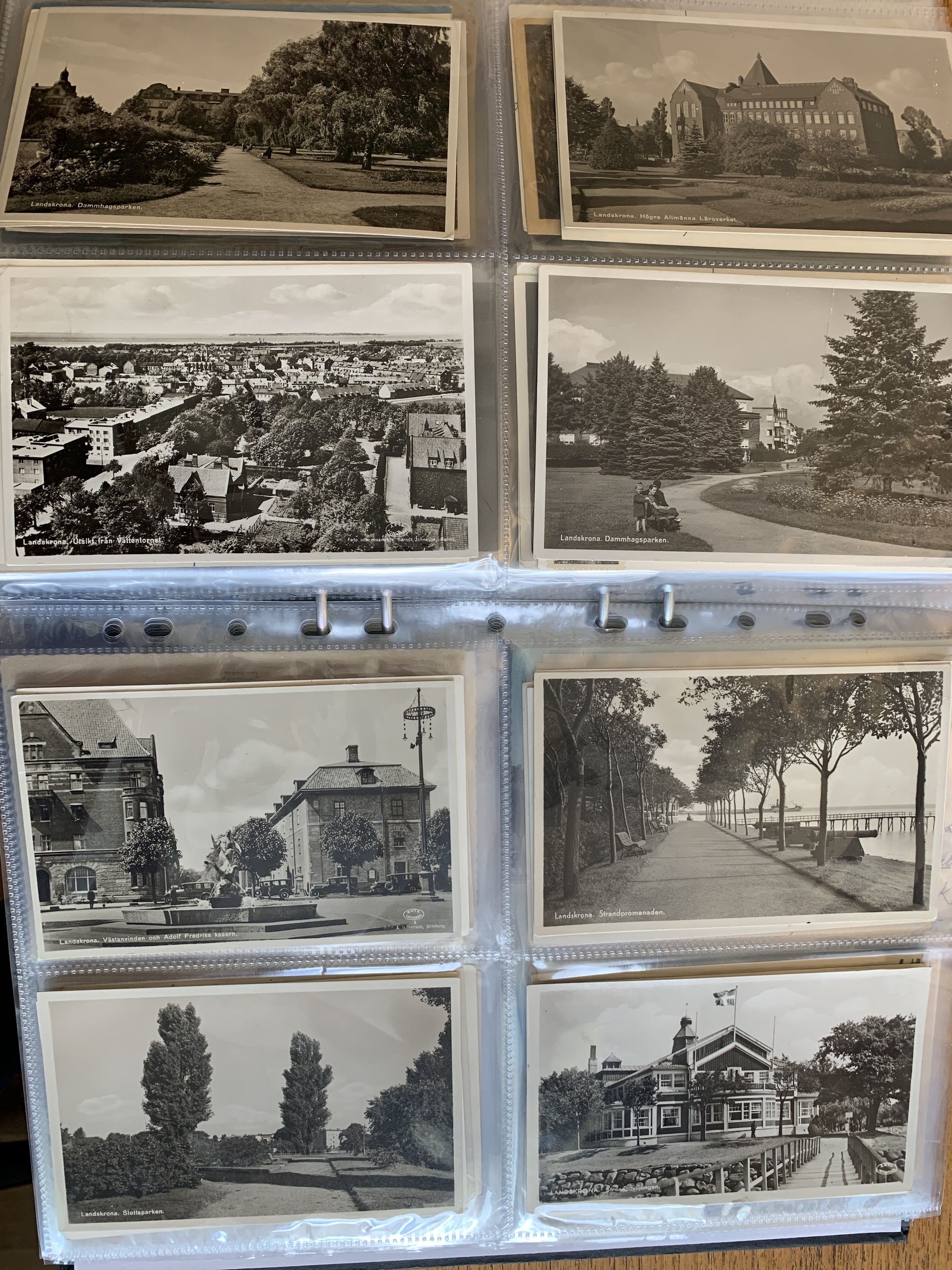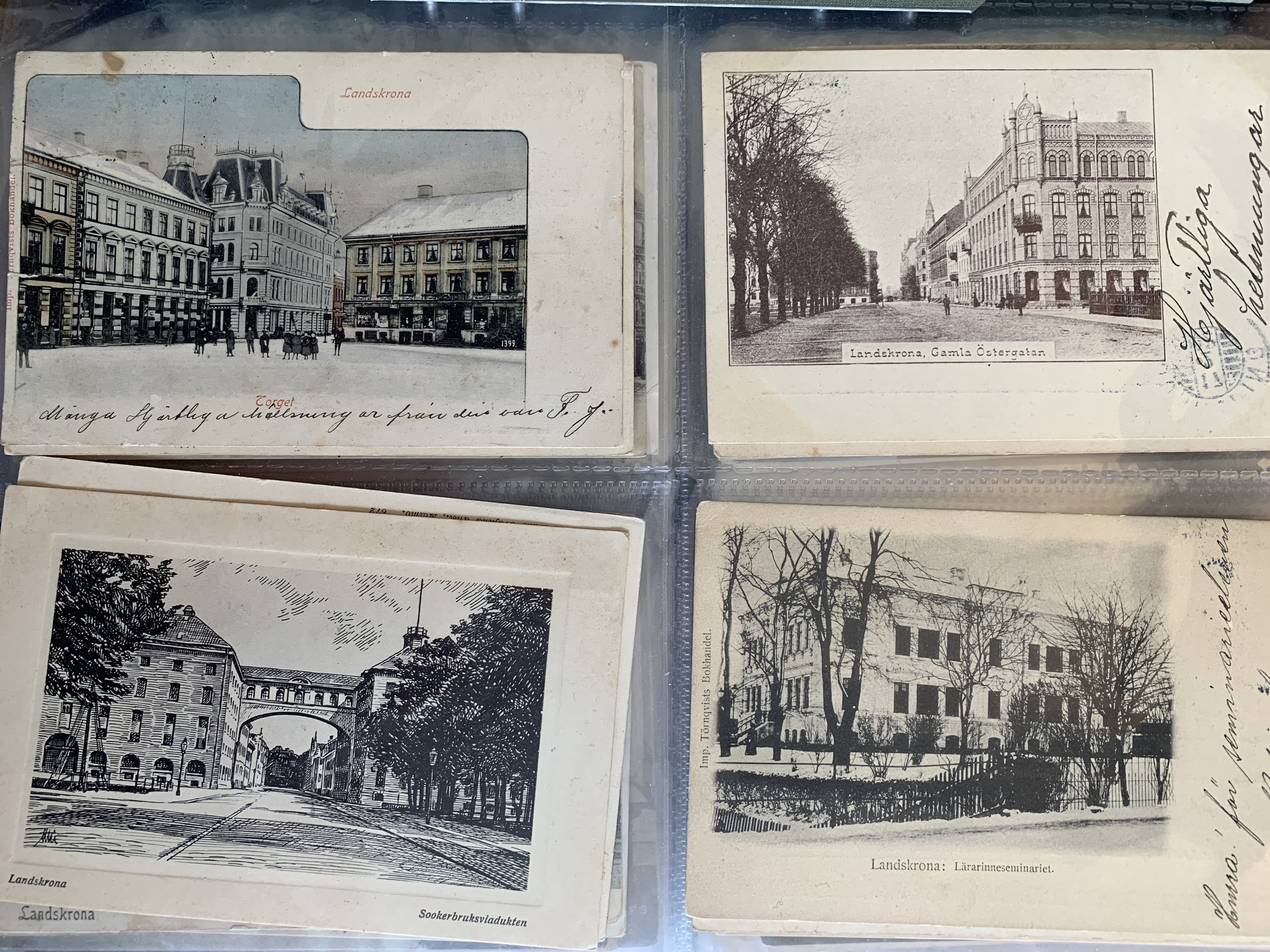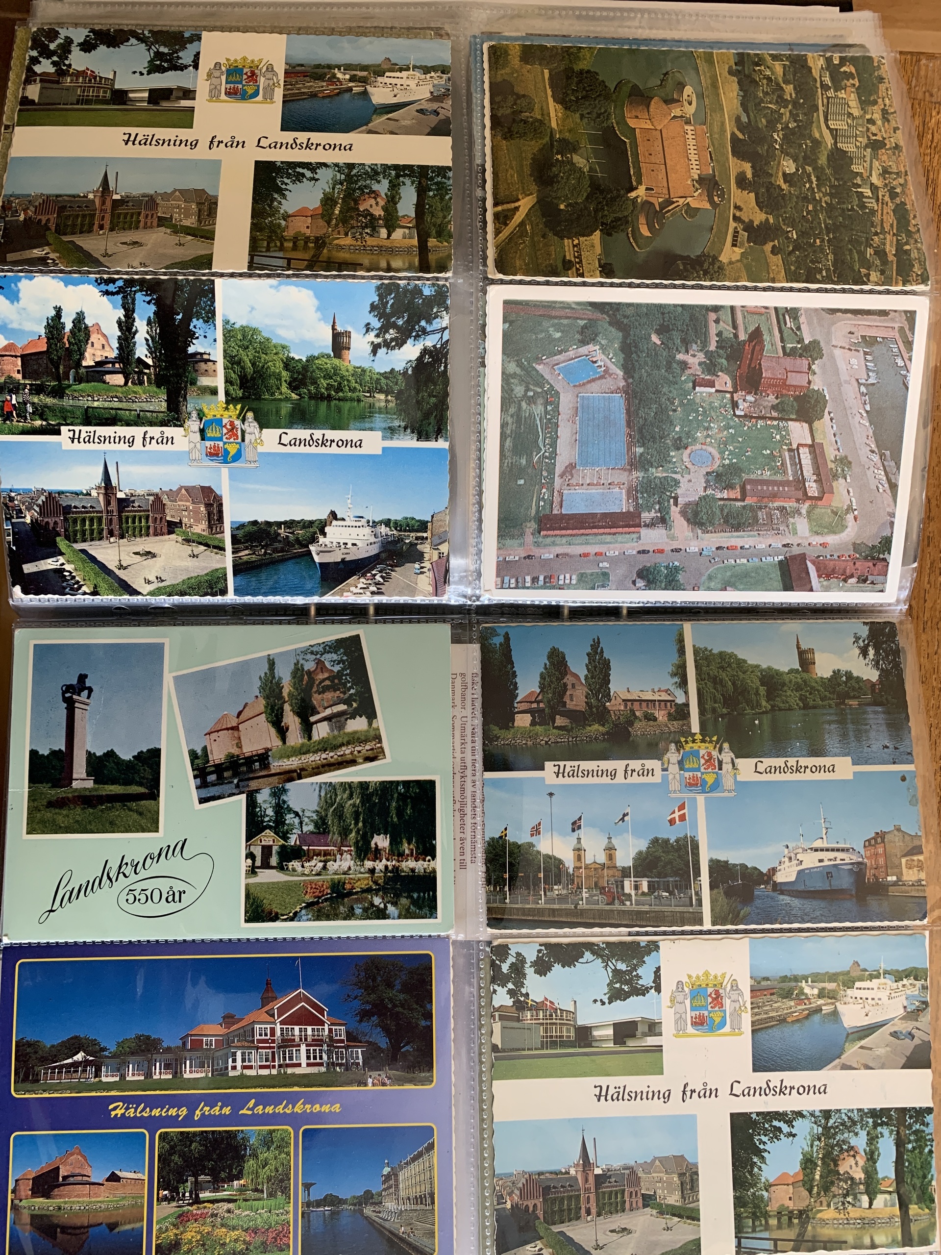 Sweden. Picture postcards. Collection older and more modern cards from LANDSKRONA, approx. 150 different + a smaller folder in a binder with plastic pockets. Please see a selection of scans at www.philea.se.