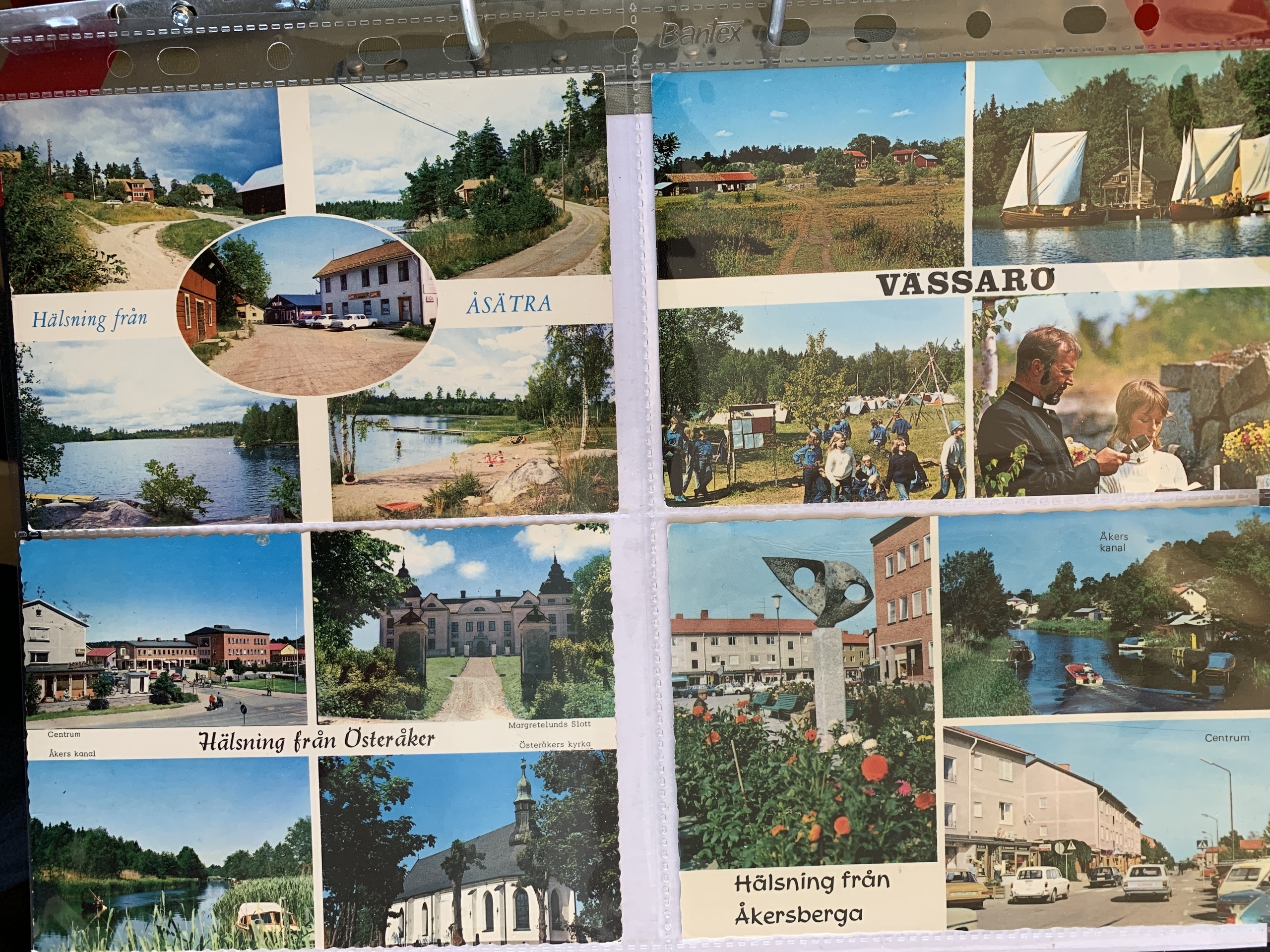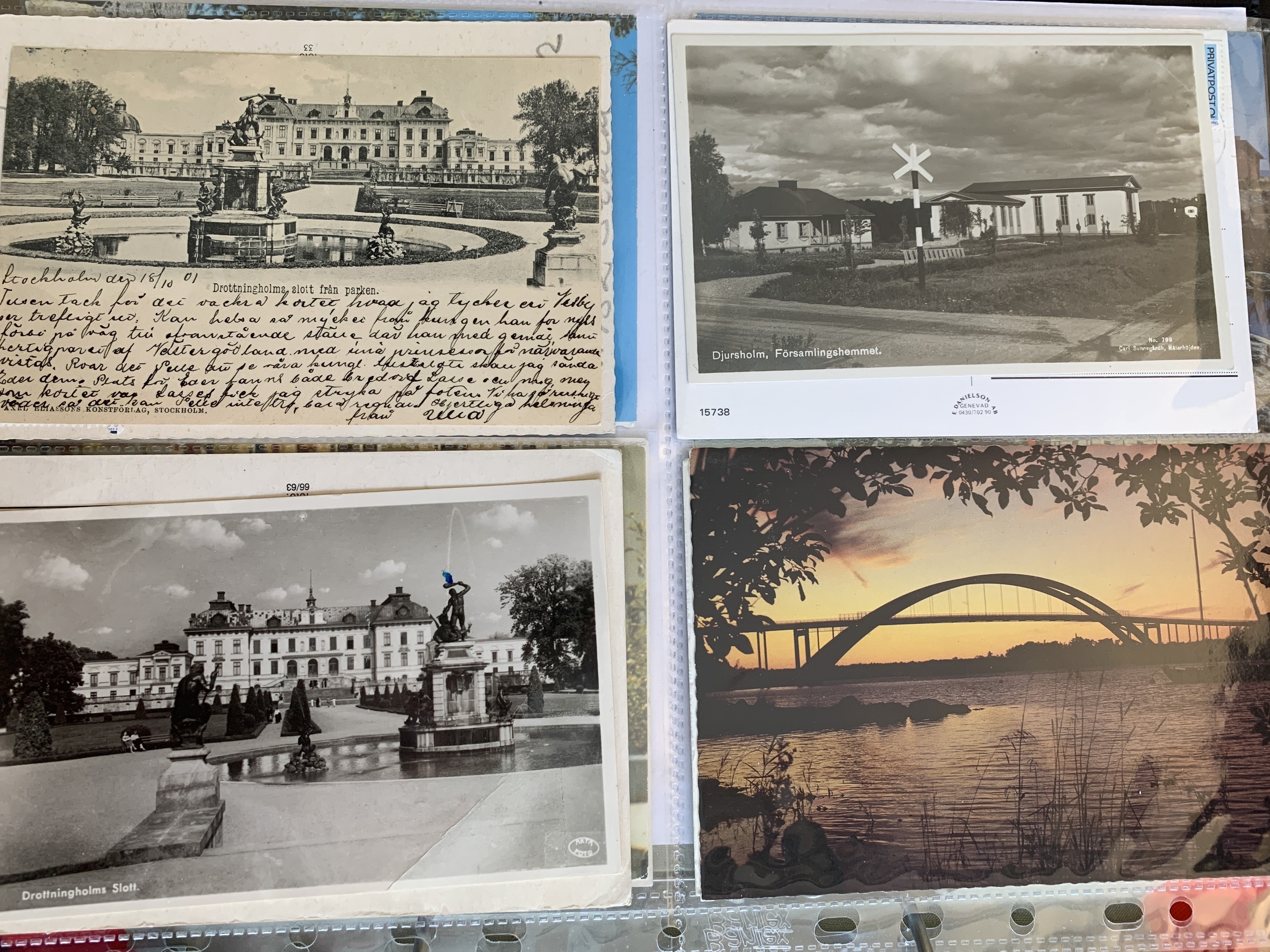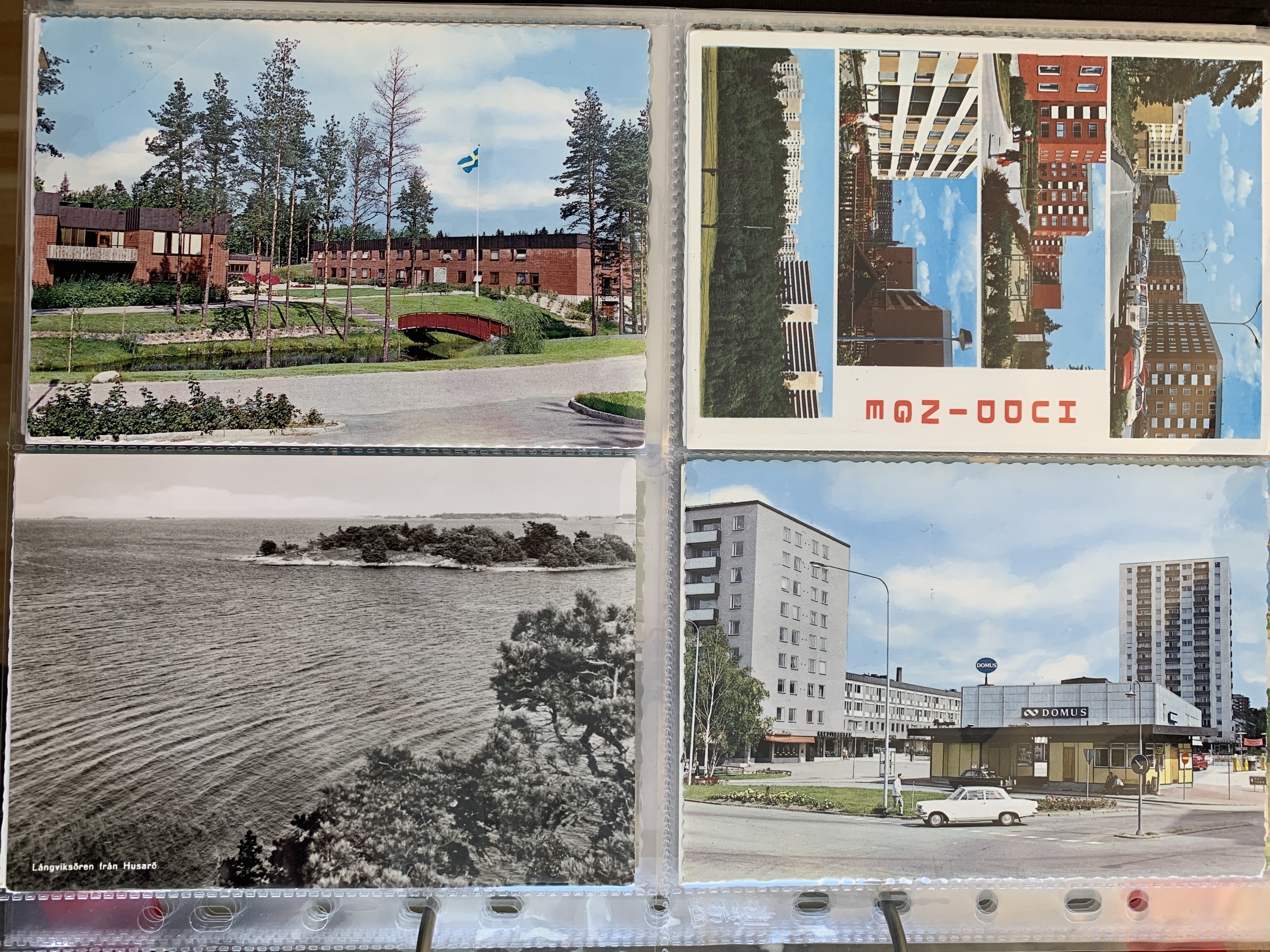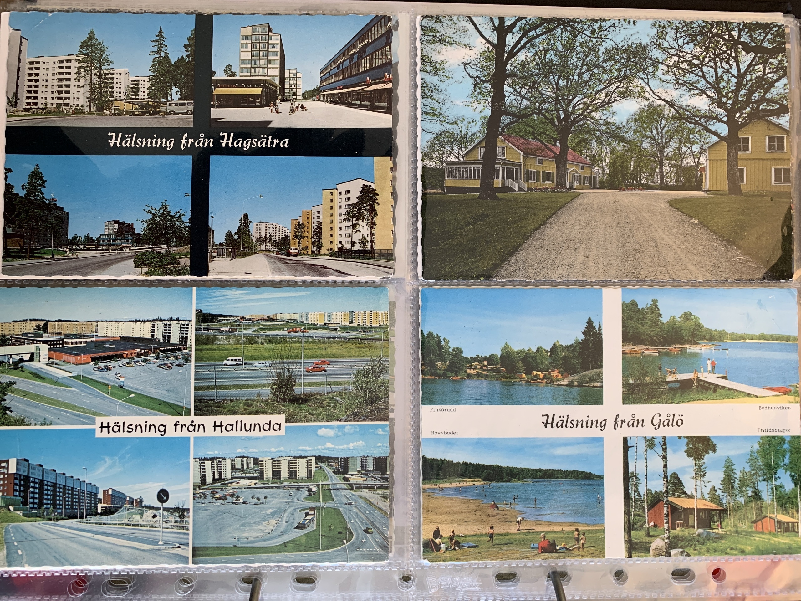 Sweden. Picture postcards. Collection with older and more modern cards from the surroundings of Stockholm, from Alby to Österåker, more than 100 different in a binder with plastic pockets. Please see a selection of scans at www.philea.se.
