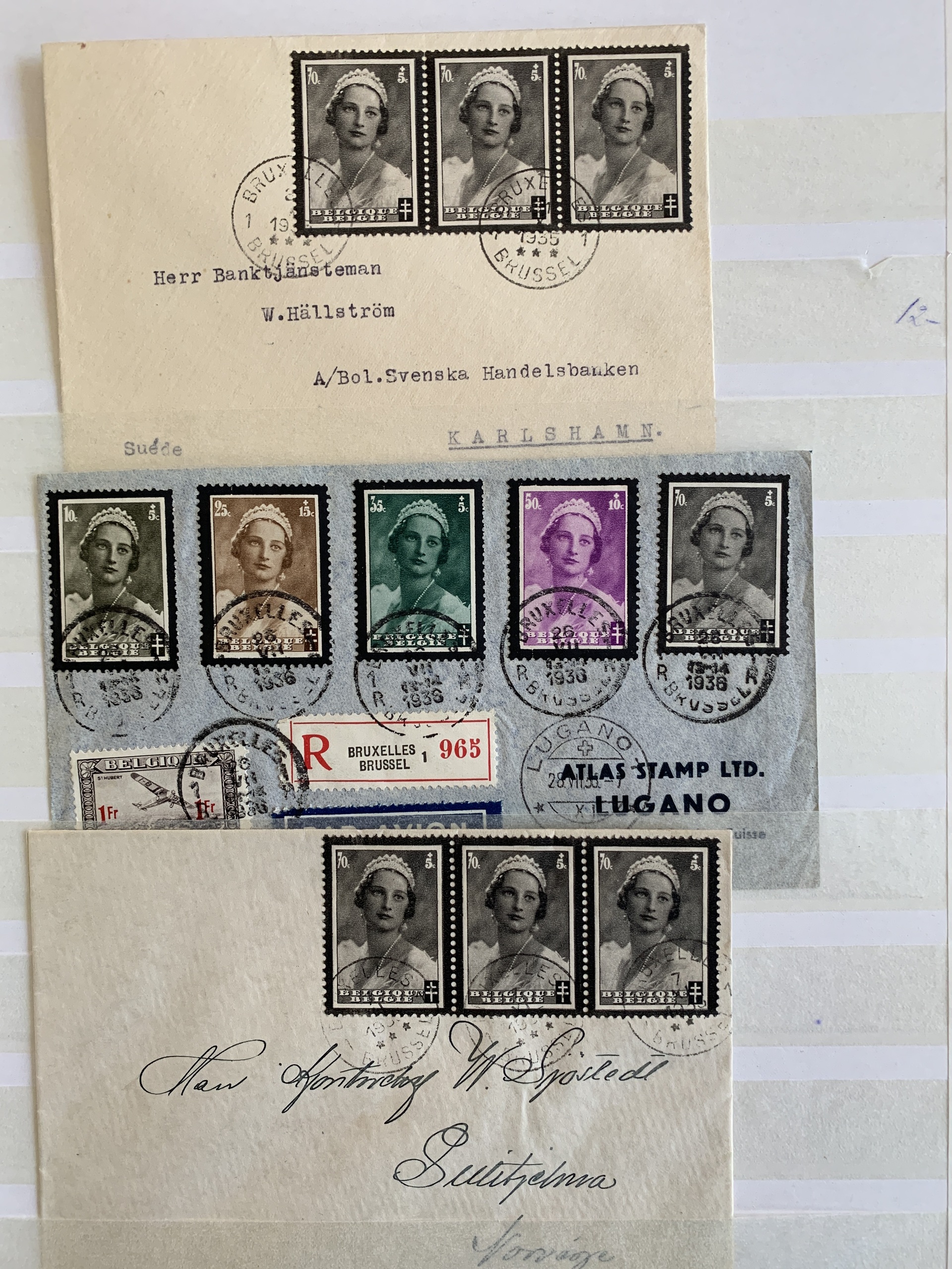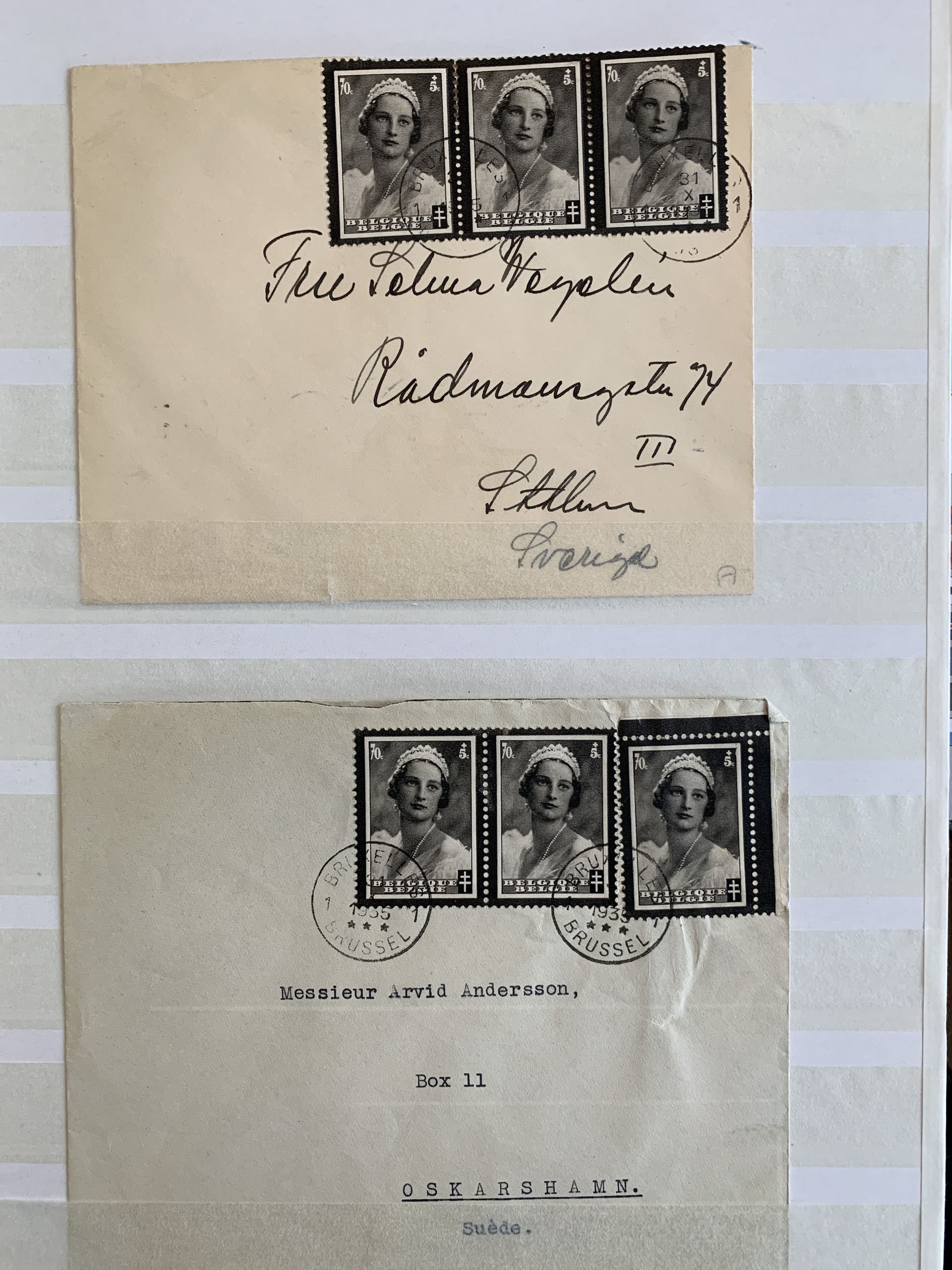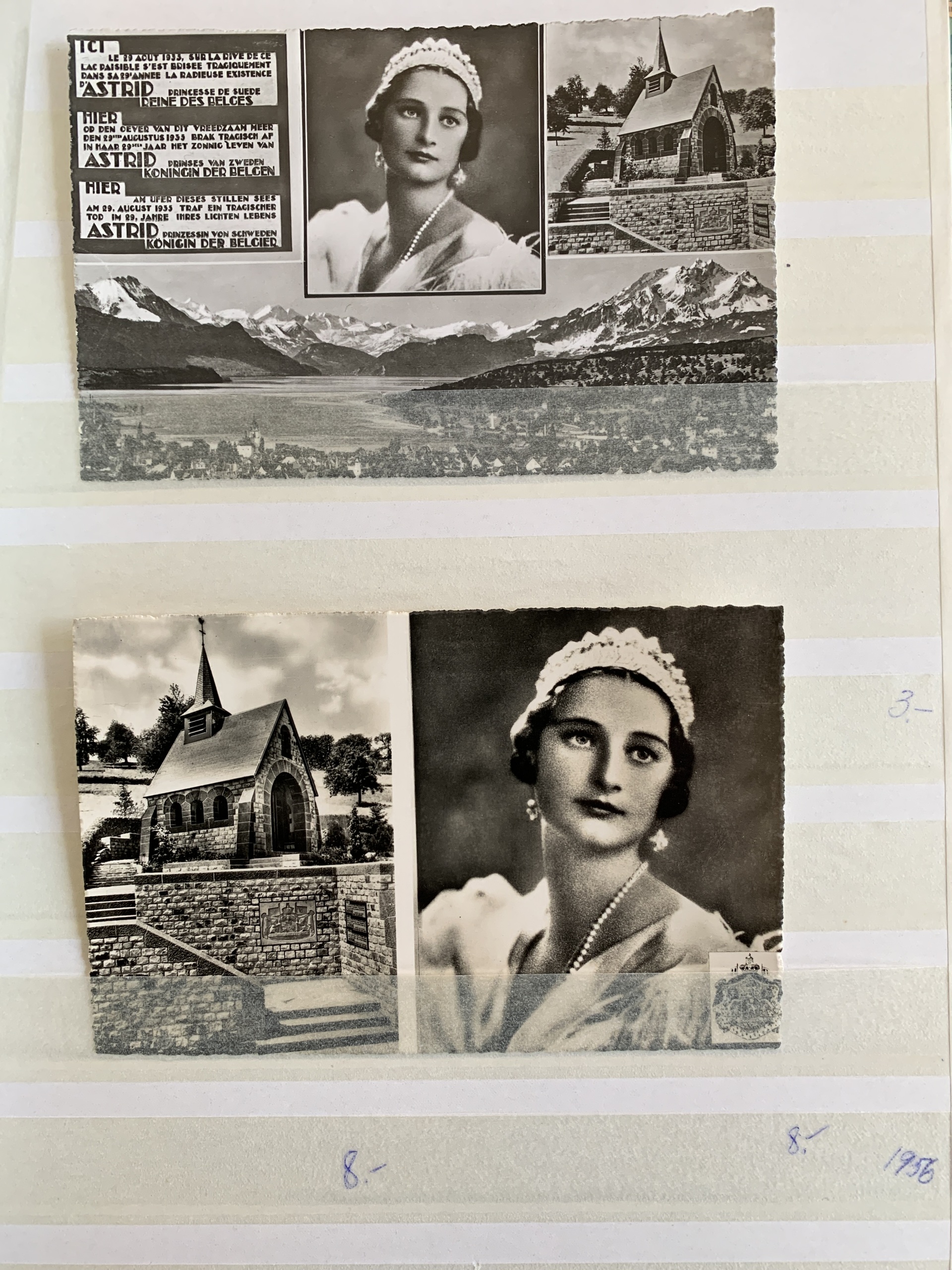 Belgium. Miscellaneous, collection. Mourning stamps. Queen Astrid of Belgium, Princess of Sweden, loose stamps and on cover, some memorial cards + mourning stamps from other countries in a stockbook. Please see a selection of scans at www.philea.se.