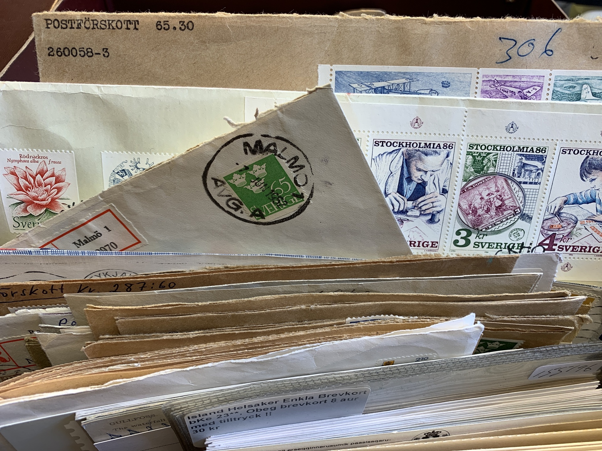 NORDIC COUNTRIES. Covers, covers. Accumulation with hundreds older (mostly) and more modern covers and picture postcards from the Nordic countries, mainly Denmark, Norway, Sweden and Finland in a smaller wardrobe box.