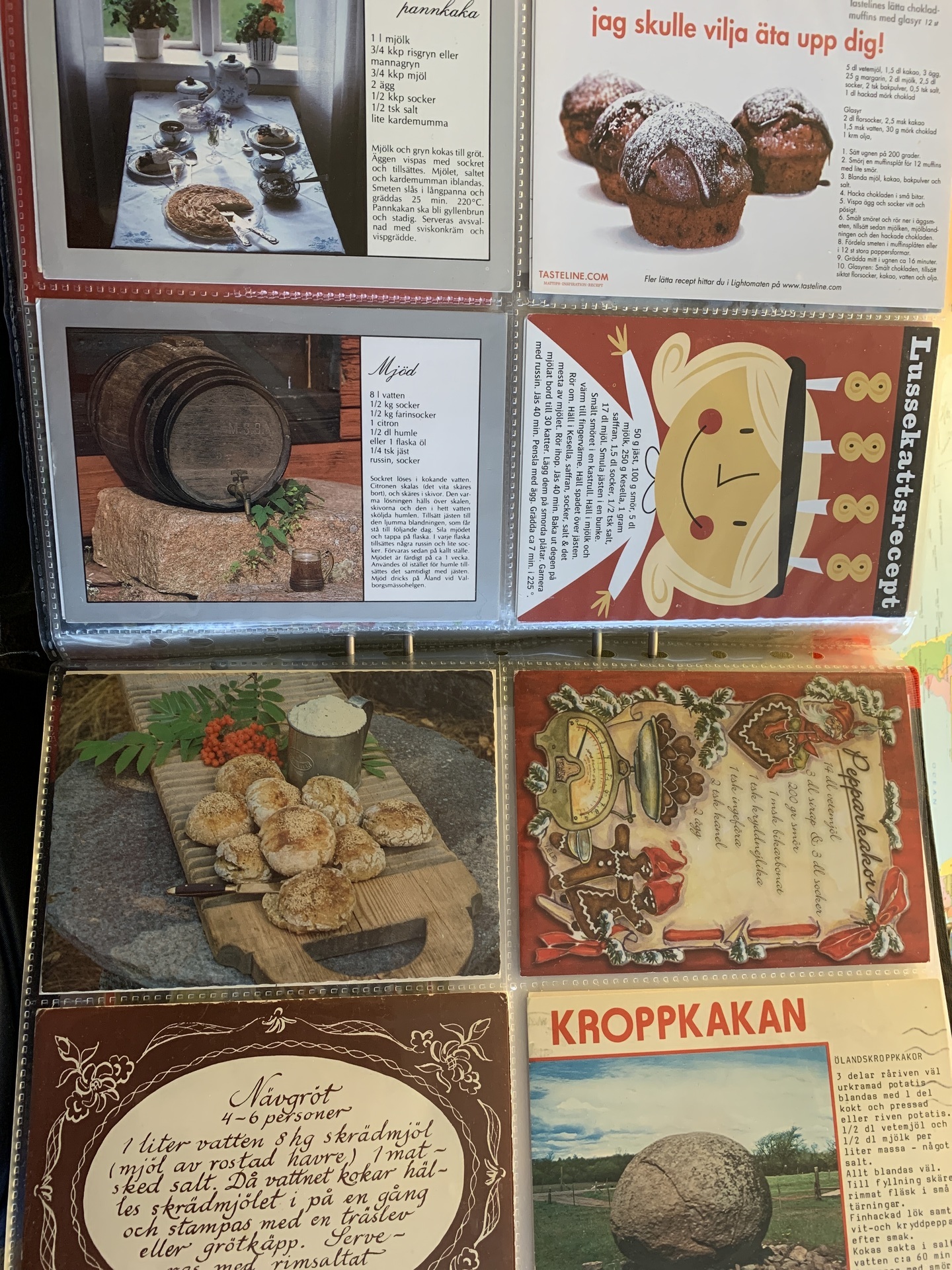Sweden. Picture postcards. Collection cards FOOD RECIPES, 80 different in a binder with plastic pockets. Please see a selection of scans at www.philea.se.