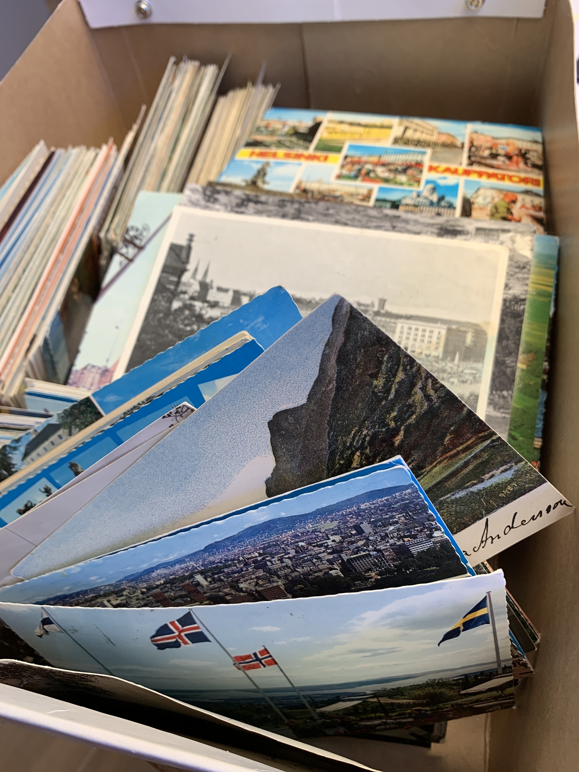 NORDIC COUNTRIES. Picture postcards. Big accumulation with hundreds of older and more modern picture postcards from mainly Norway, Finland, Sweden and Denmark in a larger box.
