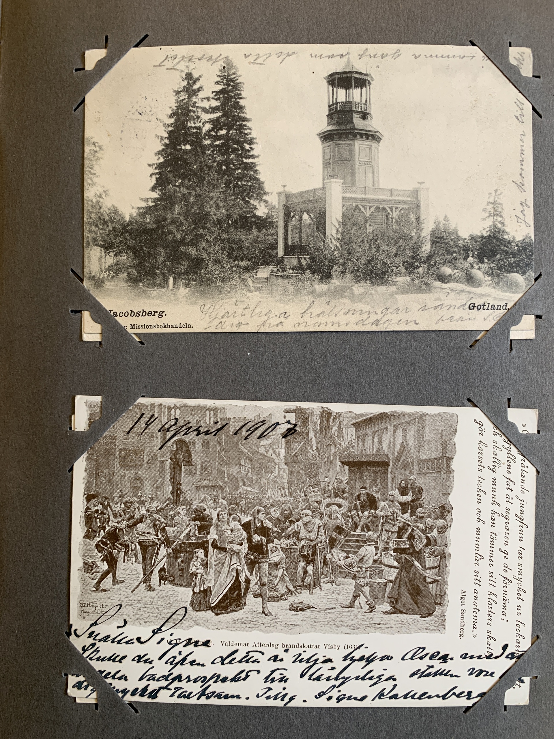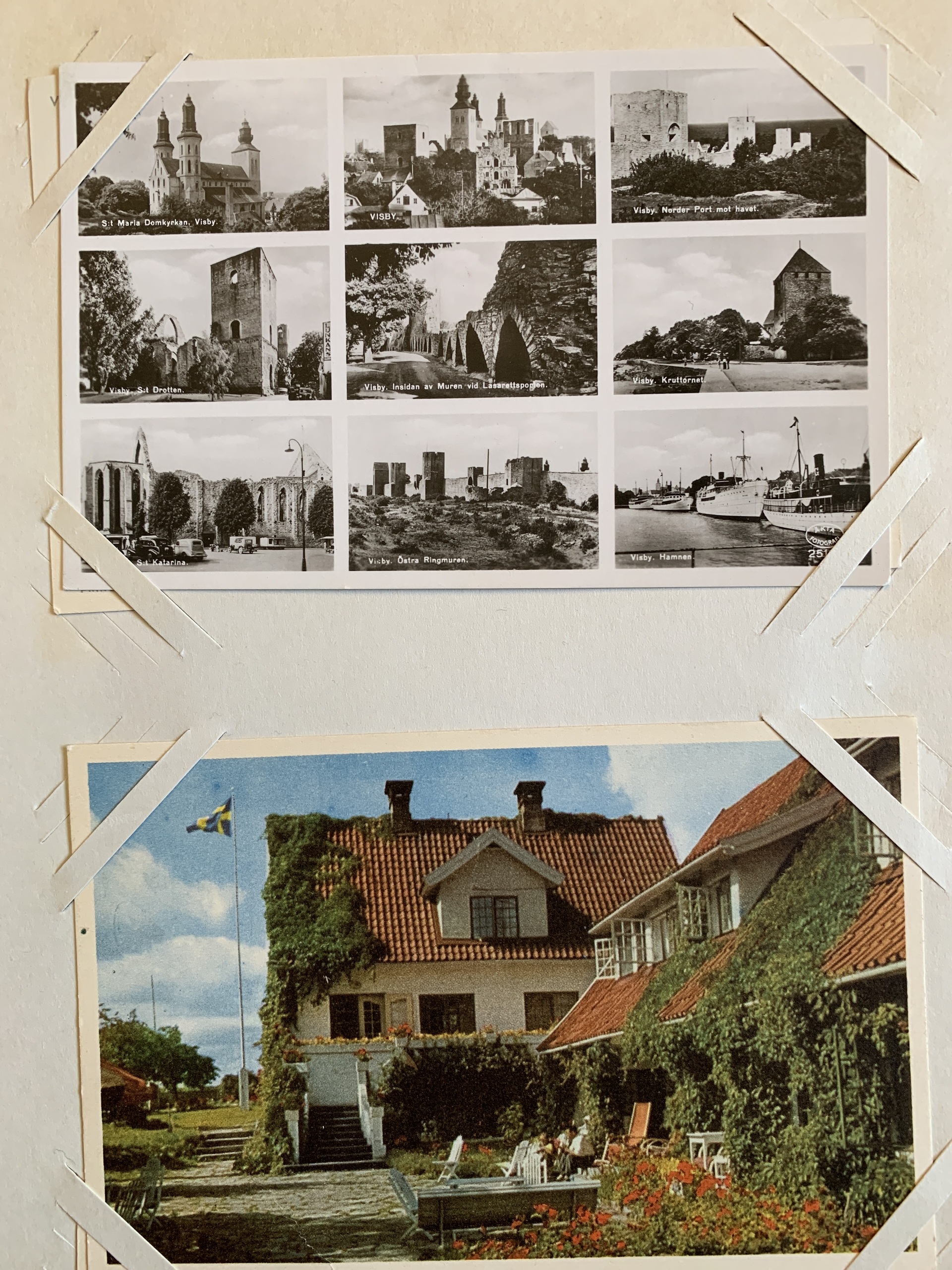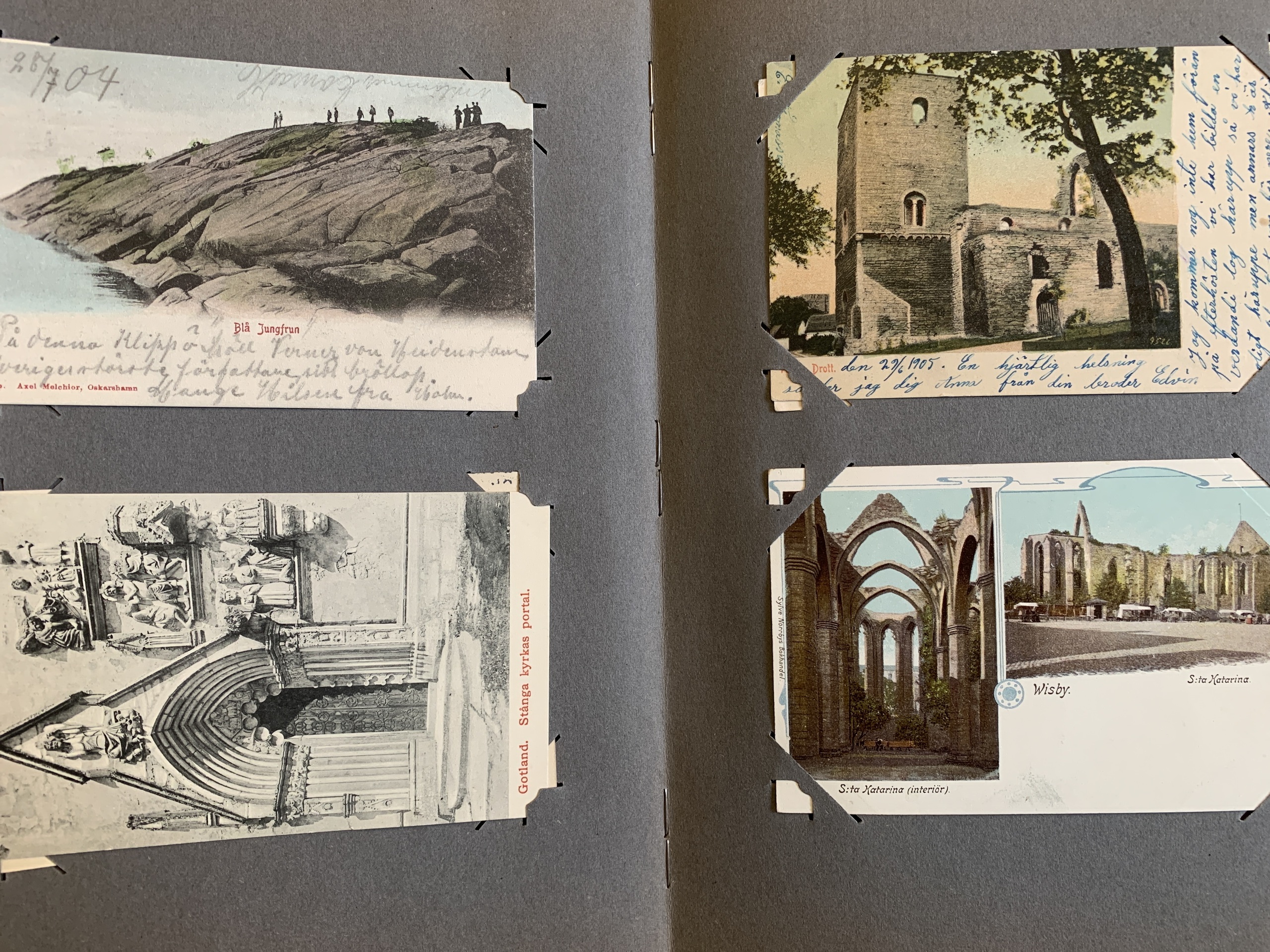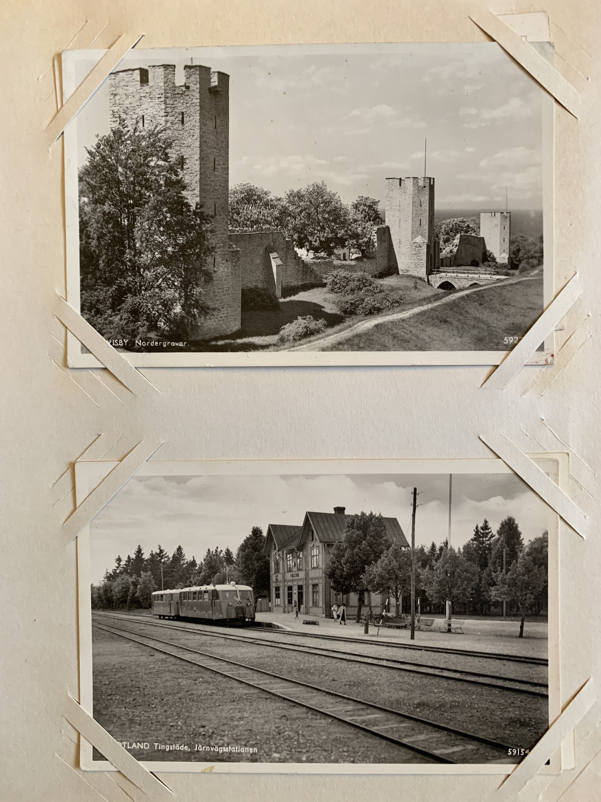 Sweden. Picture postcards. Collection older cards in small size from GOTLAND (mainly Visby), approx. 230 different and a smaller folder in two postcard albums. Please see a selection of scans at www.philea.se.
