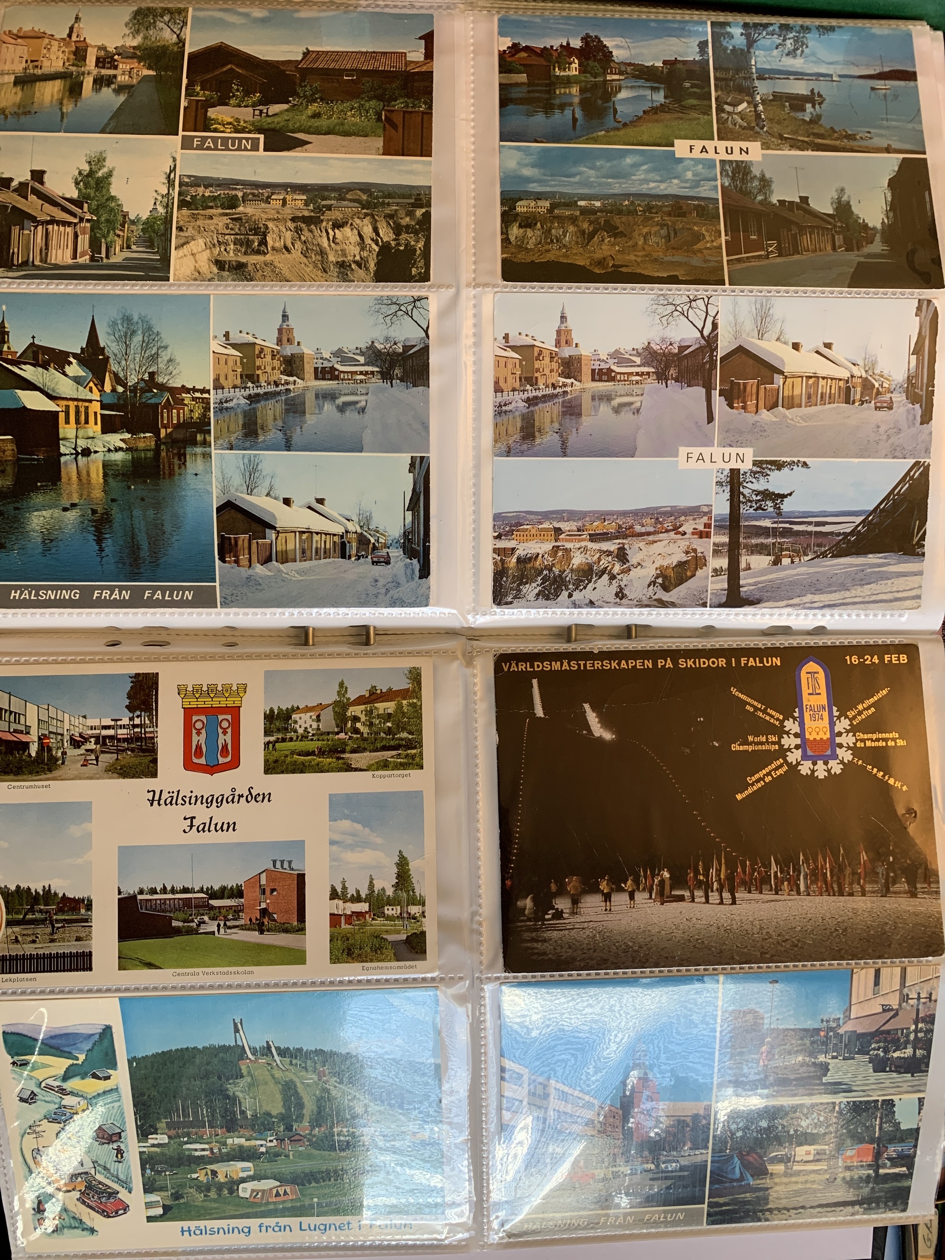 Sweden. Picture postcards. Collection older and more modern cards from FALUN, 163 different in a binder with plastic pockets. Please see a selection of scans at www.philea.se.
