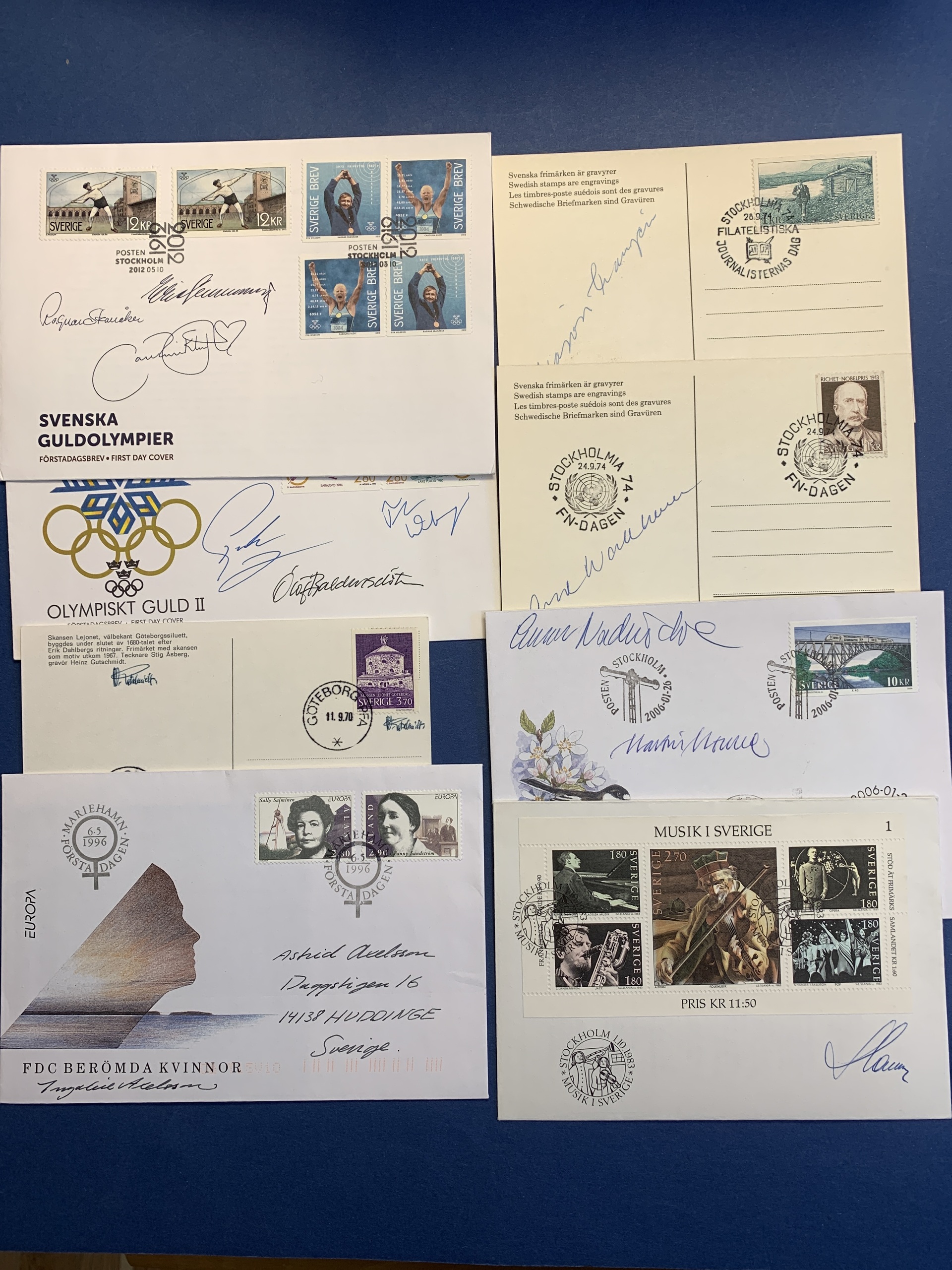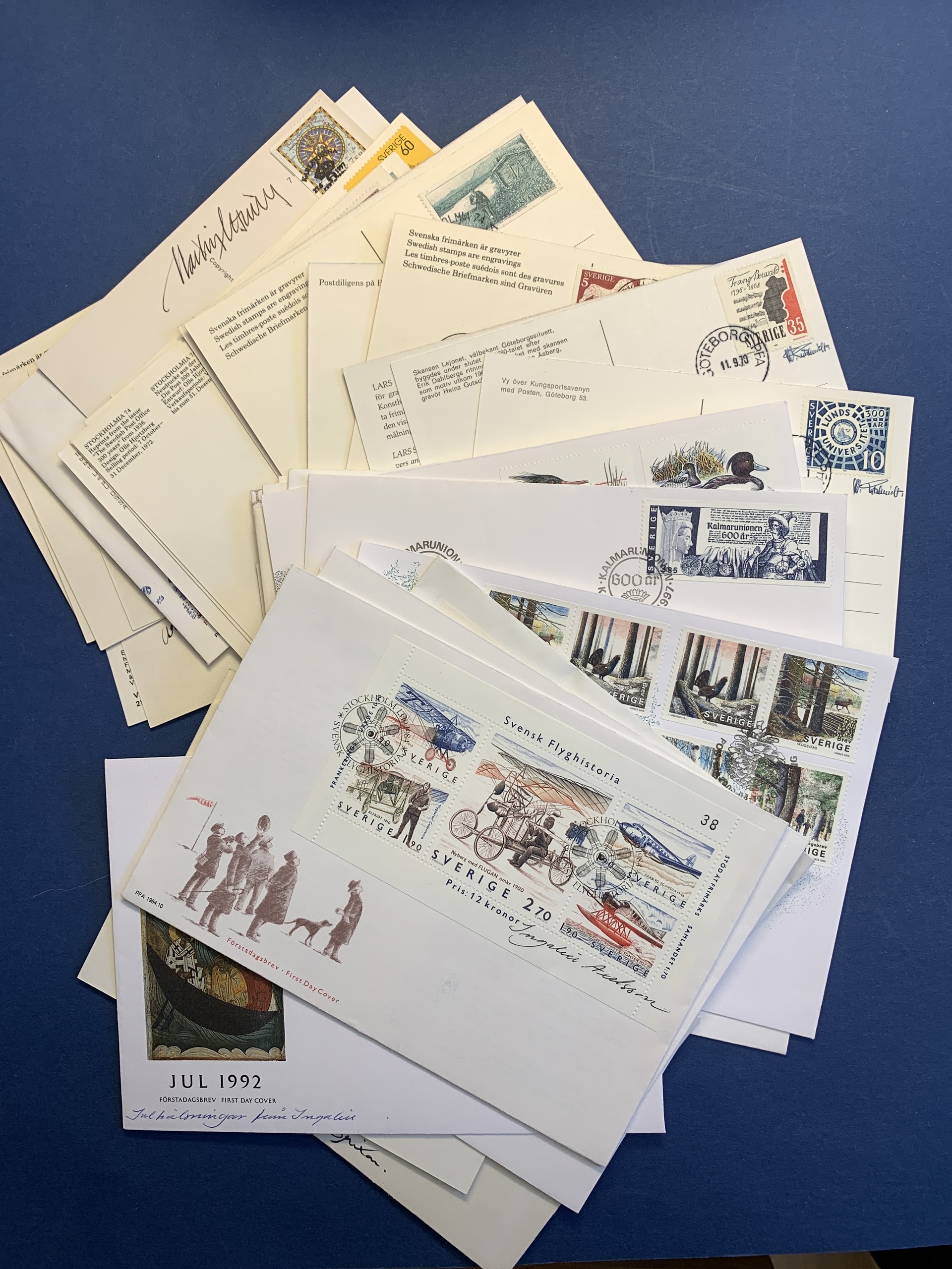 Sweden. FDCs. 59 FDCs, exhibition cards, etc. signed by engravers, designers, or designers and engravers, e.g. Slania, Gutschmidt, Wallhorn. Please see a selection of scans at www.philea.se.
