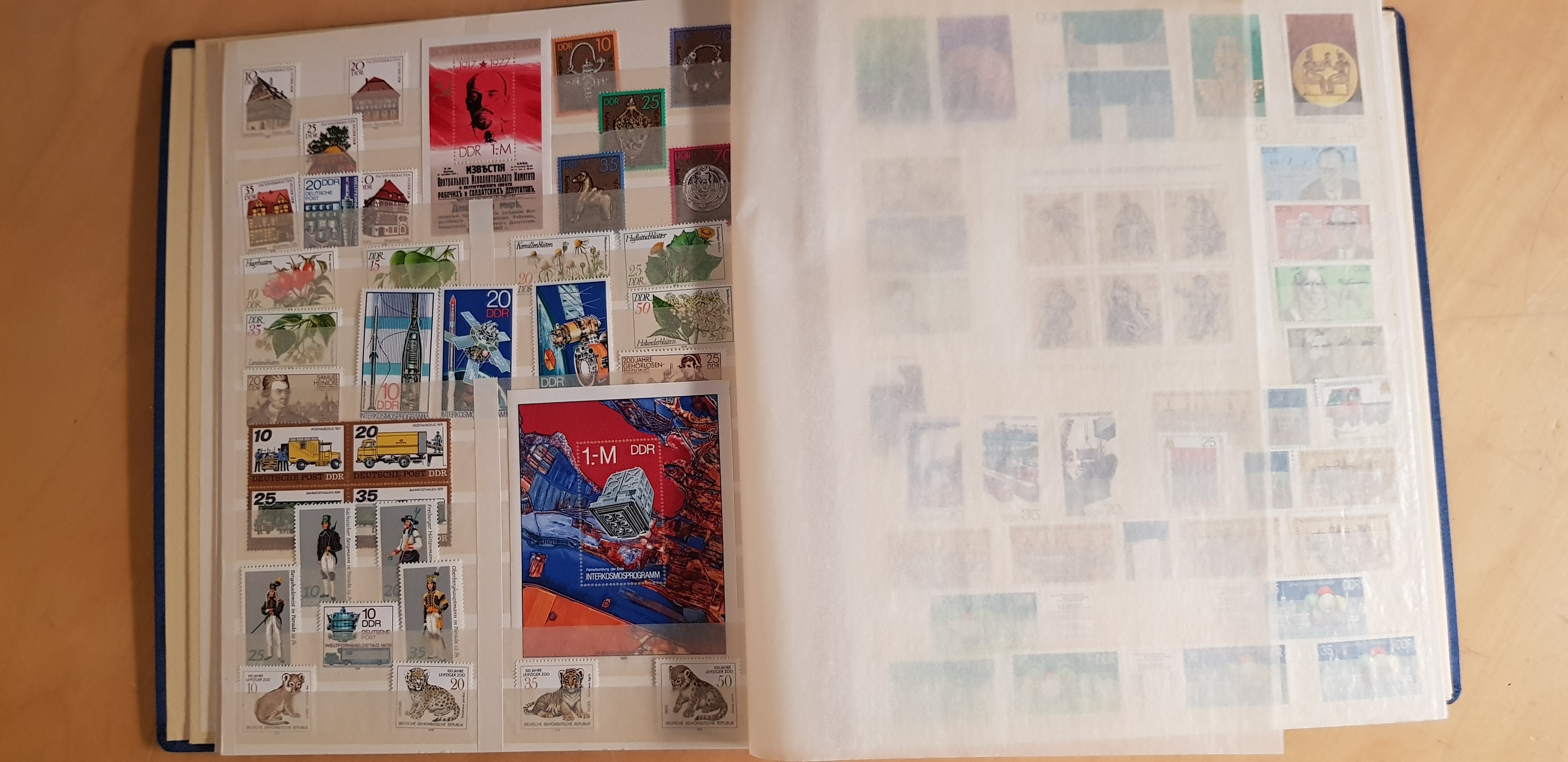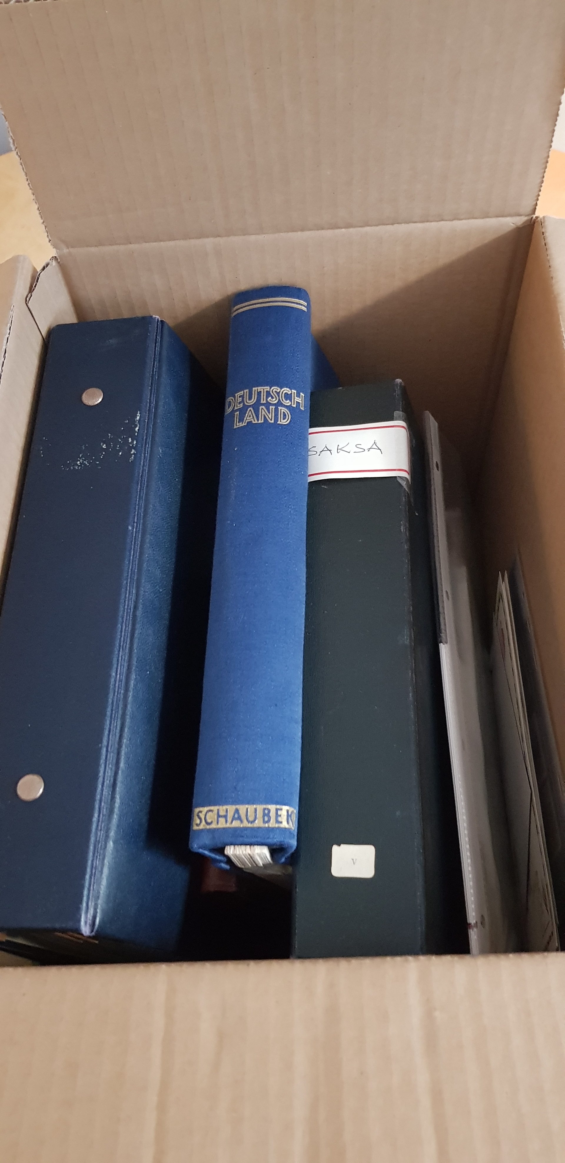 Germany, mixed. Collection/accumulation mostly ★★ 18–1900s in box. One album that is full of DDR stamps, one album that has a lot of duplicates from Germany, also a thick Shaubek album 1946-93 containing Germany unused stamps and finally one album containing a lot of unused stamps from Deutsches Reich. Please see a selection of scans at www.philea.se. Mostly fine quality. Approx. 9 kg. (>5000)
