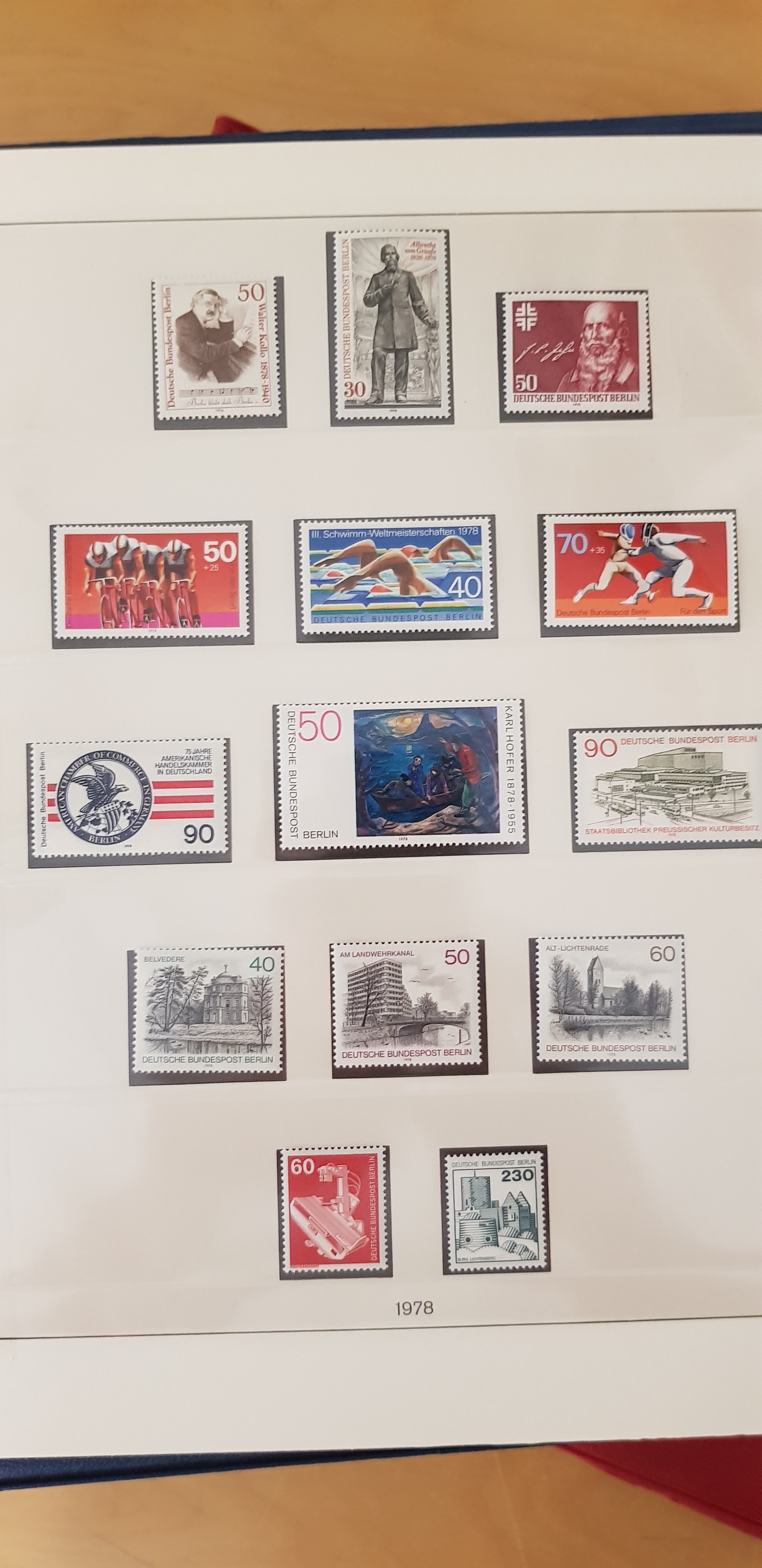 Germany, Berlin. Collection ★★ 1954–1990 in two Lindner albums. A very good assembly of stamps from Berlin. It all seems to be complete. Please see a selection of scans at www.philea.se. Fine quality. (>2000)