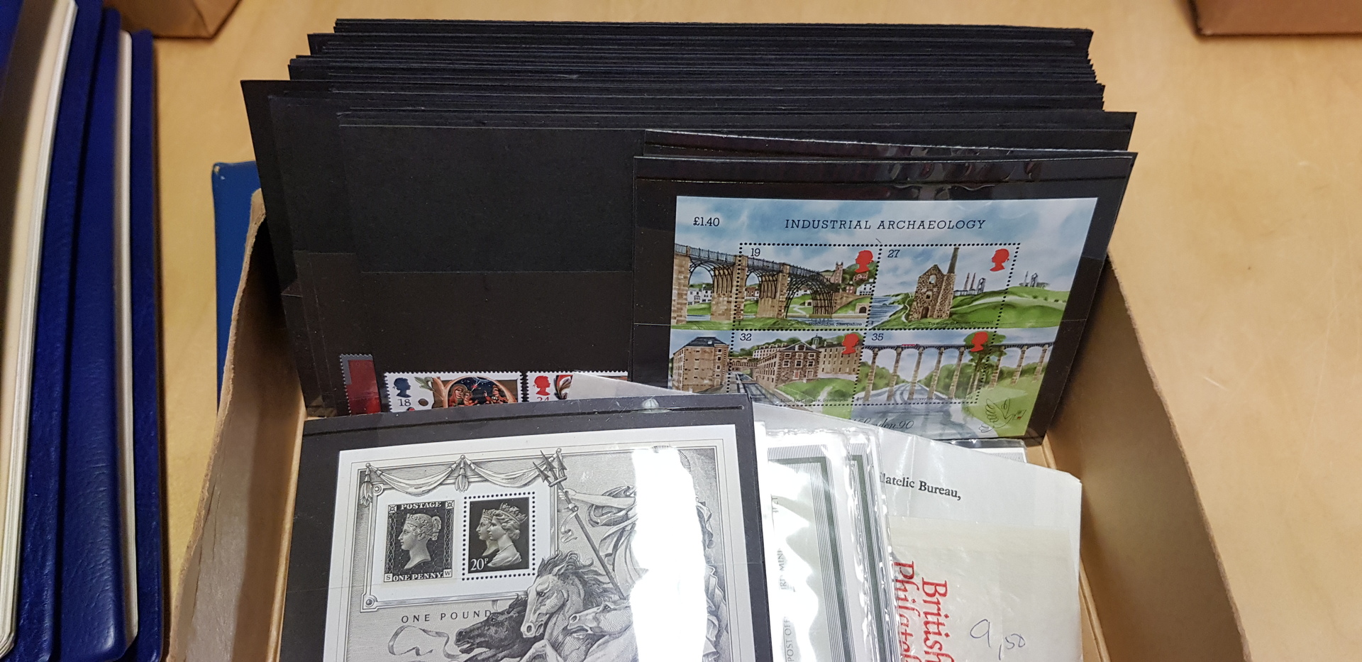 Britain. Collection/accumulation mostly ★★ 1890–1986 in three albums. A box including three regular albums and one small album, as well as a minor box with almost everything are unused stamps. High face value! Please see a selection of scans at www.philea.se. Mostly fine quality. Approx. 7 kg. (>2000)