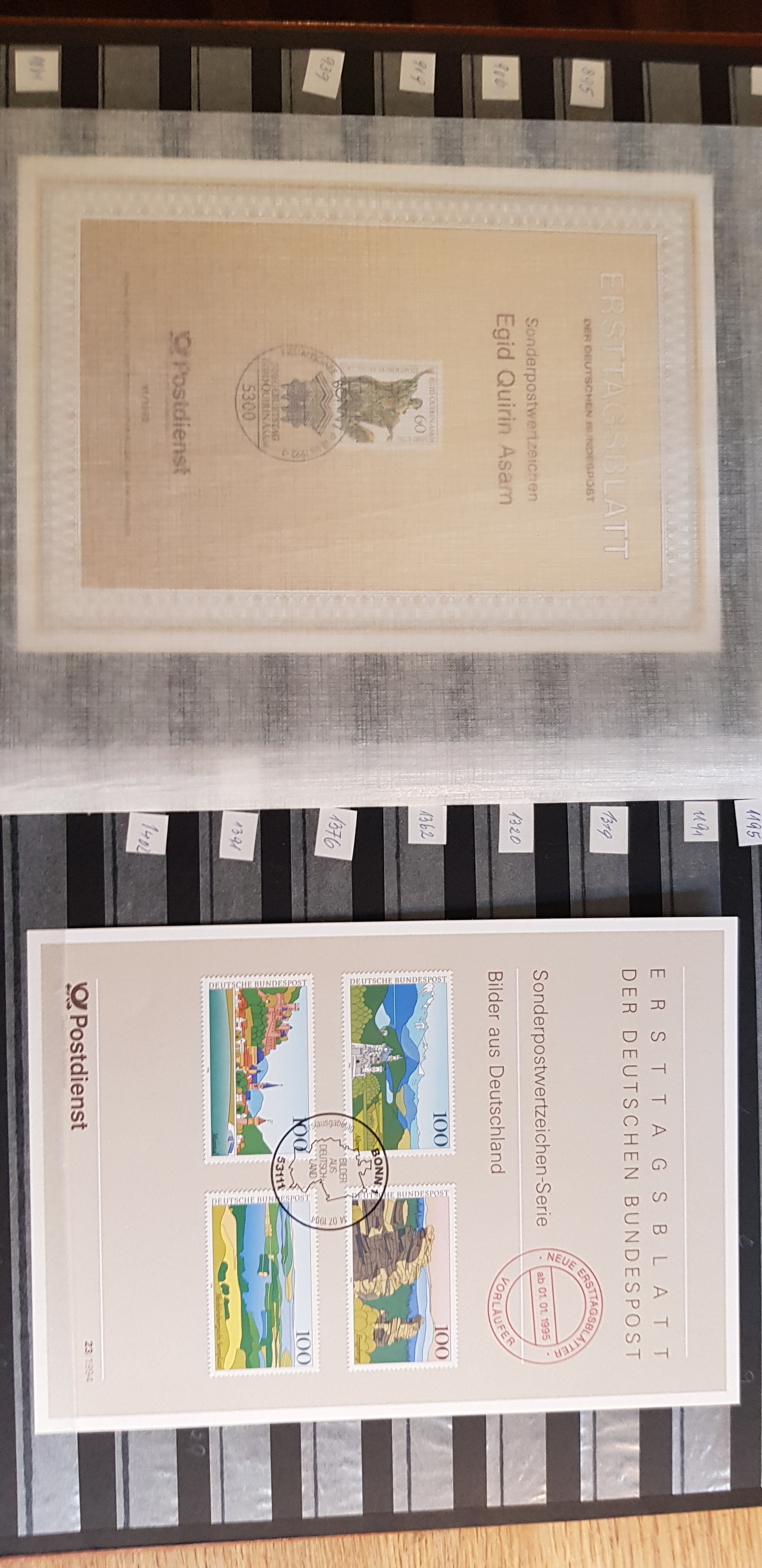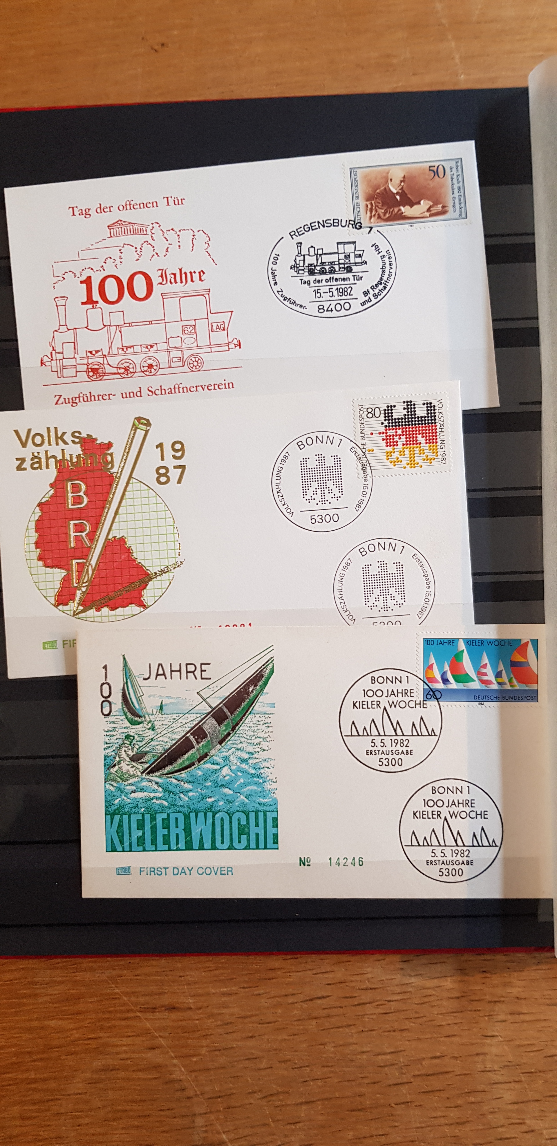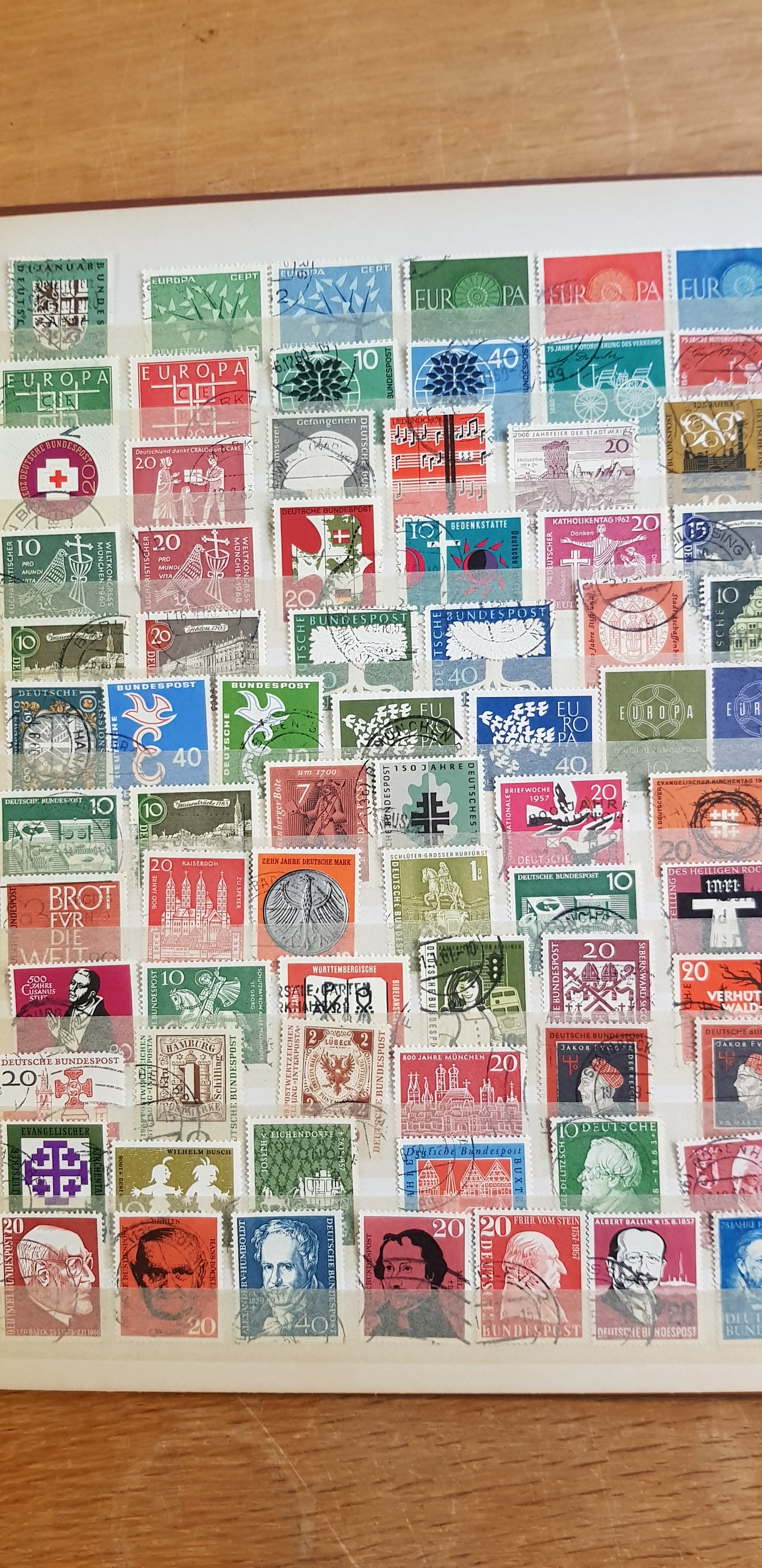 Germany, mixed. Collection/accumulation mostly used 1900s–2000s in album. A box with seven stockbooks, one FDC binder, one Michel catalogue Germany, one interesting book over Zeppelin and finally a big envelope that contains stamps and others. Please see a selection of scans at www.philea.se. Mostly fine quality. Approx. 10 kg. (>1000)