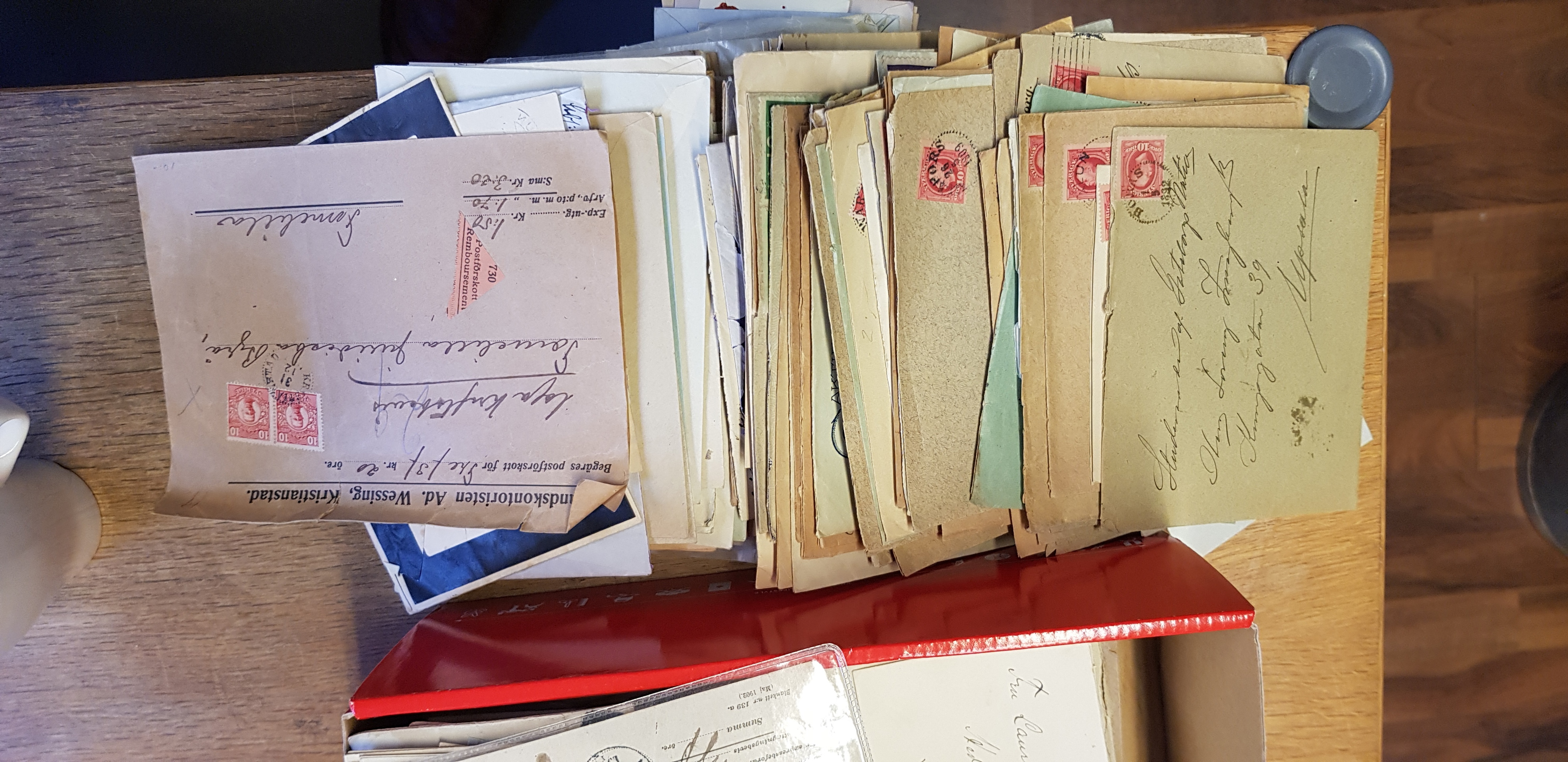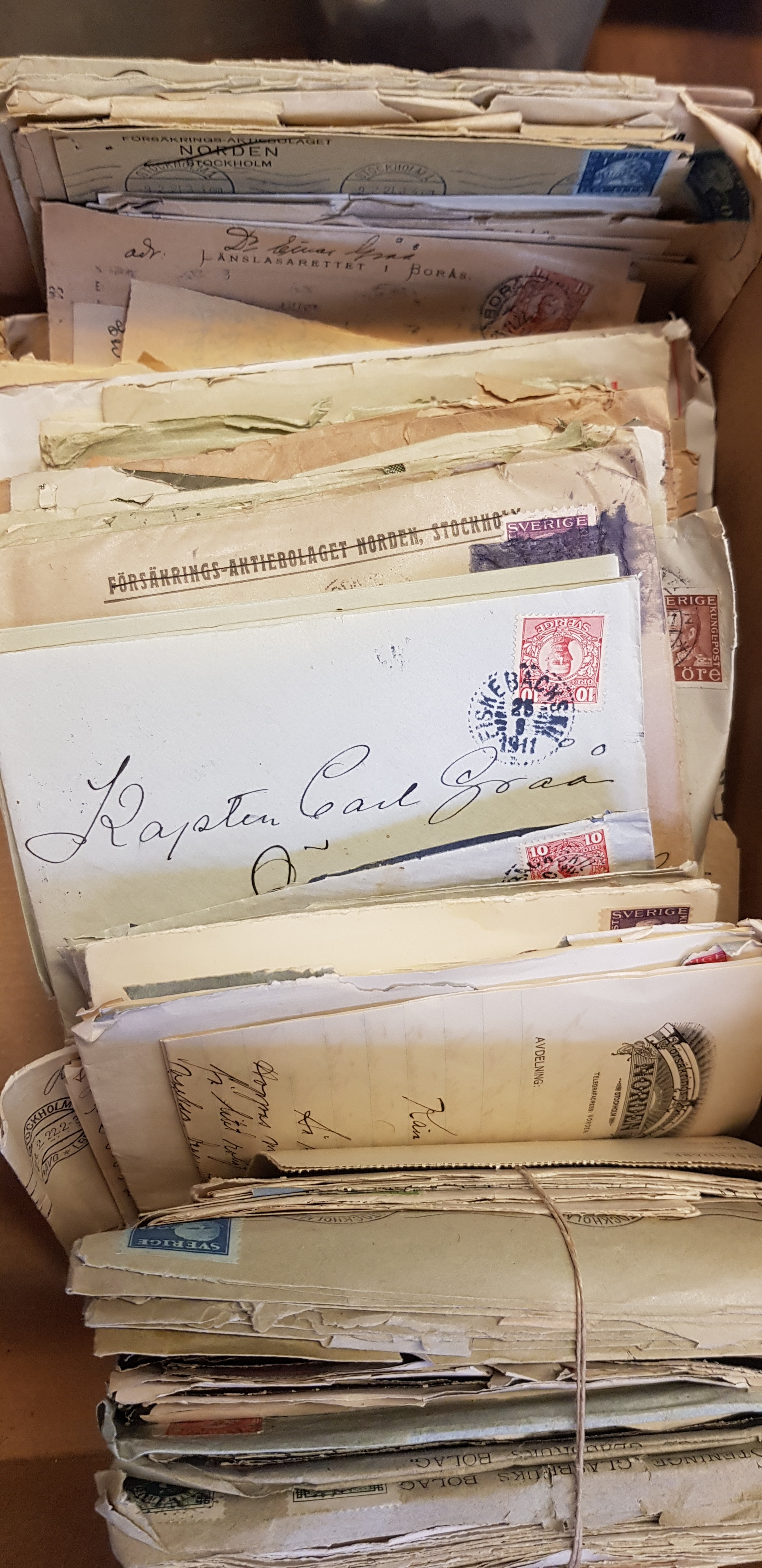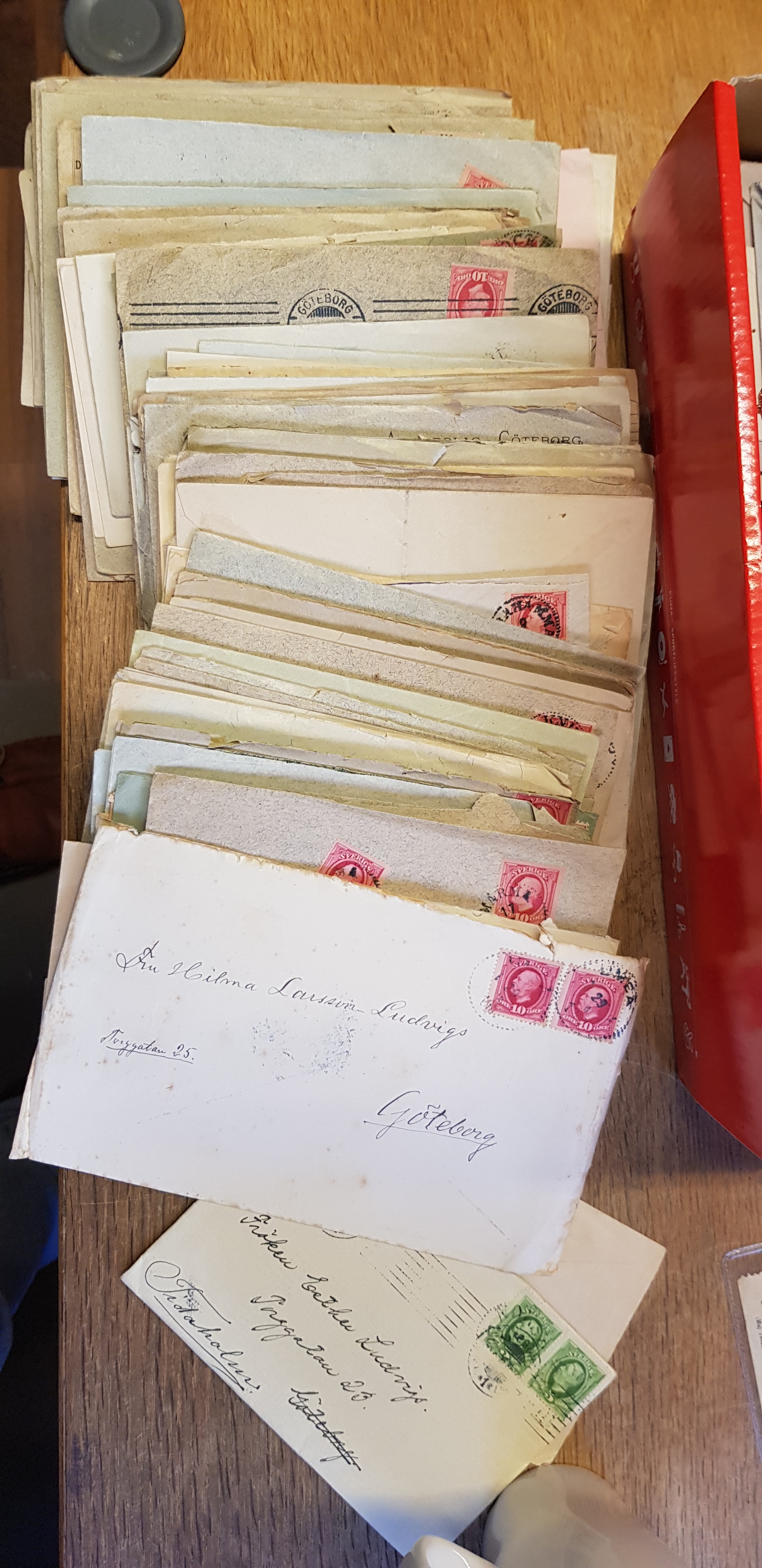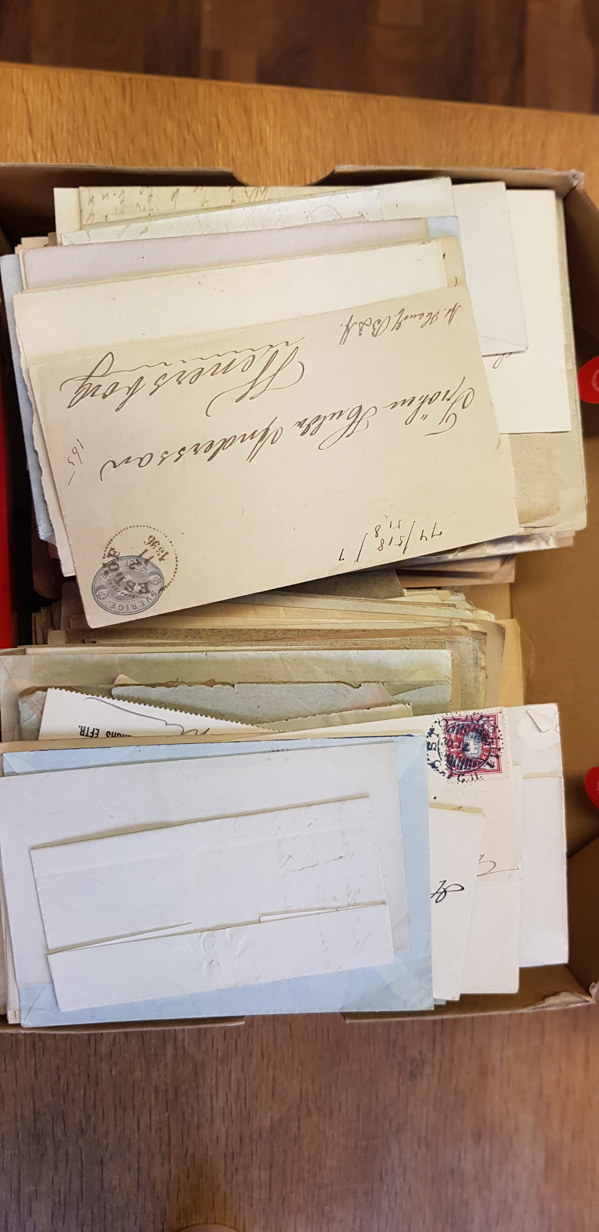 Sweden. Covers, lot covers 1800–1900s in two boxes with a lot of old letters with envelopes. Good chance to find nice stamped stamps, mostly Oscar II 10 öre red. Even some before 1855. Please see a selection of scans at www.philea.se. Good quality. Approx. 6 kg.