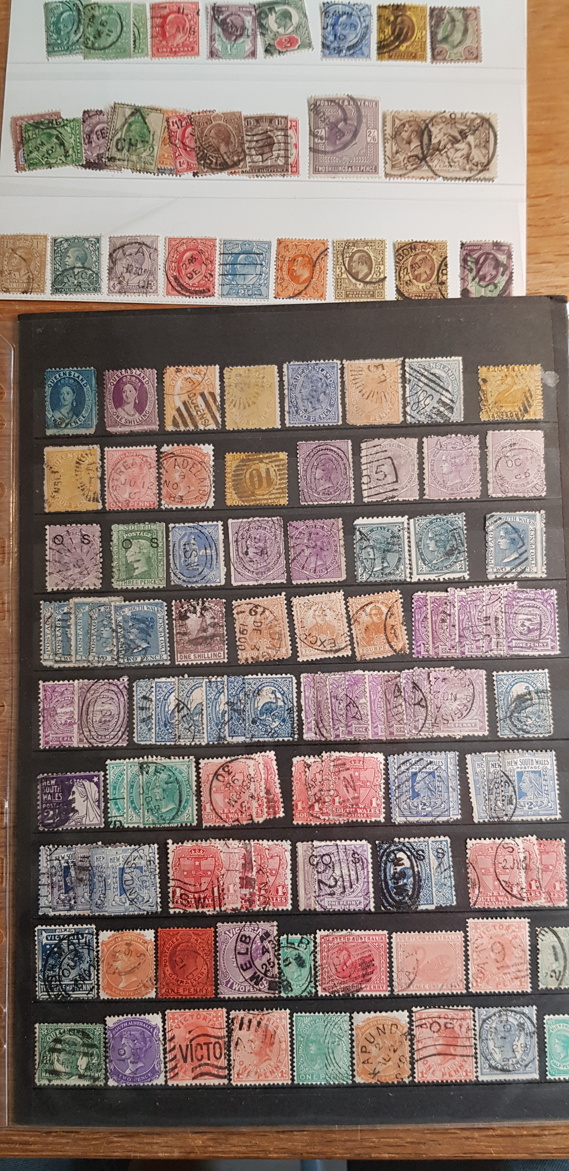 Britain, Guernsey. Collection/accumulation mostly ★★ 1900s in box. Five year sets 1994-1998 from Guernsey. Stamps from UK and its colonies. Mostly fine quality. (>1000)