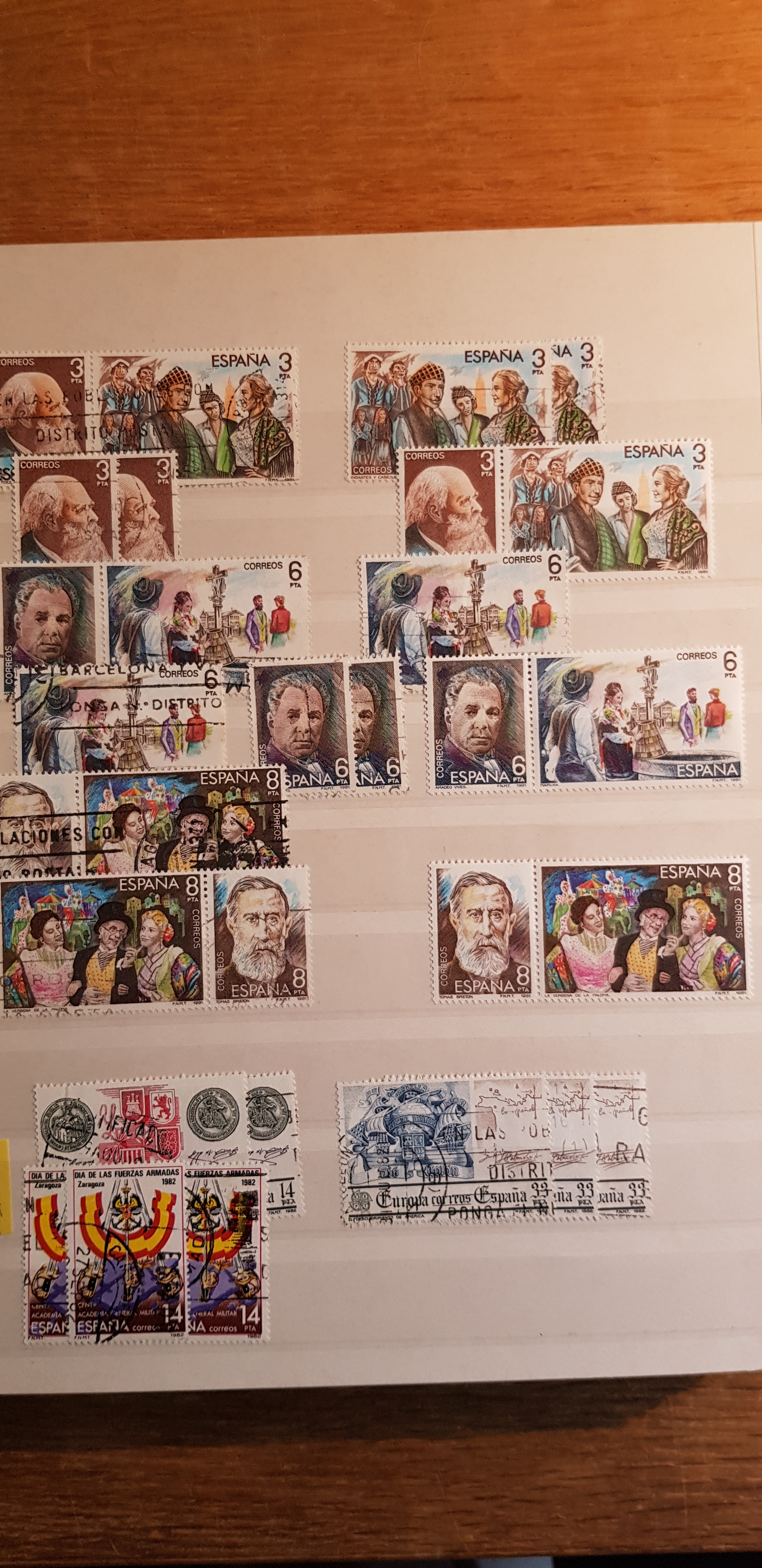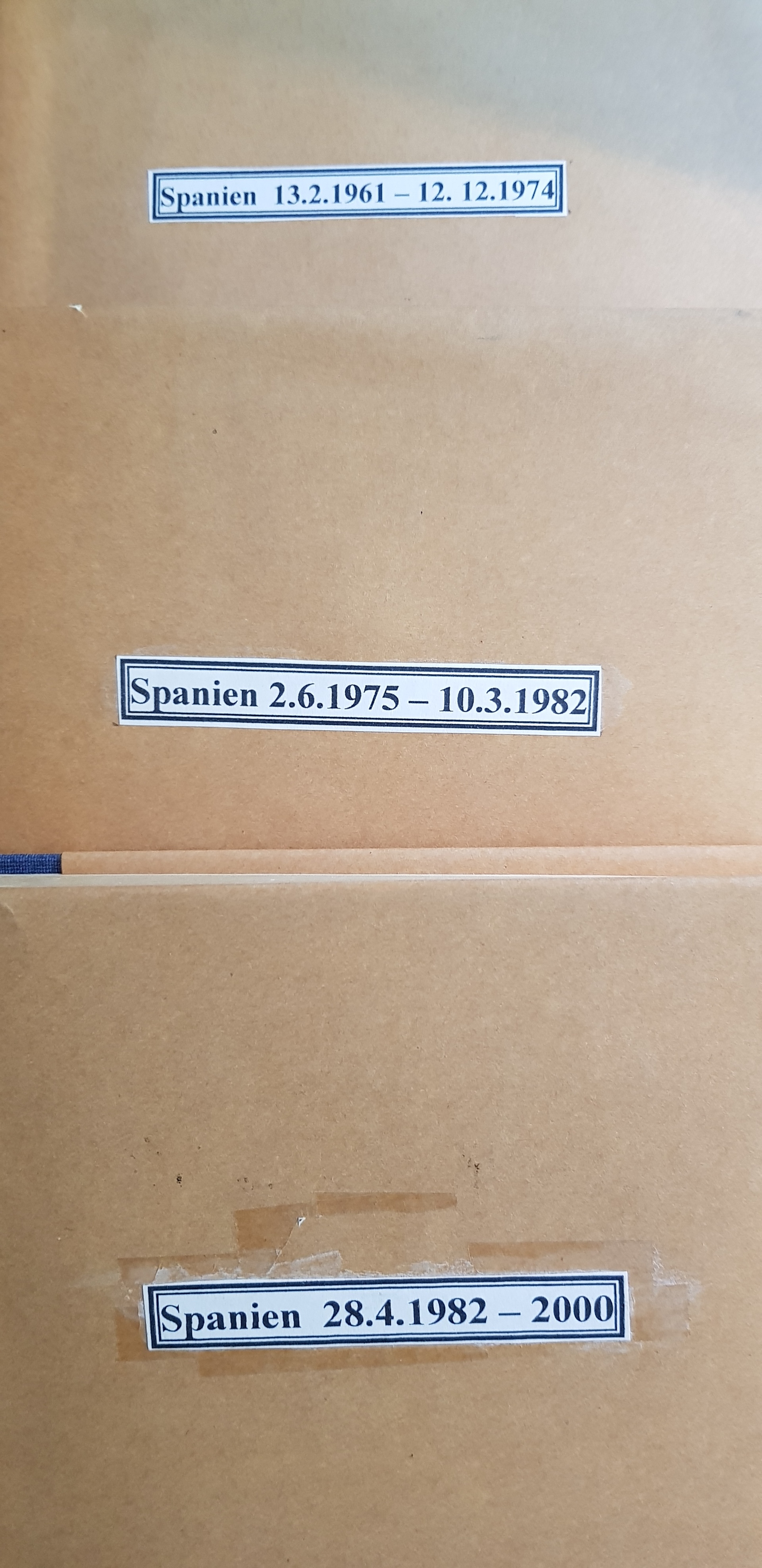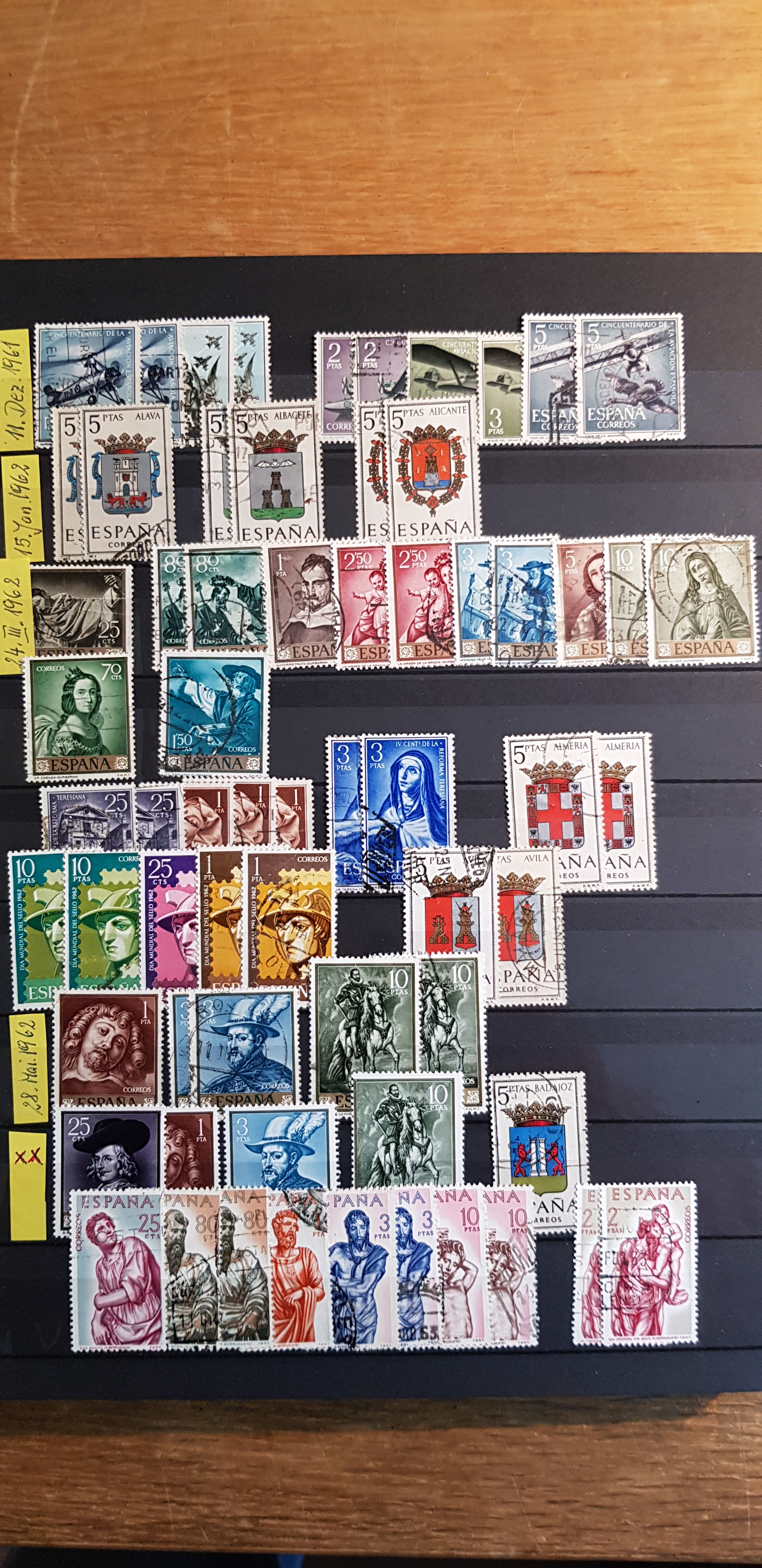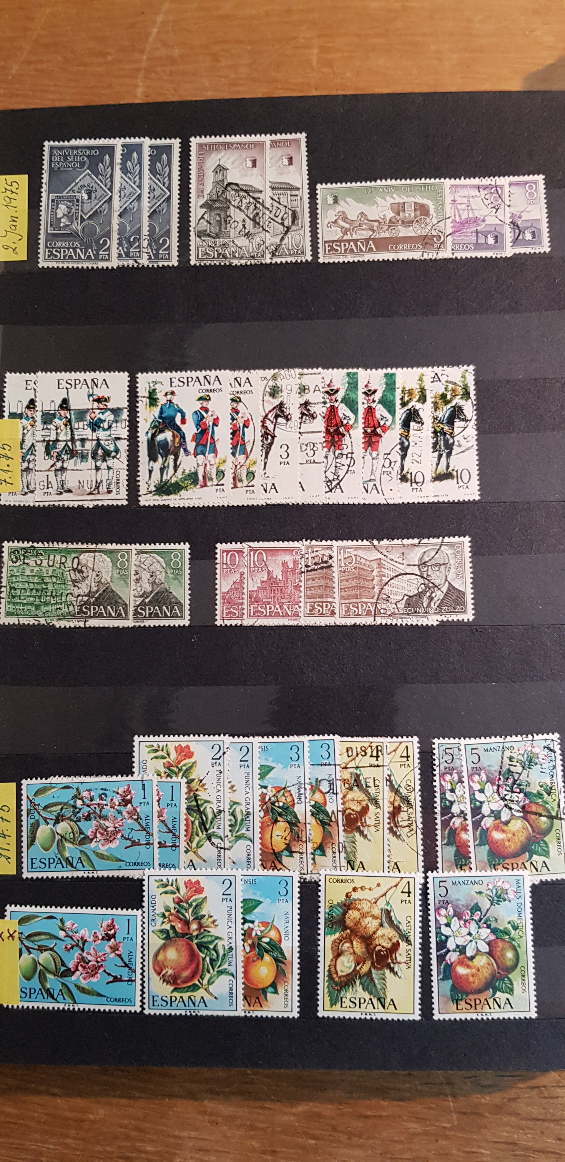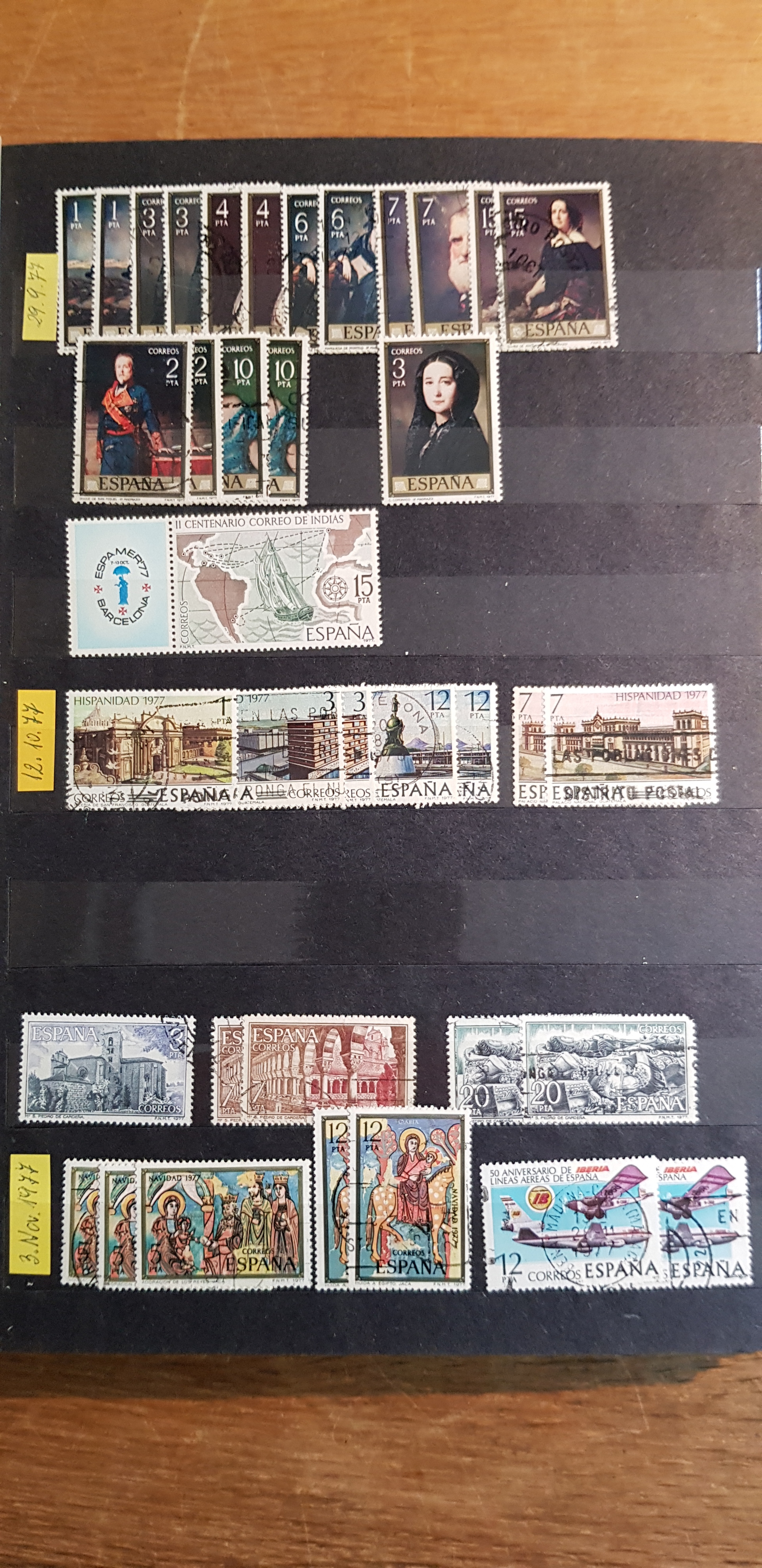 Spain. Collection/accumulation mostly used 1960–2000 in box. Mainly Spain in three albums plus also two albums that include a lot of stamps from all of the world. Please see a selection of scans at www.philea.se. Good quality. Approx. 7 kg. (>2000)