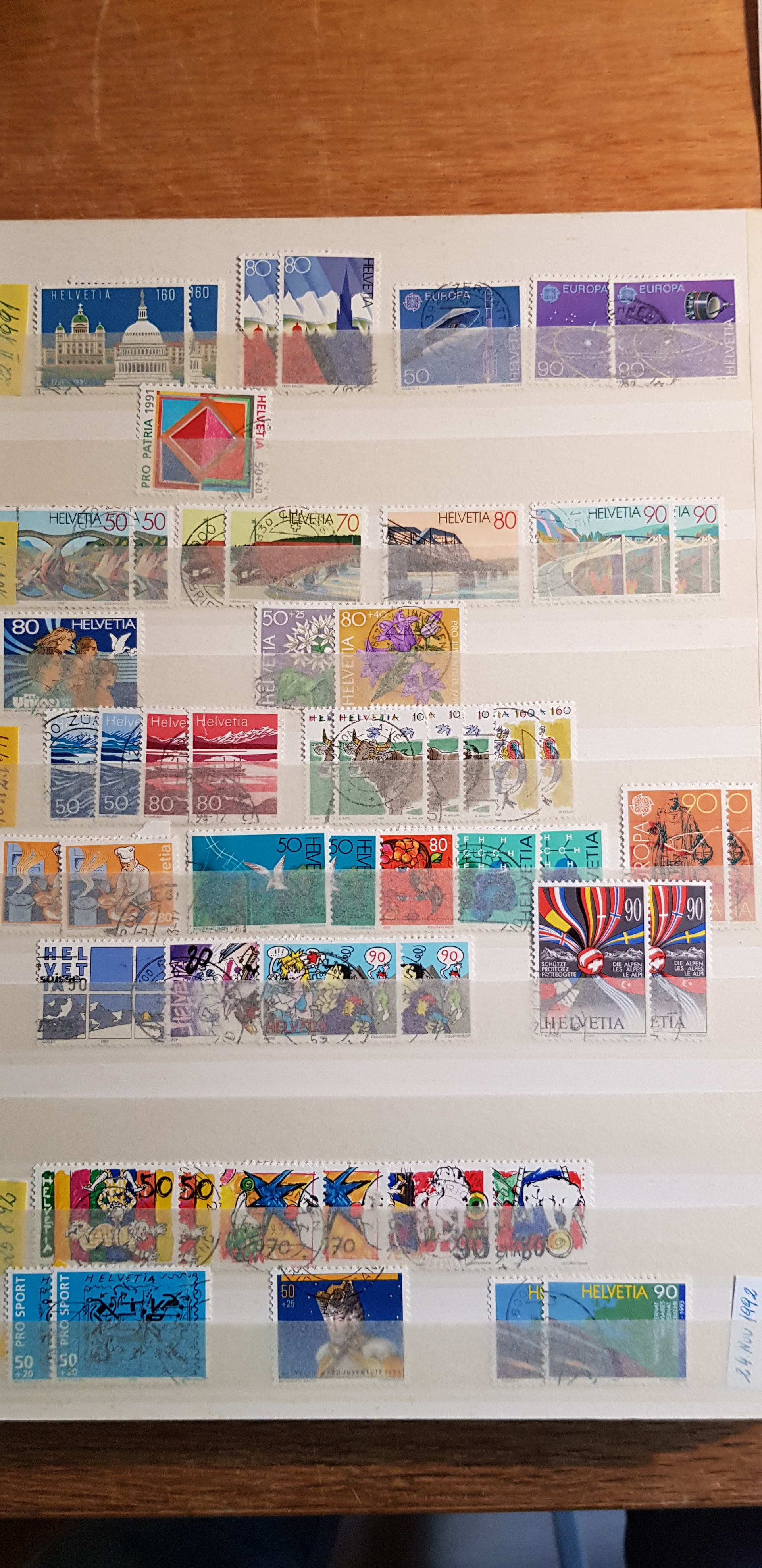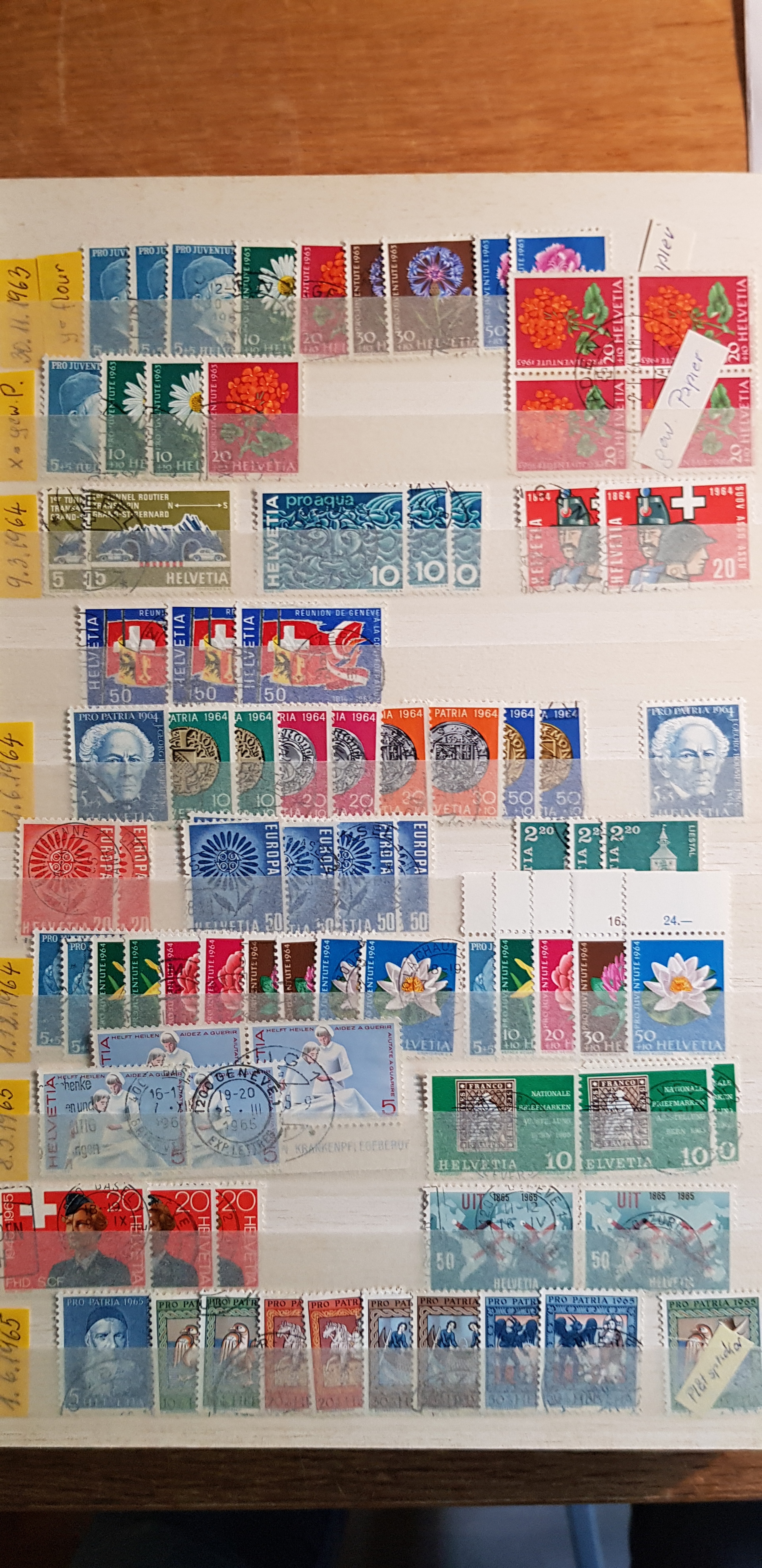 Switzerland. Collection/accumulation mostly used 1880–1970 in box. Also includes Bulgaria and Hungary. Please see a selection of scans at www.philea.se. Good quality. Approx. 7 kg. (>3000)