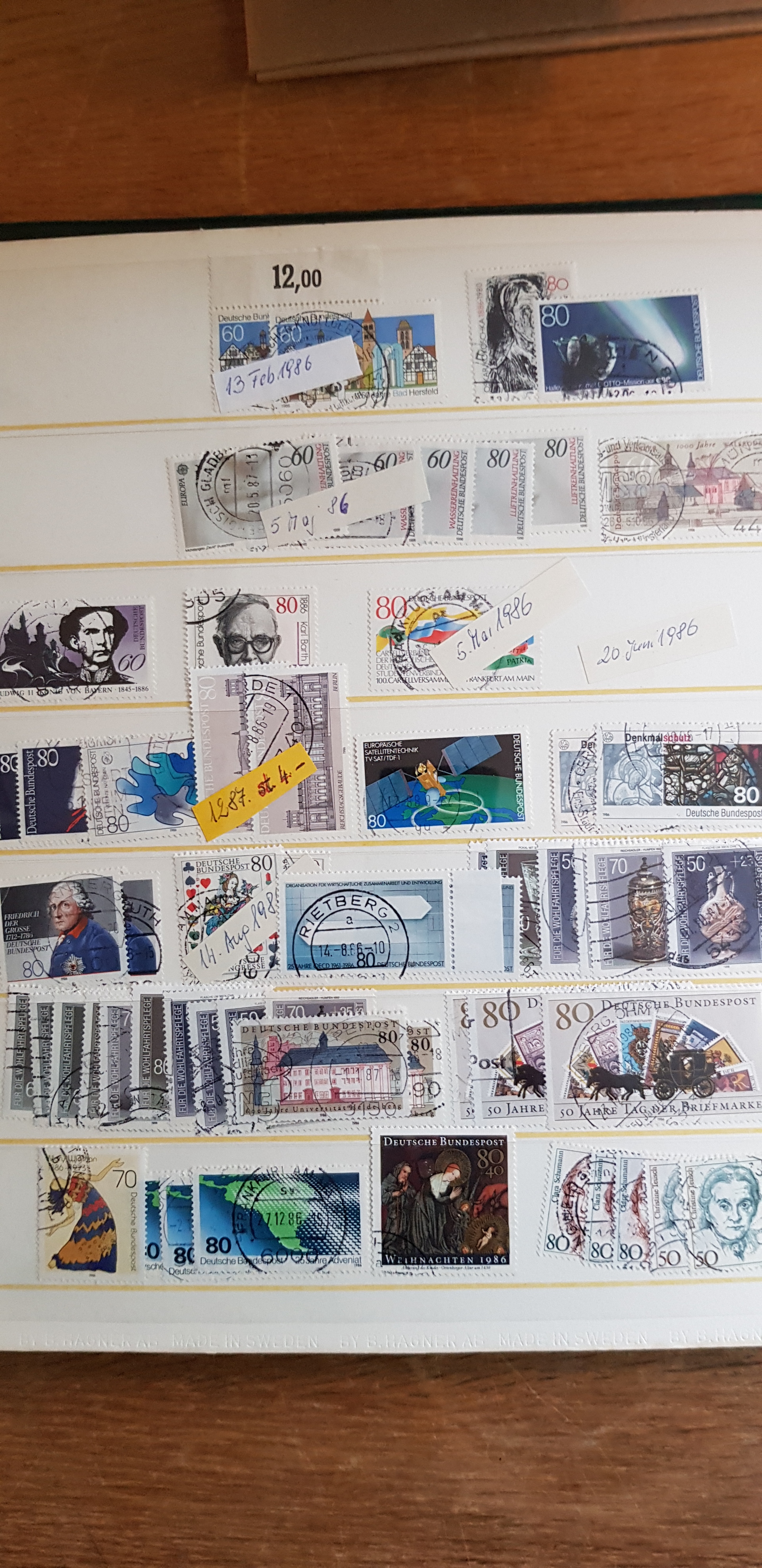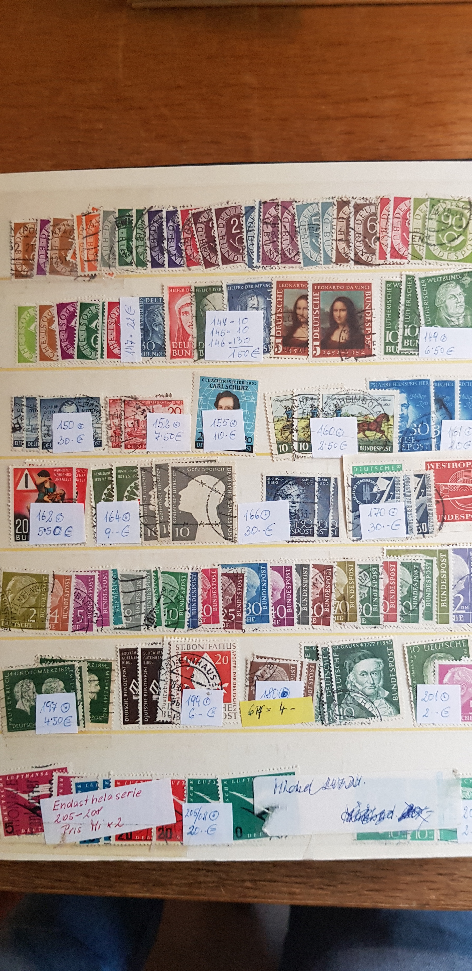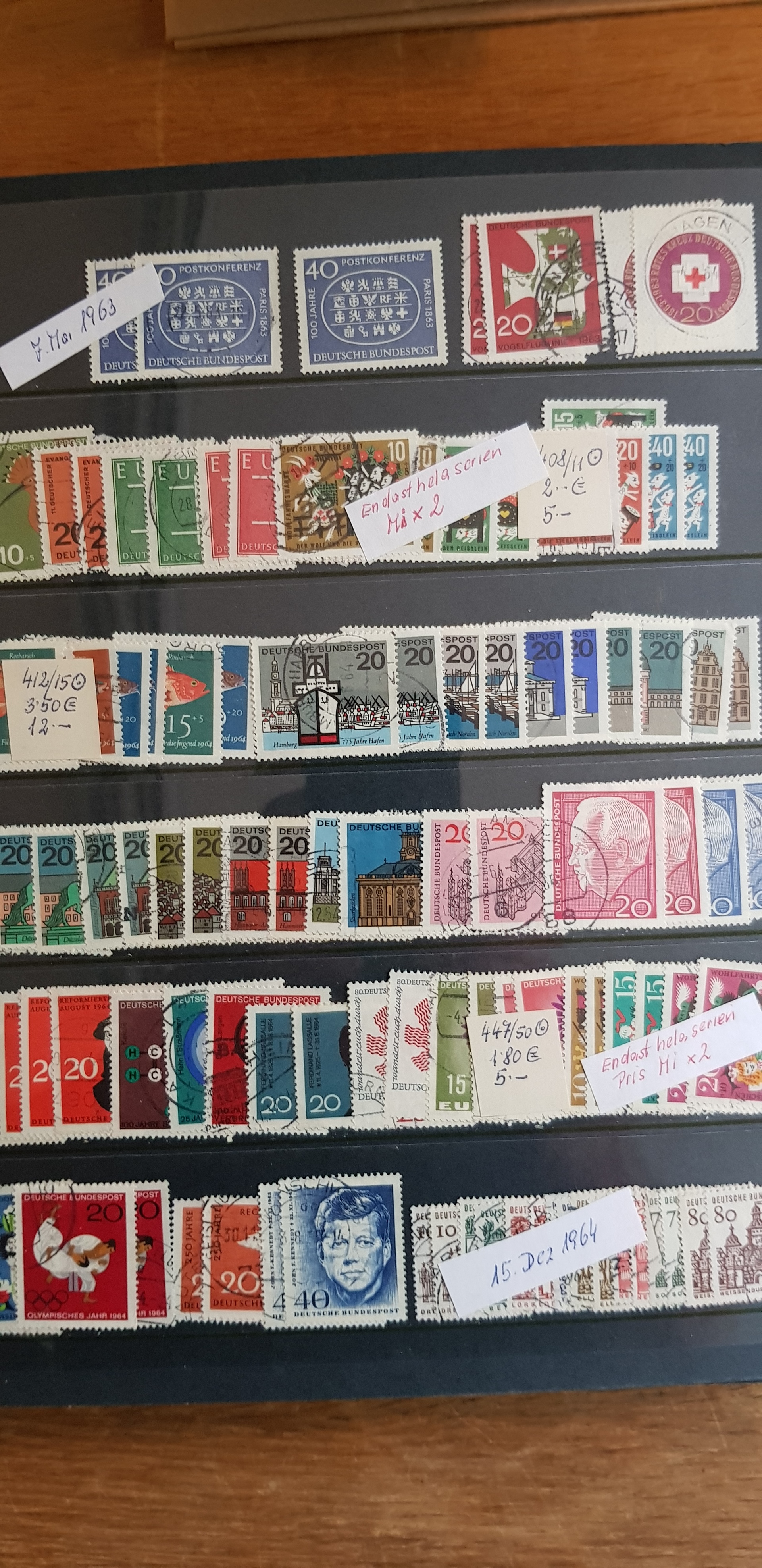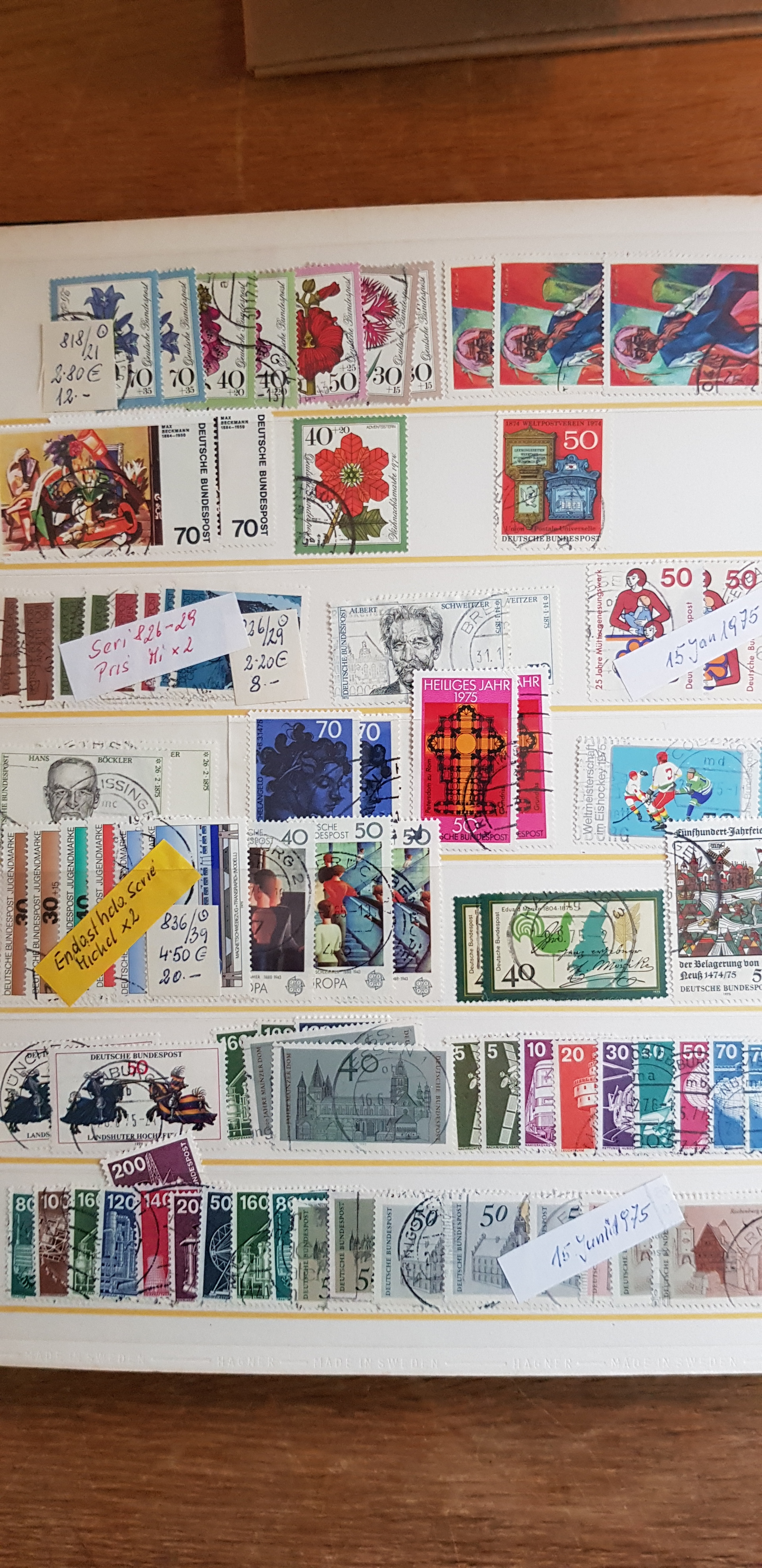 Germany, GFR (BRD). Collection/accumulation mostly used 1949–1990 in box. Austria, BRD 1949-96, one album with FDCs and other envelopes. Some loose leaves with Australia. Please see a selection of scans at www.philea.se. Mostly fine quality. Approx. 7 kg. (>2000)