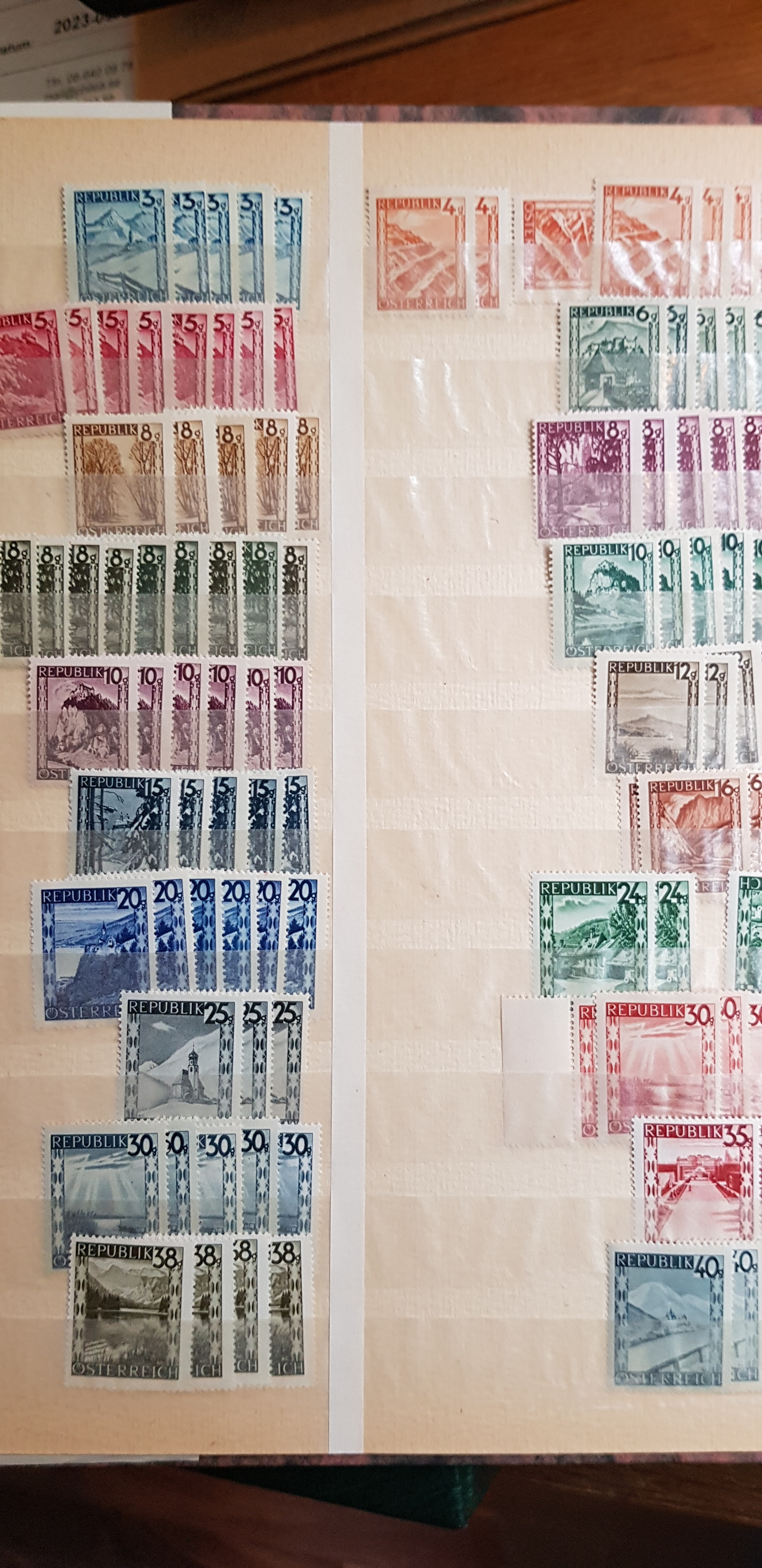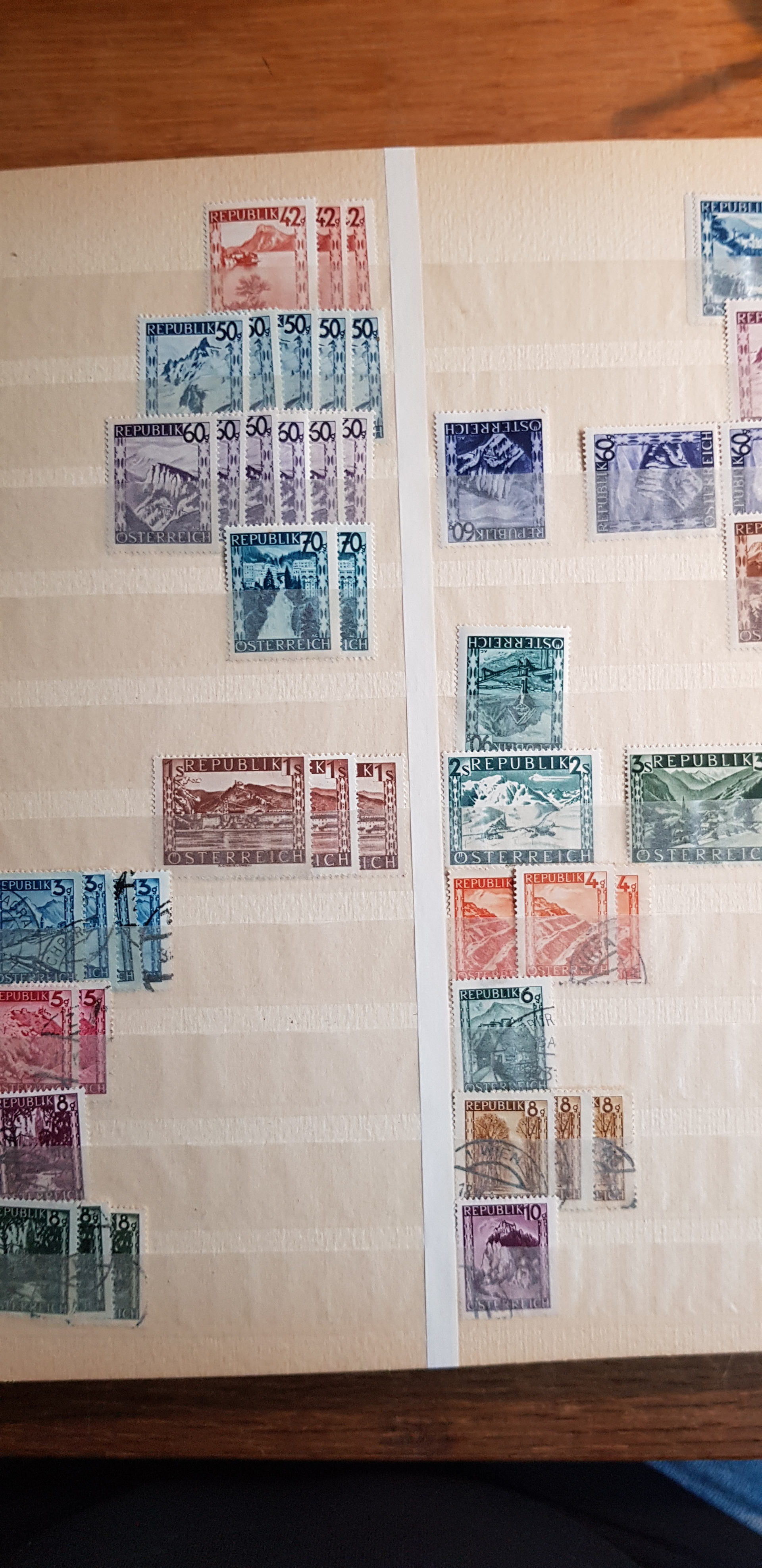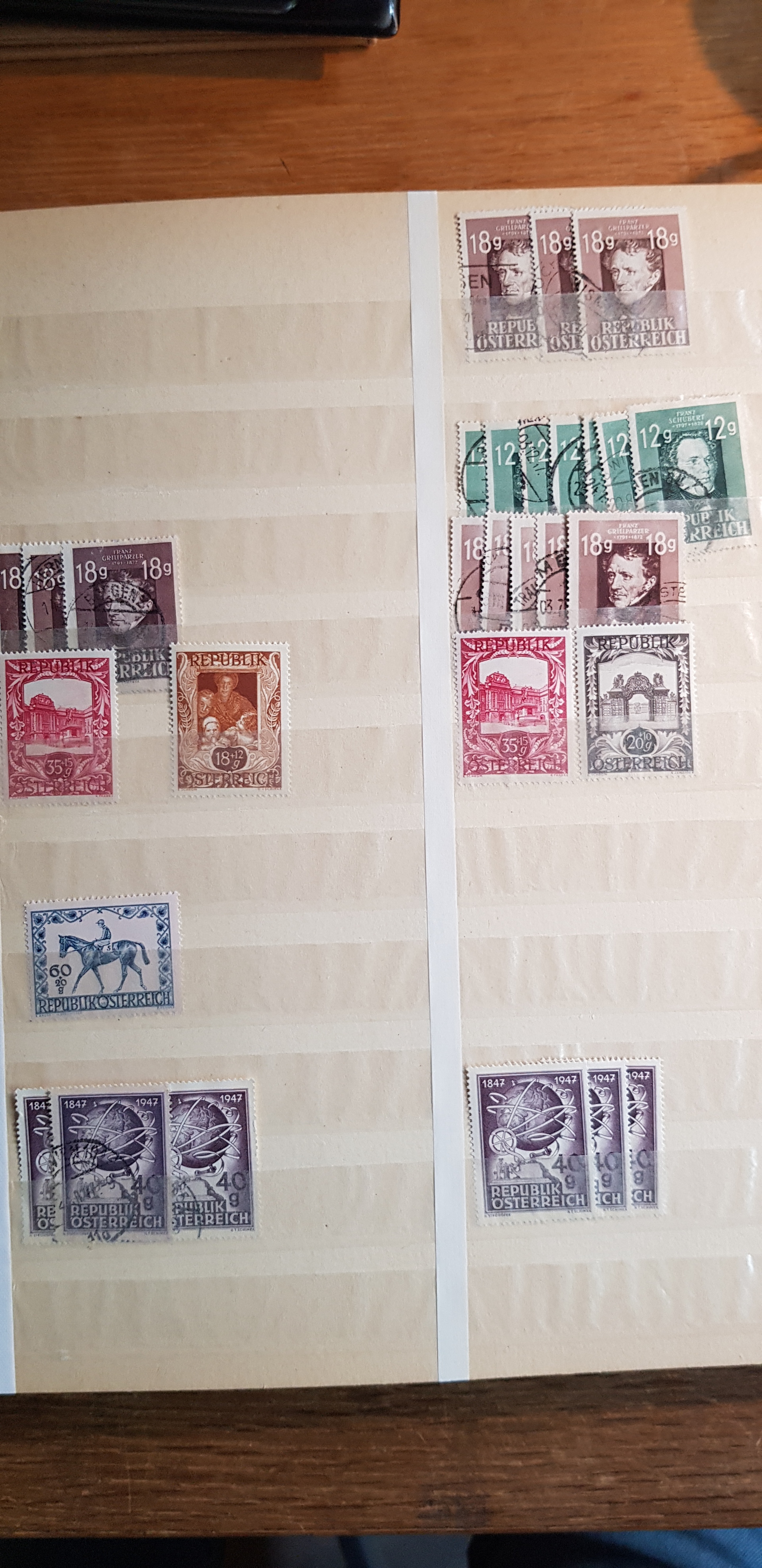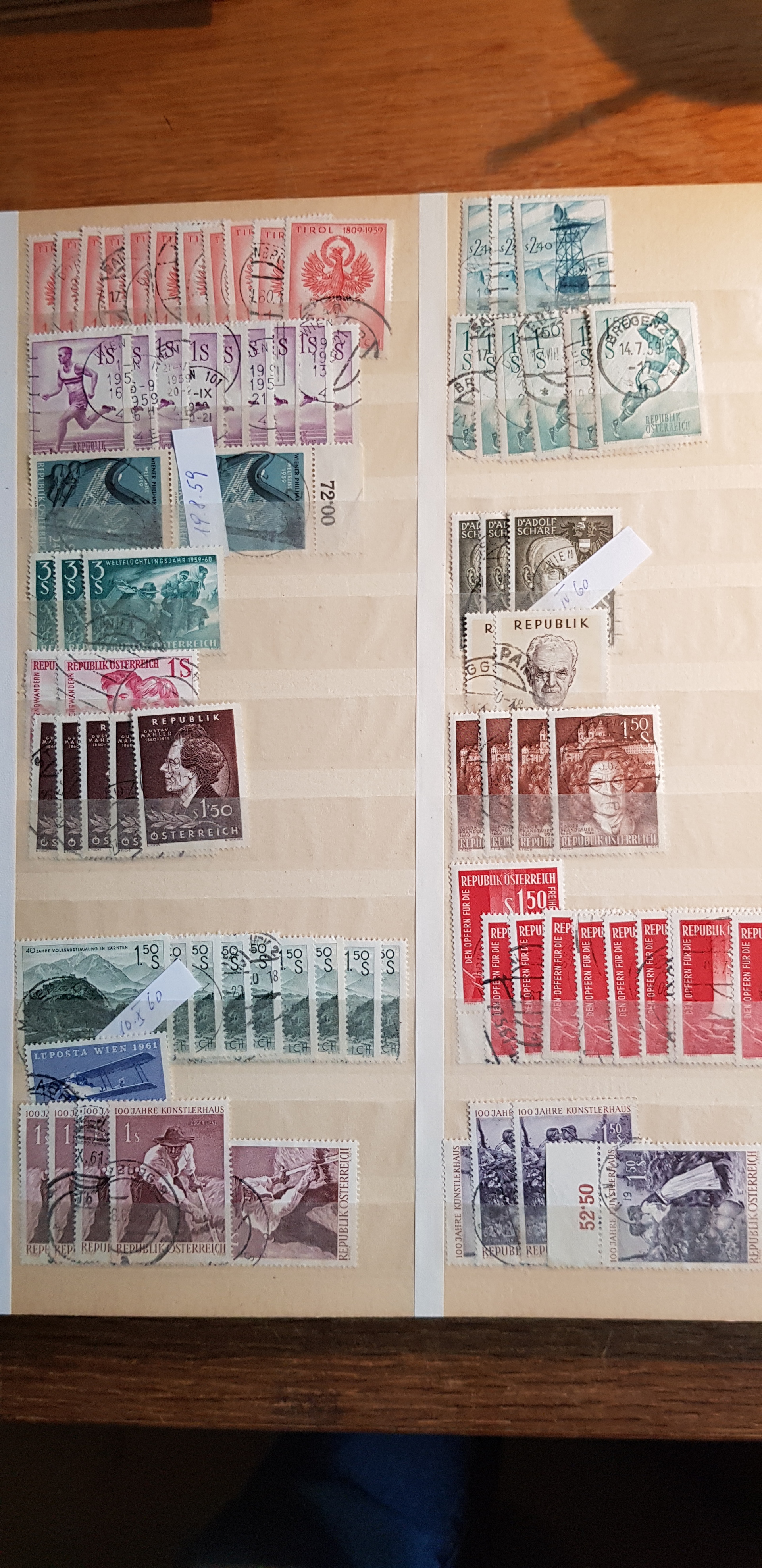 Germany, GFR (BRD). Collection/accumulation mostly used 1949–1990 in box. Austria, BRD 1949-96, one album with FDCs and other envelopes. Some loose leaves with Australia. Please see a selection of scans at www.philea.se. Mostly fine quality. Approx. 7 kg. (>2000)