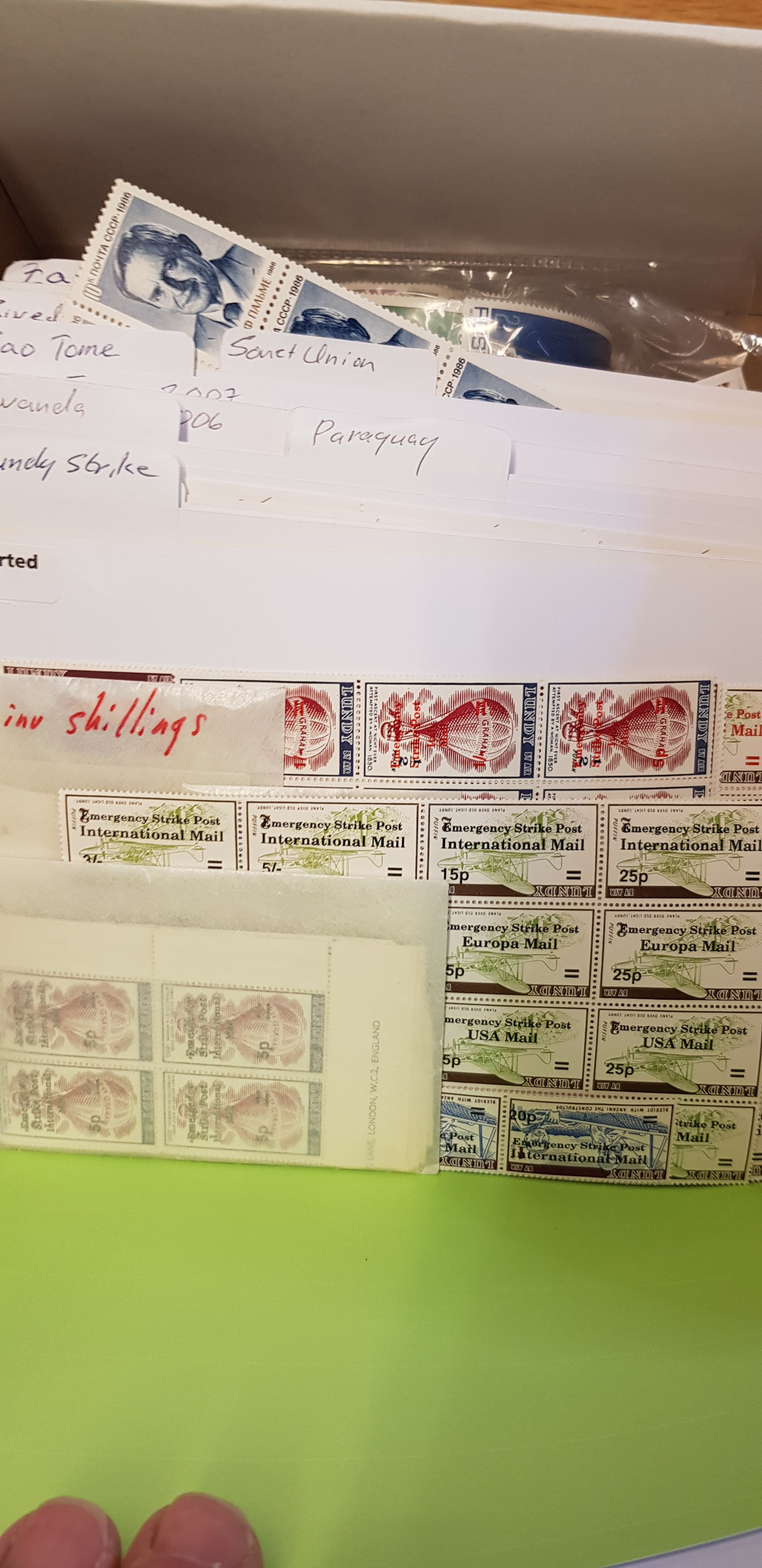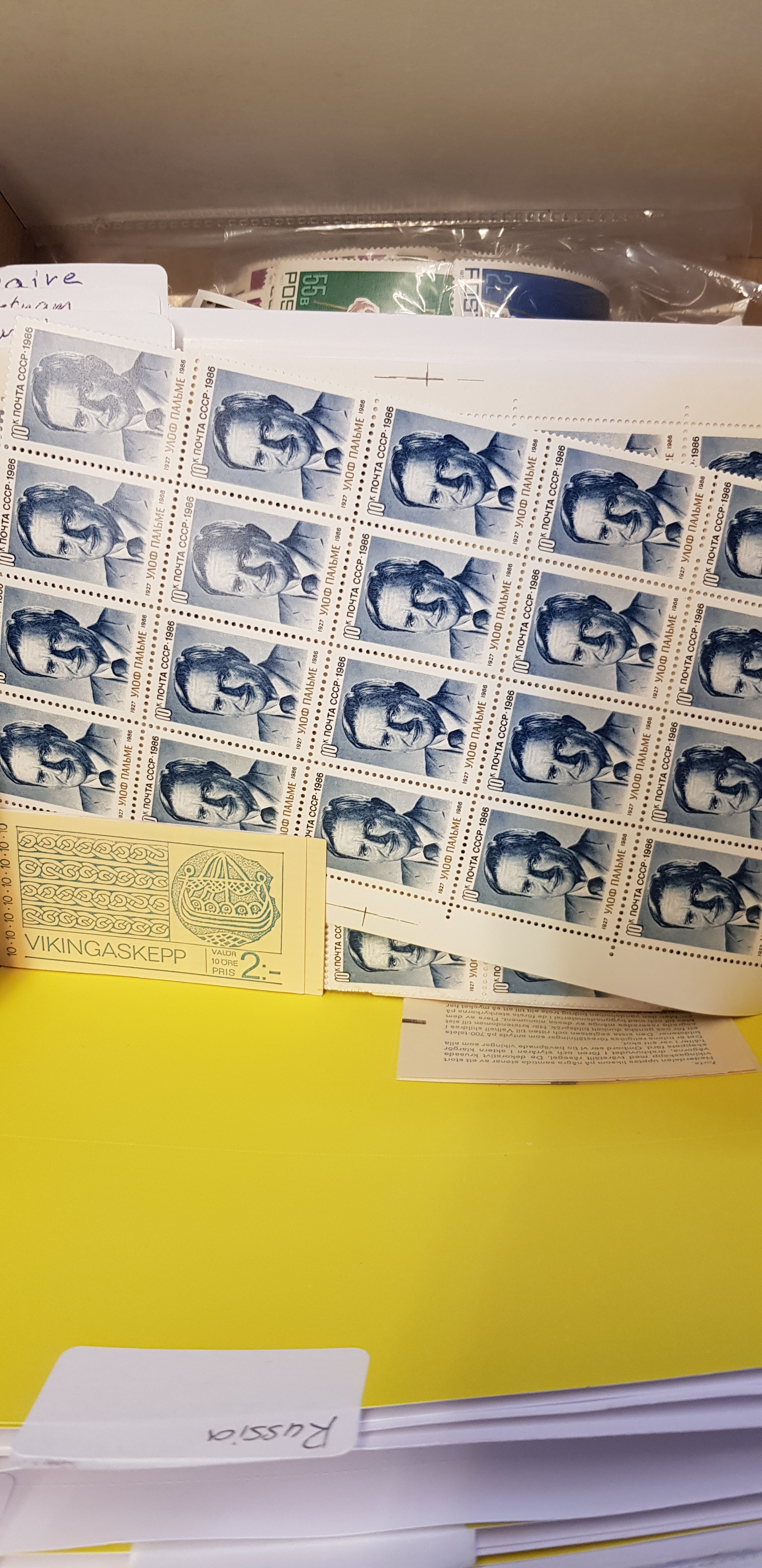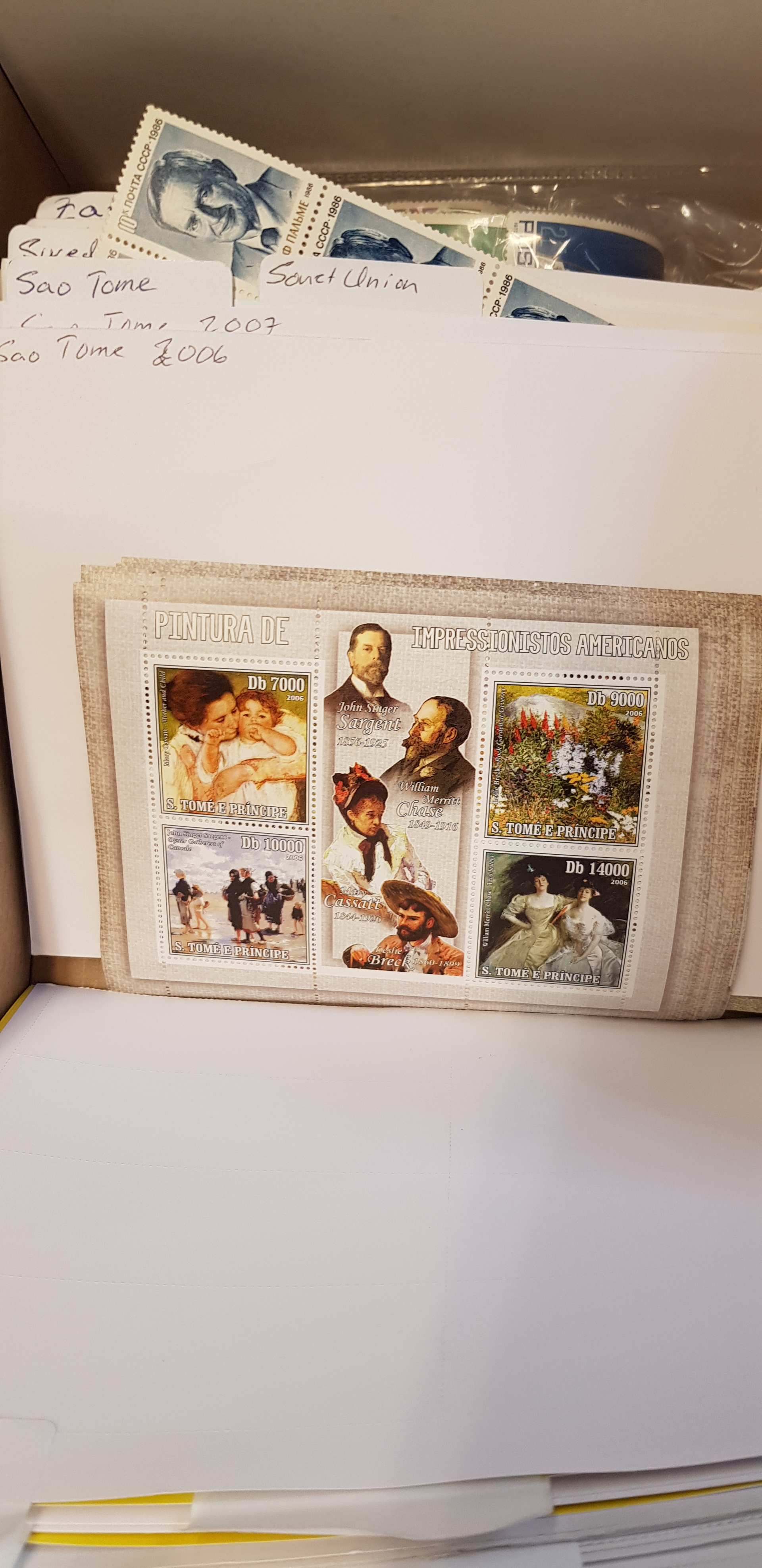 ALL WORLD. Collection/accumulation mostly used 1900s in box. An assembly in envelopes with souvenir sheets and booklets. Please see a selection of scans at www.philea.se. Mostly fine quality. (>5000)