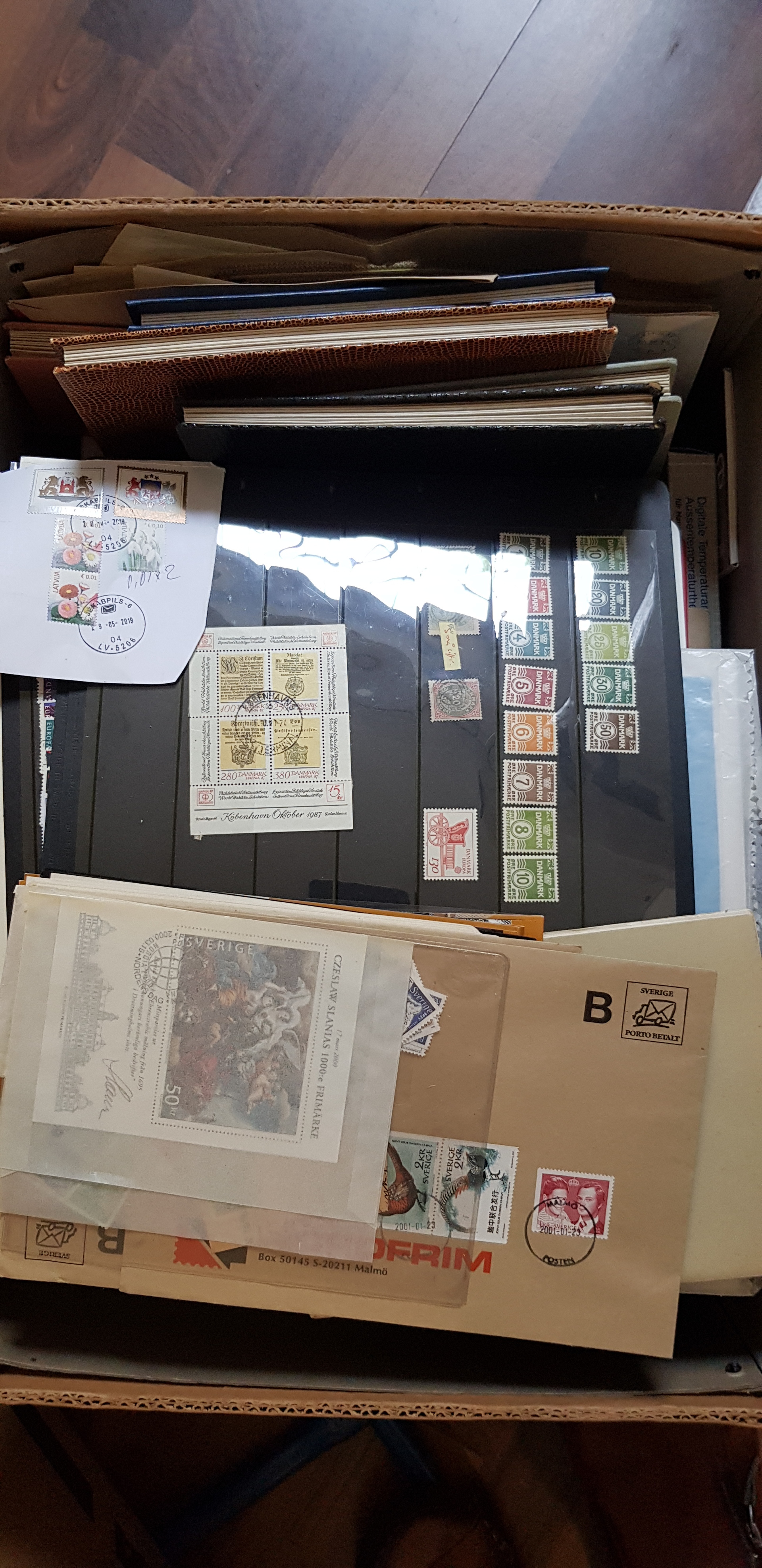 ALL WORLD. Collection/accumulation mostly used 1900s in banana box. A huge amount of stamps in albums, leaves, envelopes and plastic bags. Both unused and used stamps. Please see a selection of scans at www.philea.se. Mostly fine quality. Approx. 11 kg. (>5000)