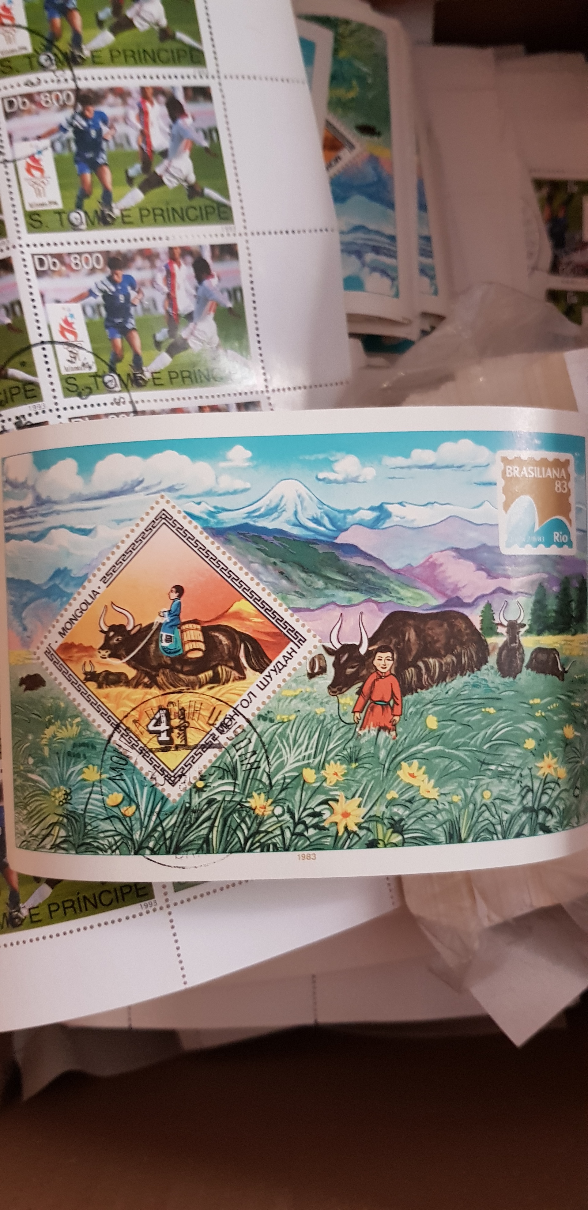 Mongolia. Collection/accumulation ★★ 1900s in box. A box full of stamps from Mongolia, S.Tome Principe and Upper Volta among them all. Please see a selection of scans at www.philea.se. Fine quality. Approx. 5 kg. (>10000)