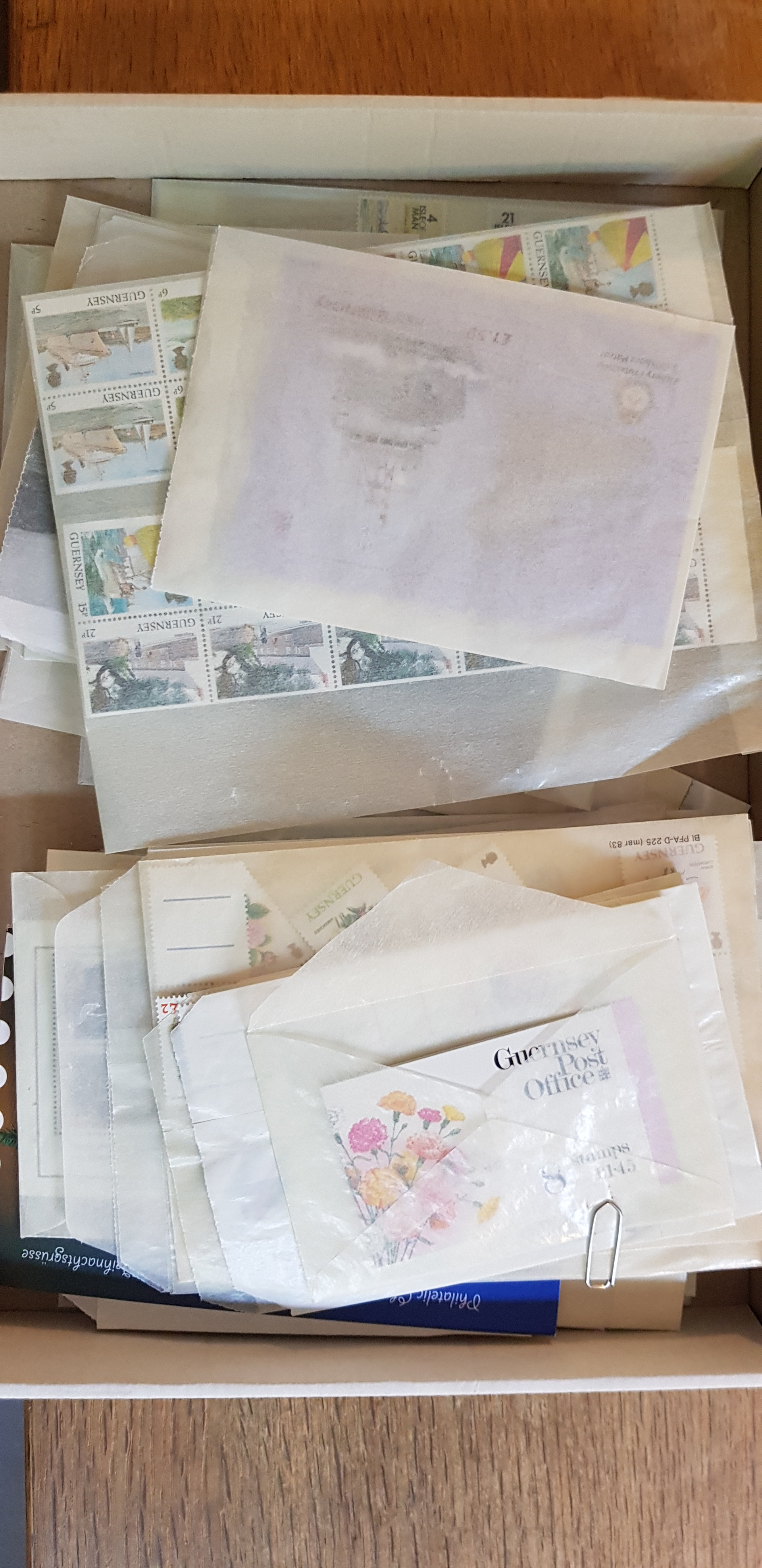 Britain, Guernsey. Collection/accumulation mostly ★★ 1900s in box. British Islands such as Guernsey, Isle of Man, Alderney as well as Gibraltar are included here. Please see a selection of scans at www.philea.se. Mostly fine quality. (>5000)