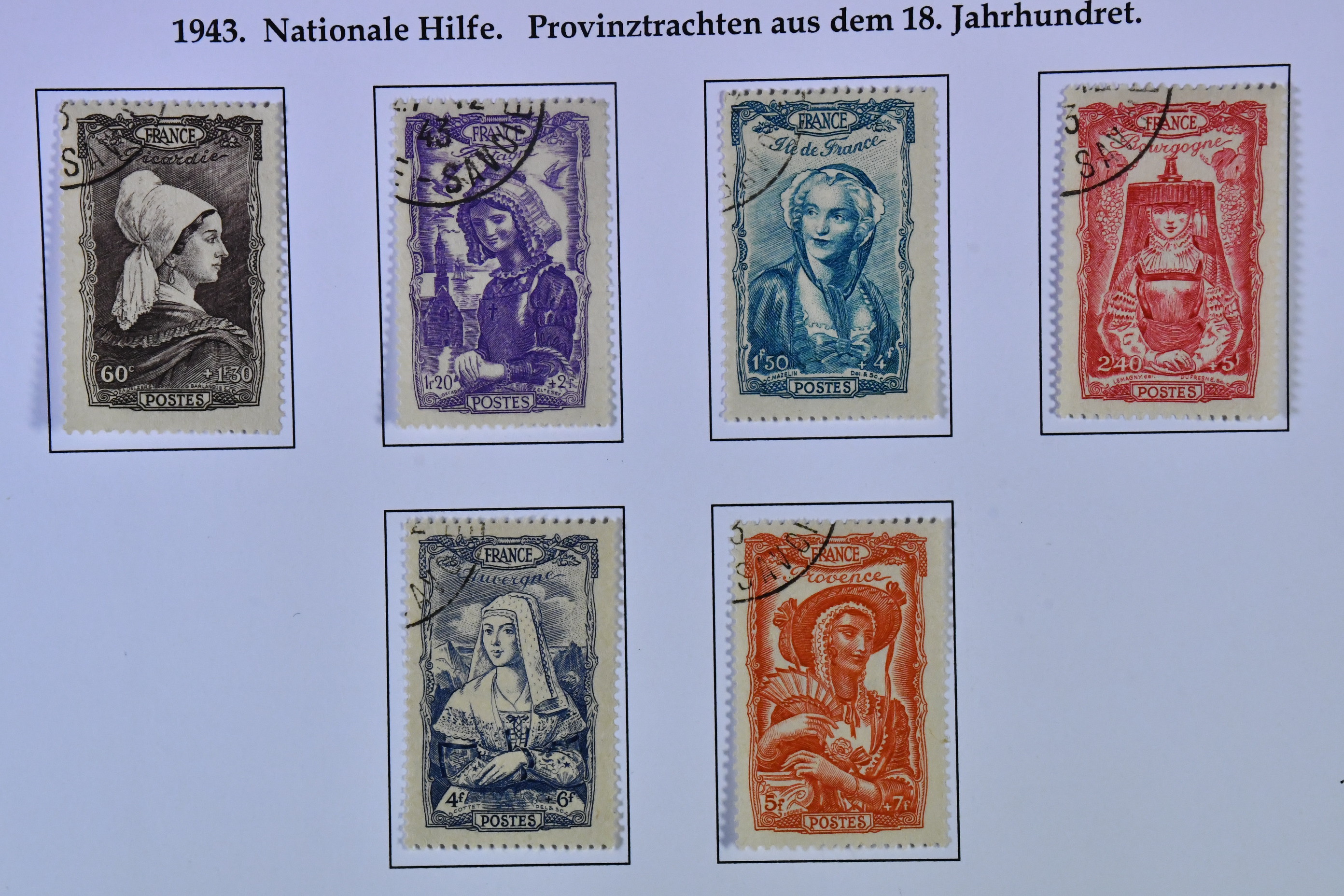 France. Used 1853–1950 on leaves. Many sets. Mostly good quality. (300)