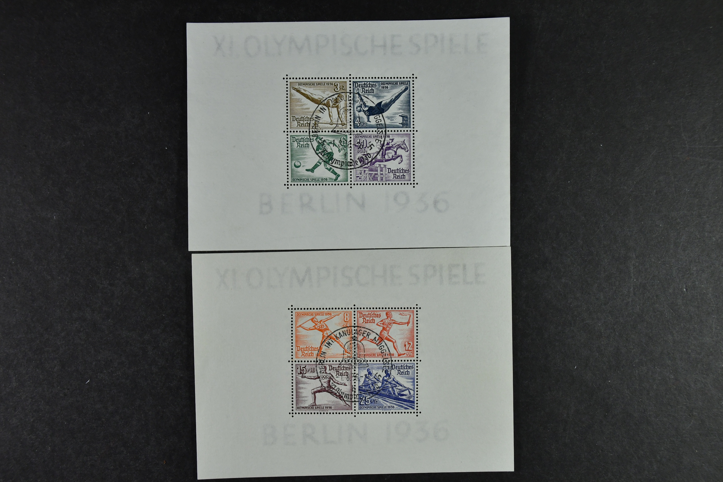 Germany, Reich. Michel 624–31 used, 1936 Olympic Games in Berlin souvenir sheet 5–6 (2). EUR 180