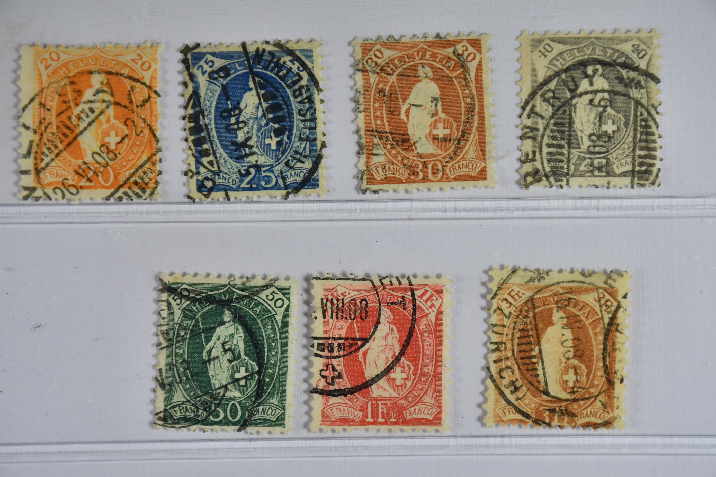Switzerland. Michel 88–94 used, 1907 Standing Helvetia SET wmk cross (7). EUR 230
