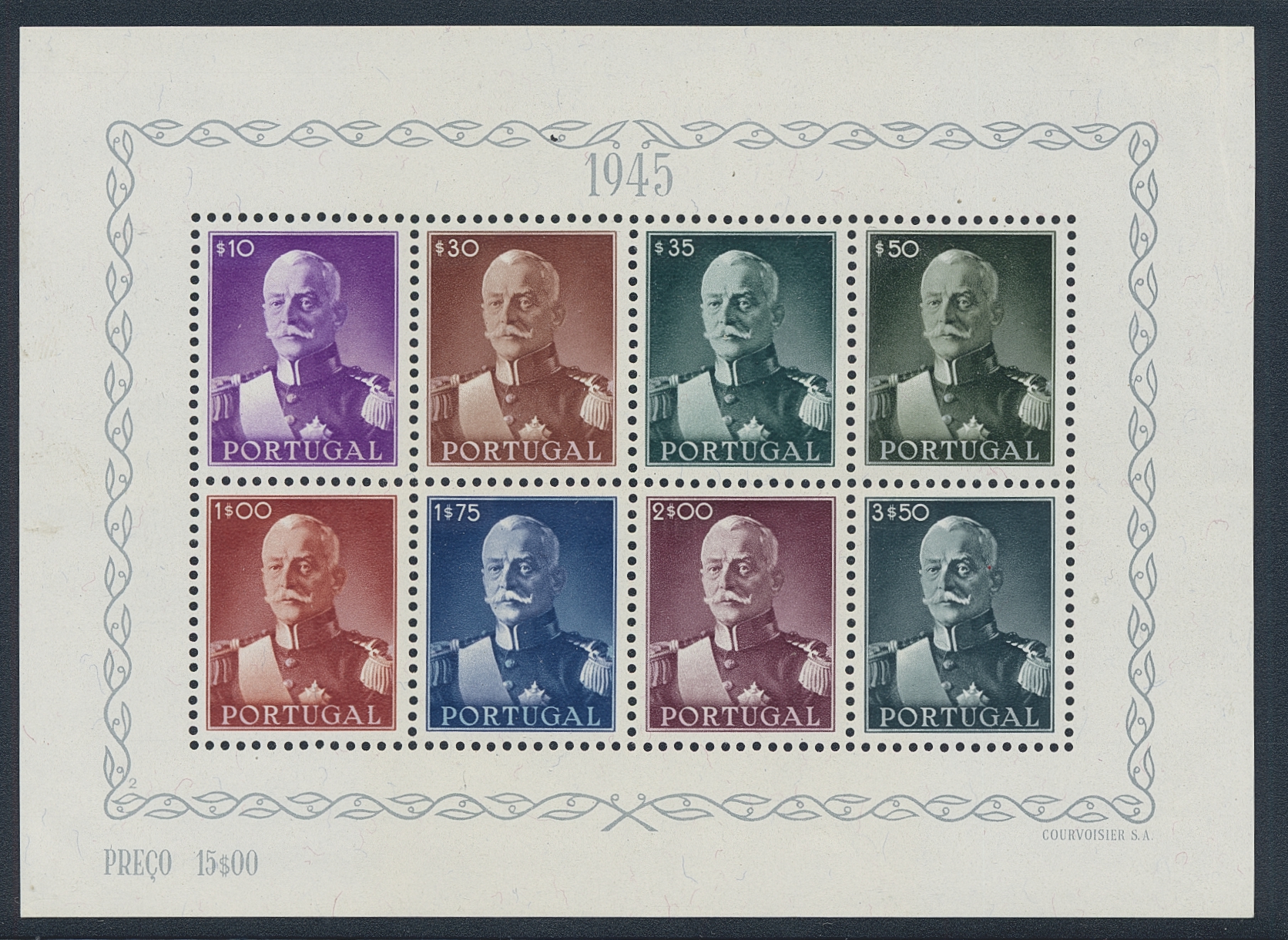 Portugal. Michel 681–88 ★★, 1945 Carmona souvenir sheet 8. EUR 280