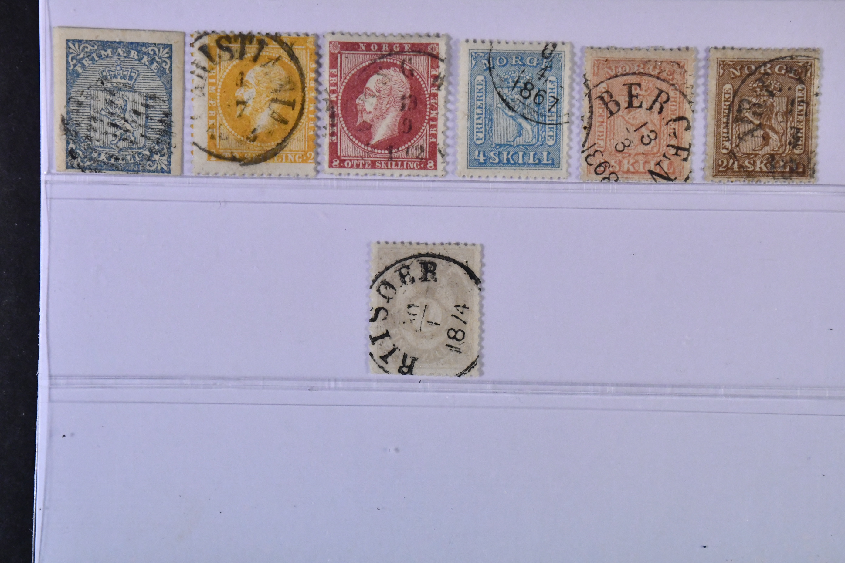 Norway. Used 1855–1875. All different, e.g. F 1-2, 5, 9-10, 19. Mostly good quality. F SEK 5310 (7)