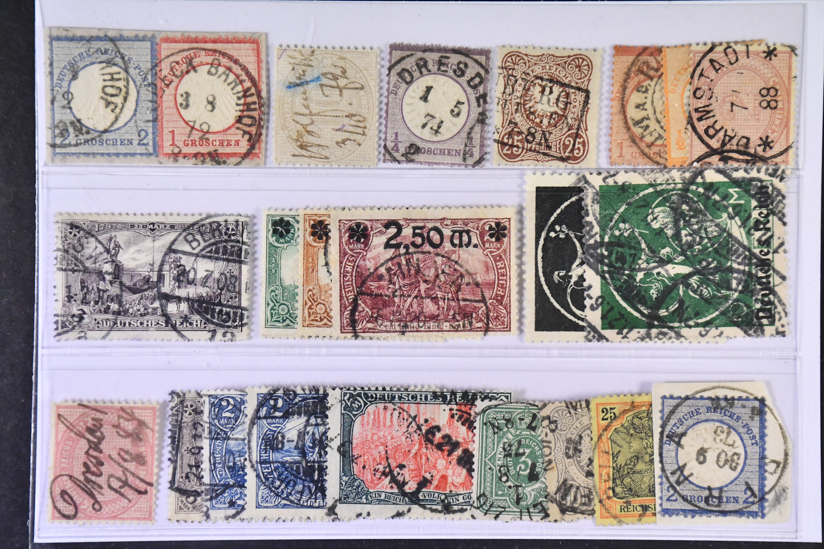 Germany, Reich. Used 1872–1920. All different, e.g. Mi 5, 12 (signed Sommer), 16, 35, 37 (ink-cancel), 80, 116-18, 137. Mostly good quality. Mi € 892 (23)