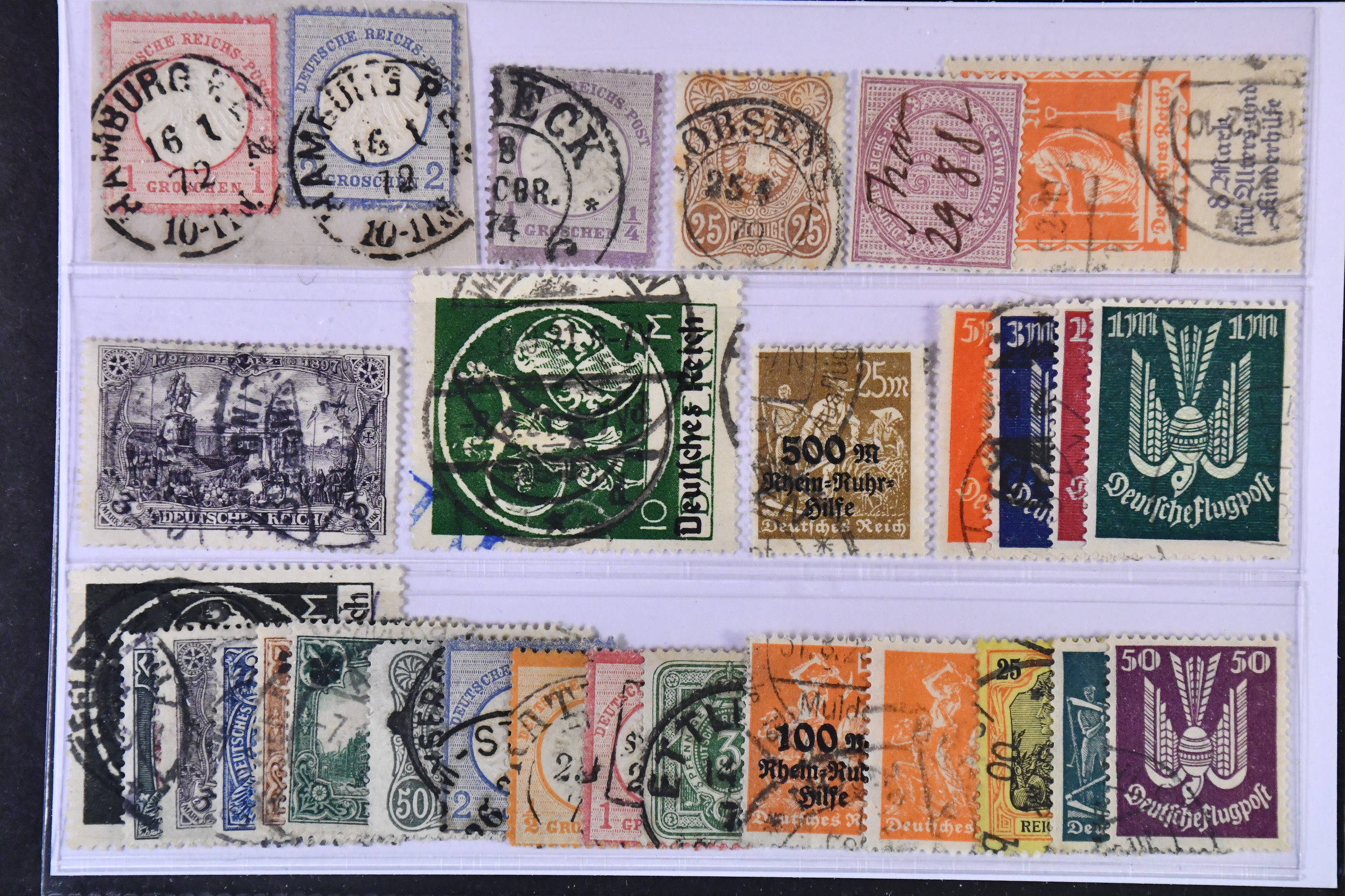 Germany, Reich. Used 1872–1923. All different, e.g. Mi 5, 16, 35, 37 (ink. canc), 80, 137, 233, 259. Mostly good quality. Mi € 515 (29)