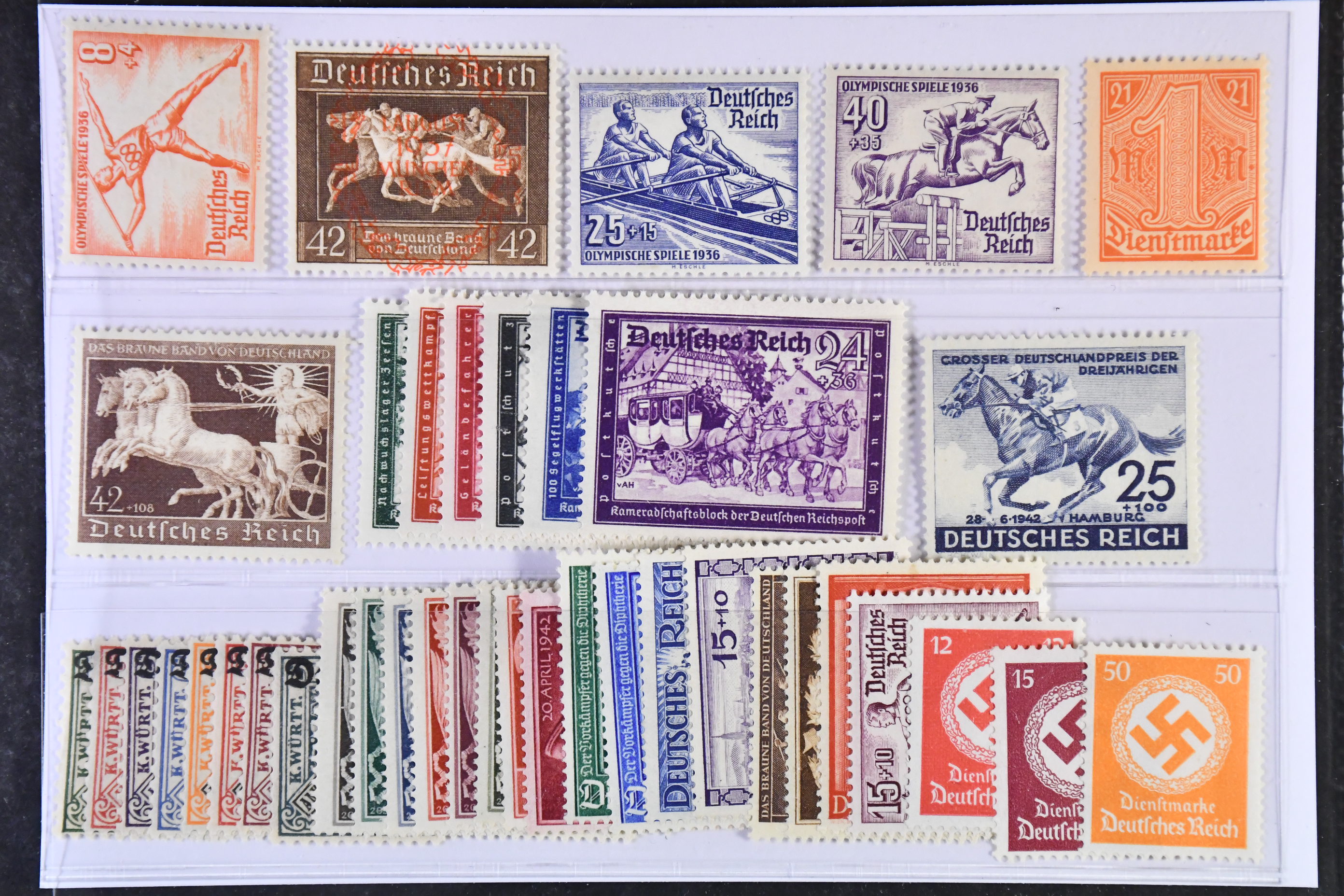 Germany, Reich. ★★ 1937–42. All different, e.g. Mi 612, 615-16, 649, 747, 773-78, 814, officials 22, 57-64. Mostly good quality. Mi € 604 (40)