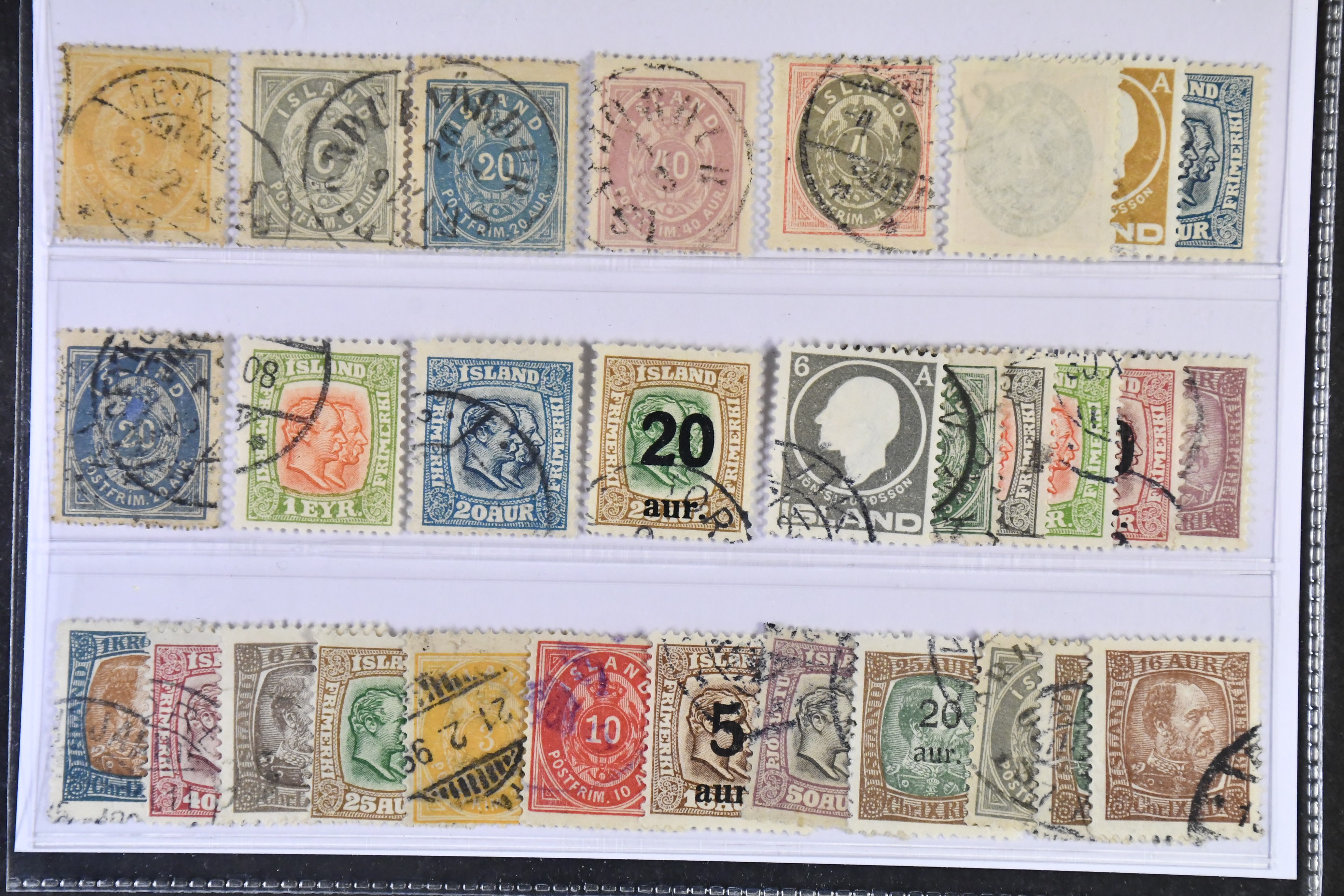 Iceland. Used 1876–1911. All different, e.g. F 8, 11, 15, 17, 22, 22v1, 28, 76v1, 97, 103, 111. Mostly good quality. F SEK 5005 (30)