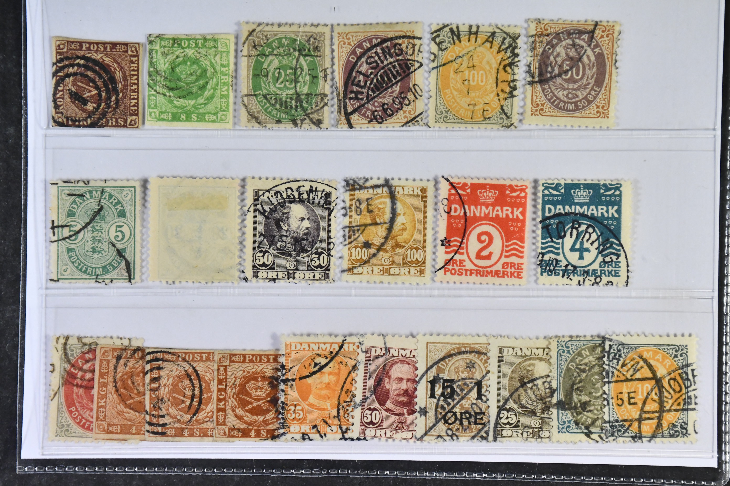 Denmark. Used 1854–1917. All different, e.g. F 2, 5, 35-37, 44, 50, 52vm, 67-68, 84-85. Mostly good quality. F SEK 6990 (22)
