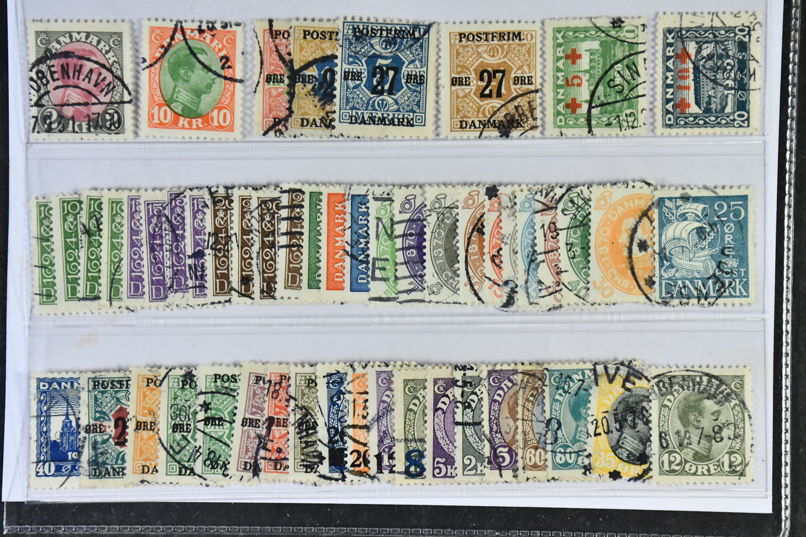 Denmark. Used 1913–30. All different, e.g. F 162, 164, 182-83, 185, 192, 199-200, 201-12, 231, 243-45, 246-55. Mostly good quality. F SEK 6080 (53)