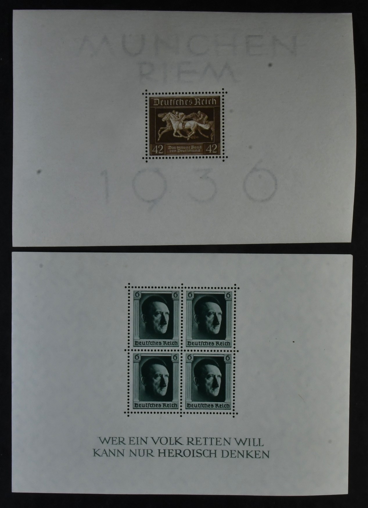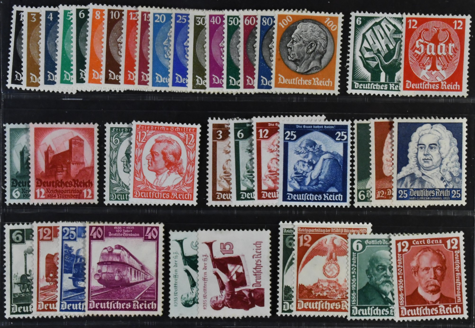 Germany, Reich. ★★ 1933–37. All different, e.g. Mi 512-28, 544-47, 554-55, 565-68, 573-75, 580-85, sov. sheet 4x, 7. Good quality. MI € 815 (42)