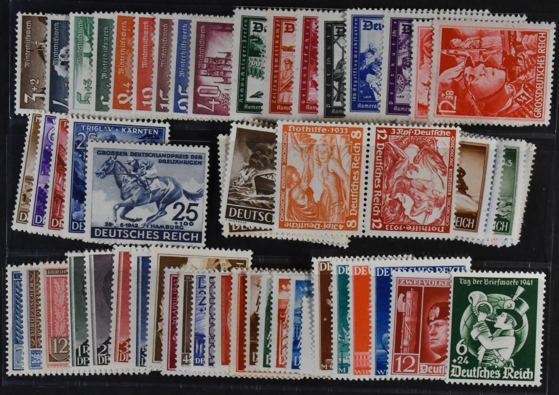 Germany, Reich. ★★ 1940–45. All different, e.g. Mi 751-59, 773-78, 806-09, 814, 831-42, 873-85, 909-10, SK20. Good quality. MI € 475 (75)